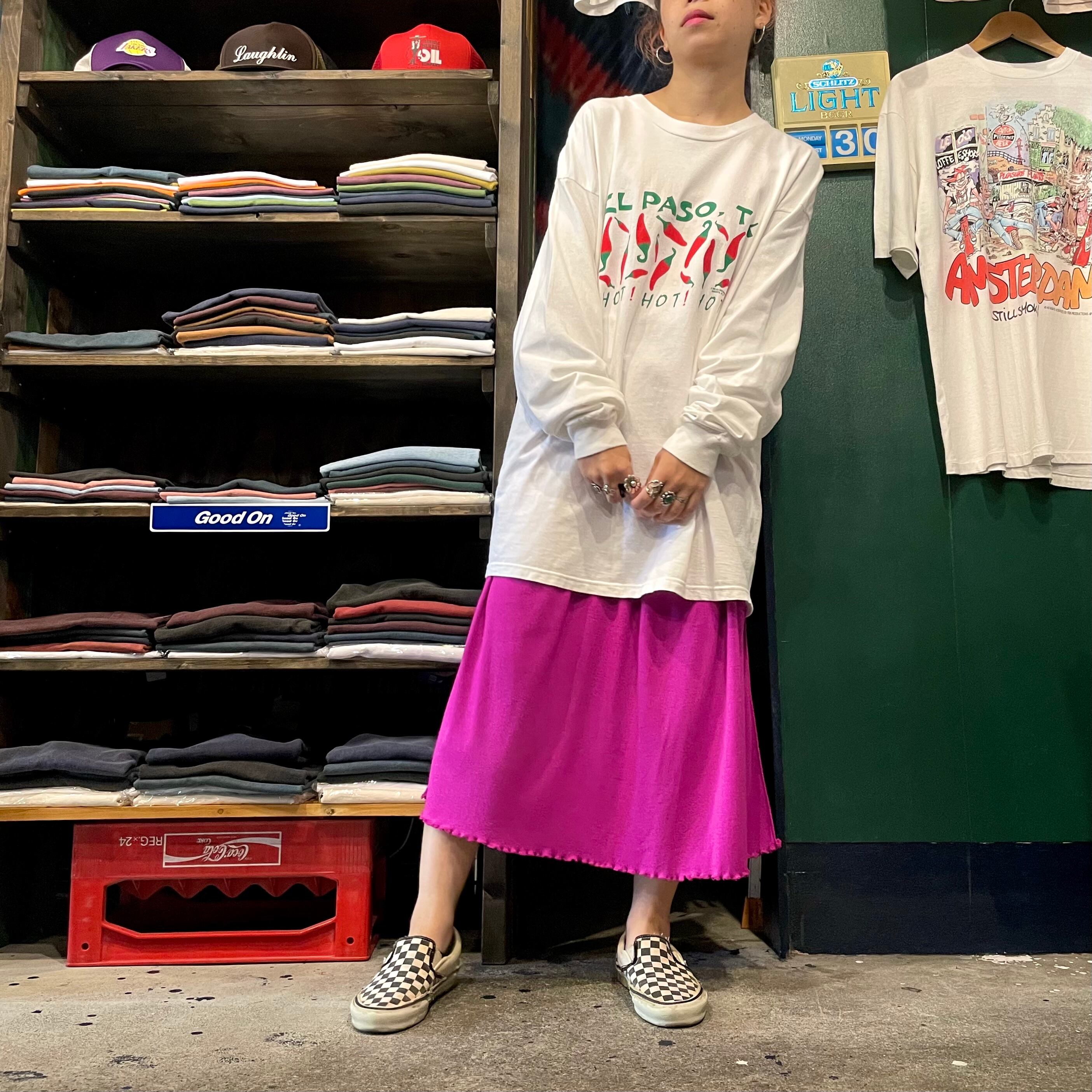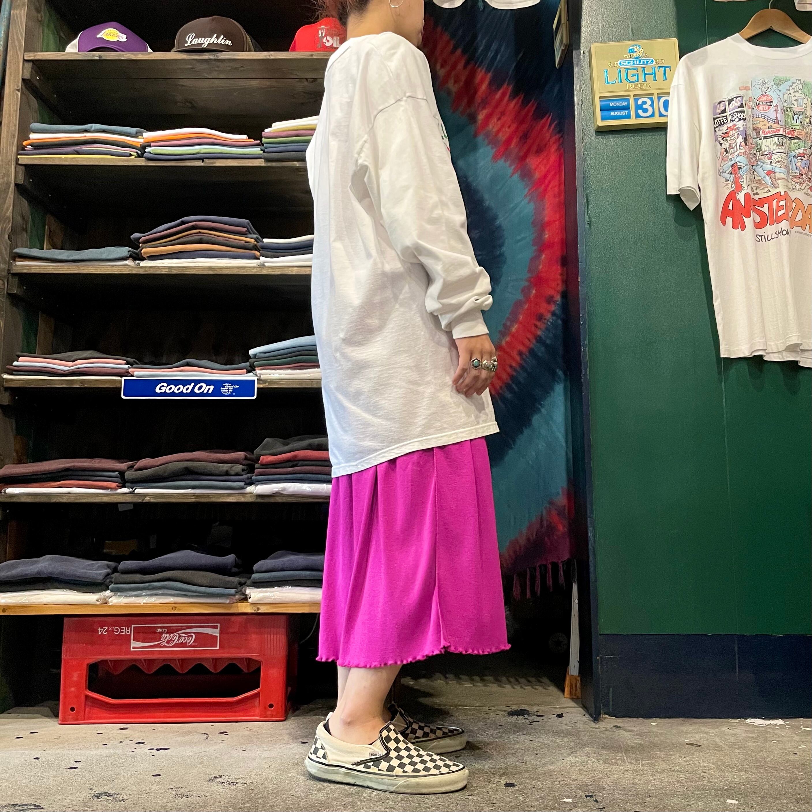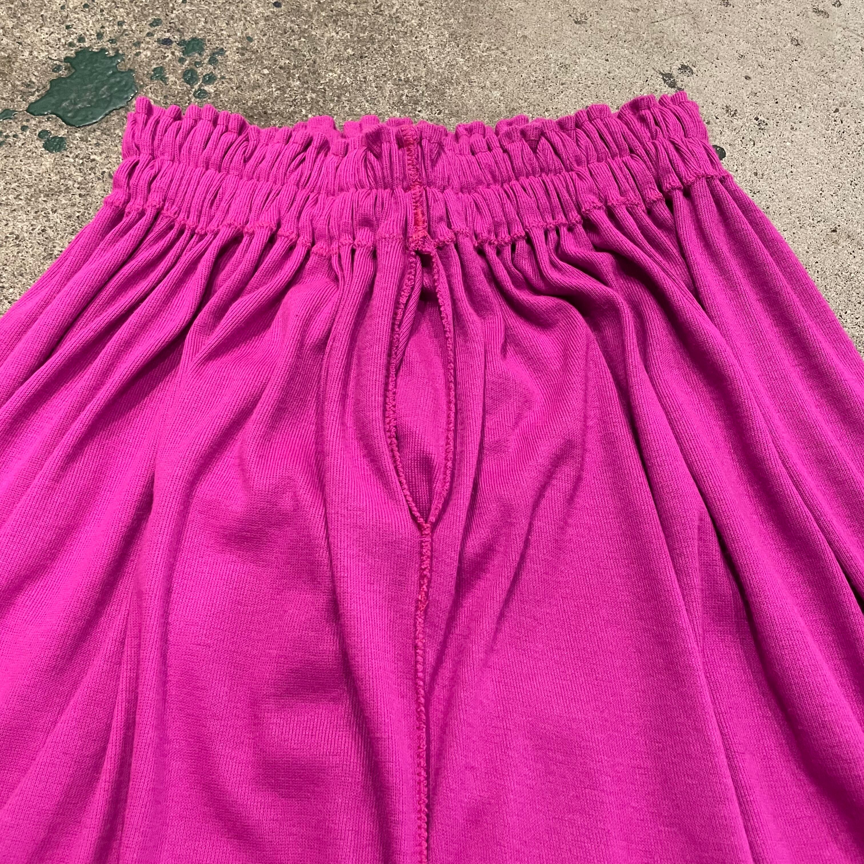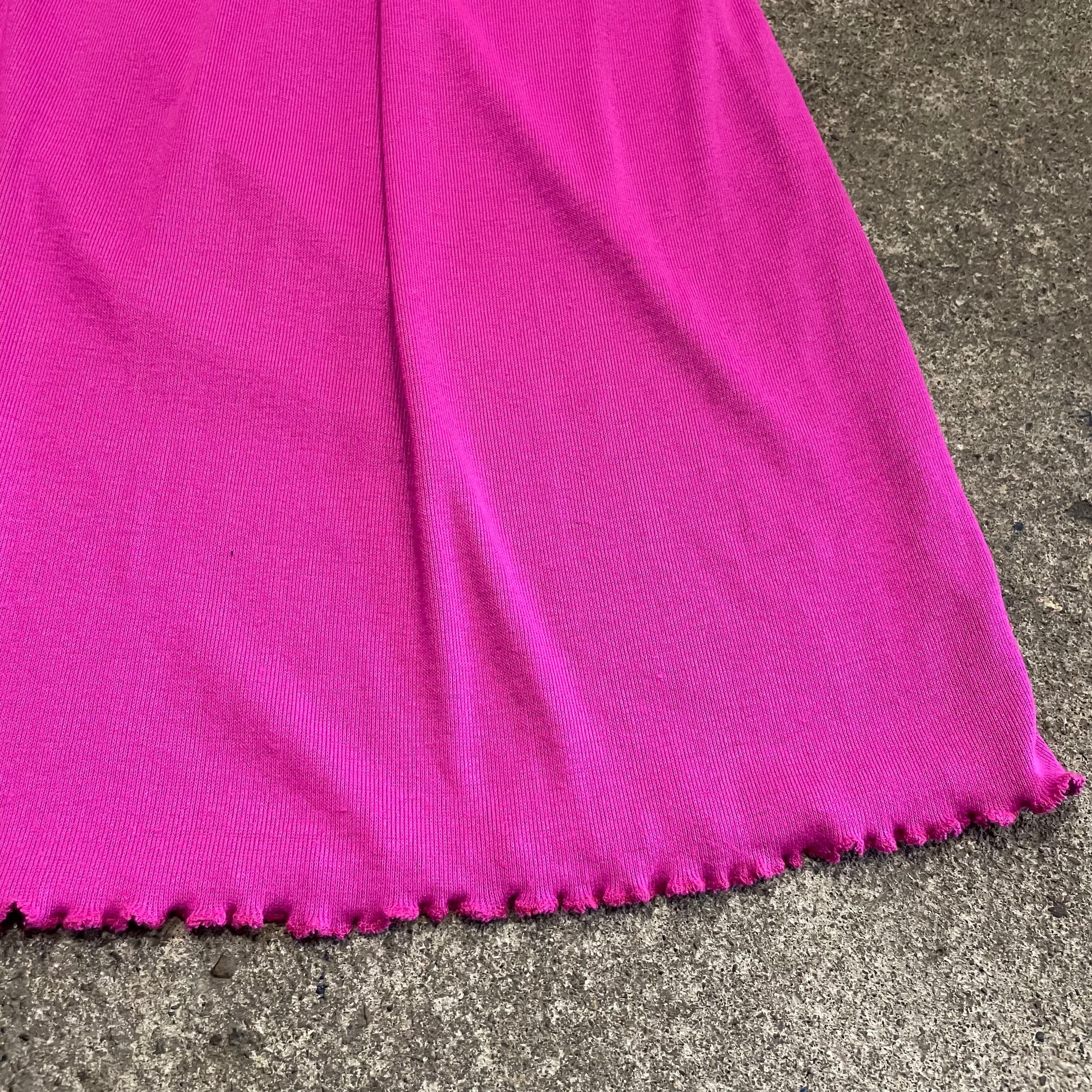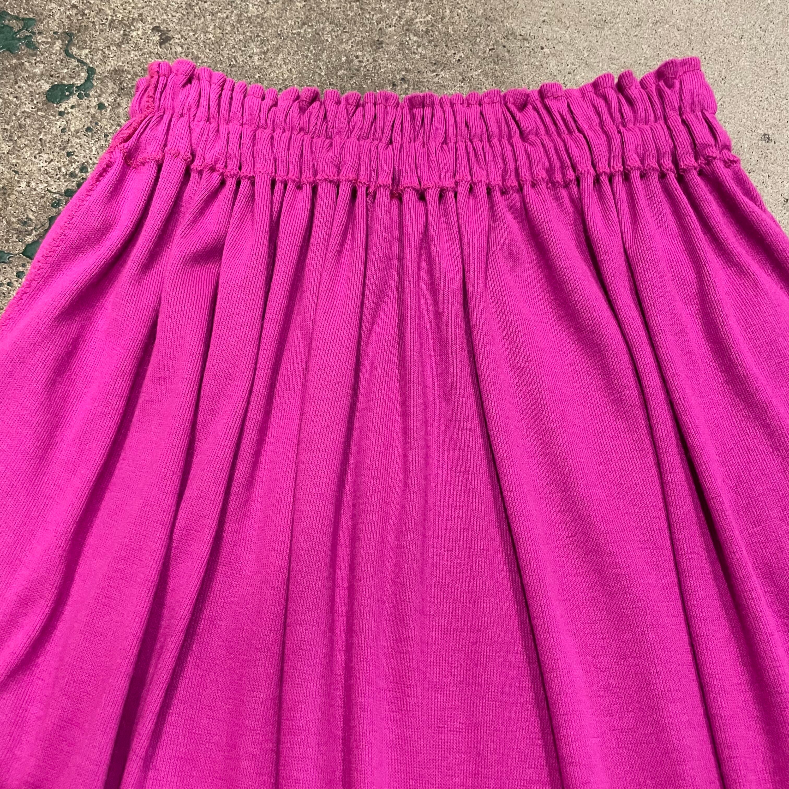 鮮やかなピンクのとても細かいリブ編みがかわいいスカートです。