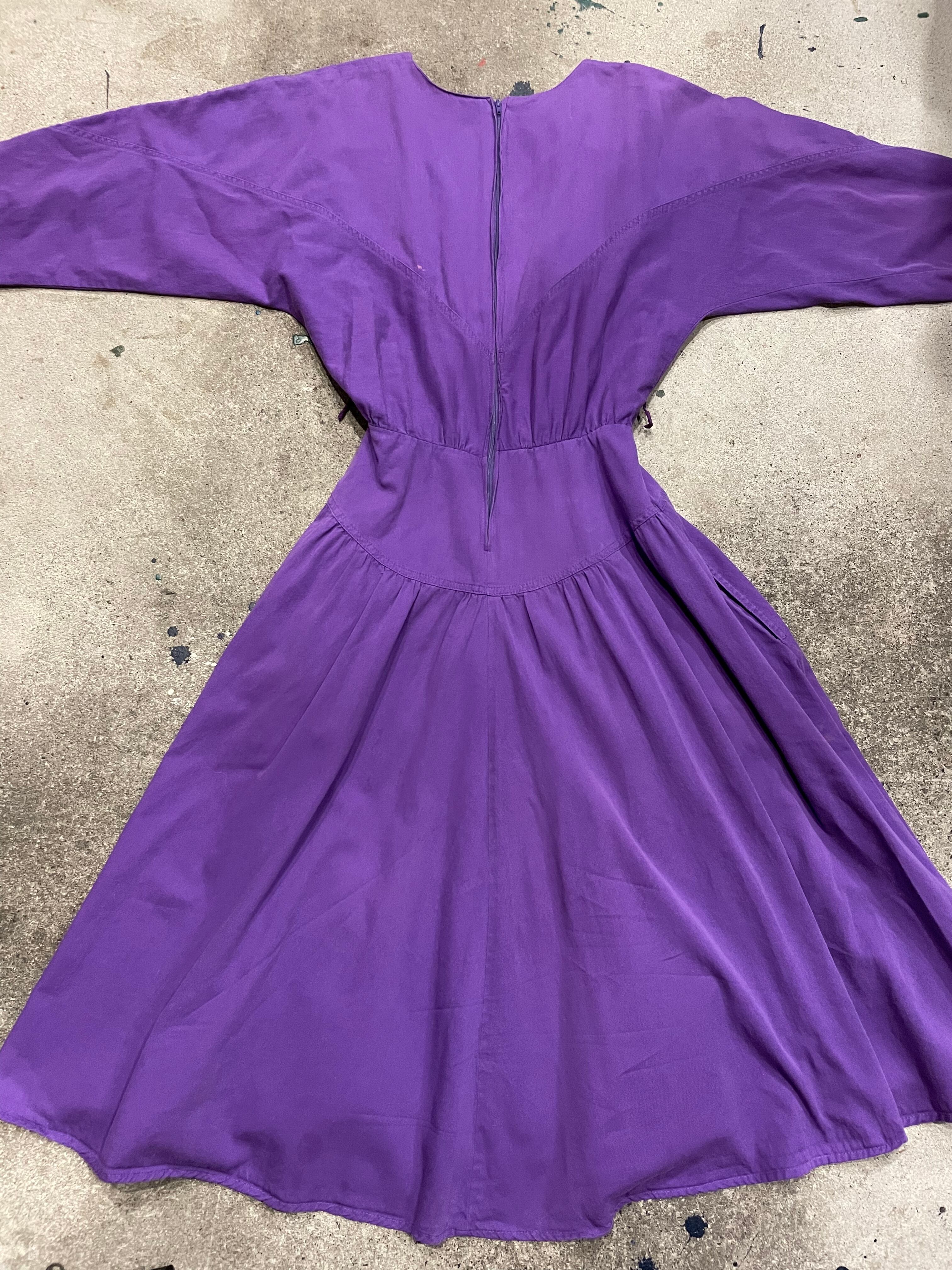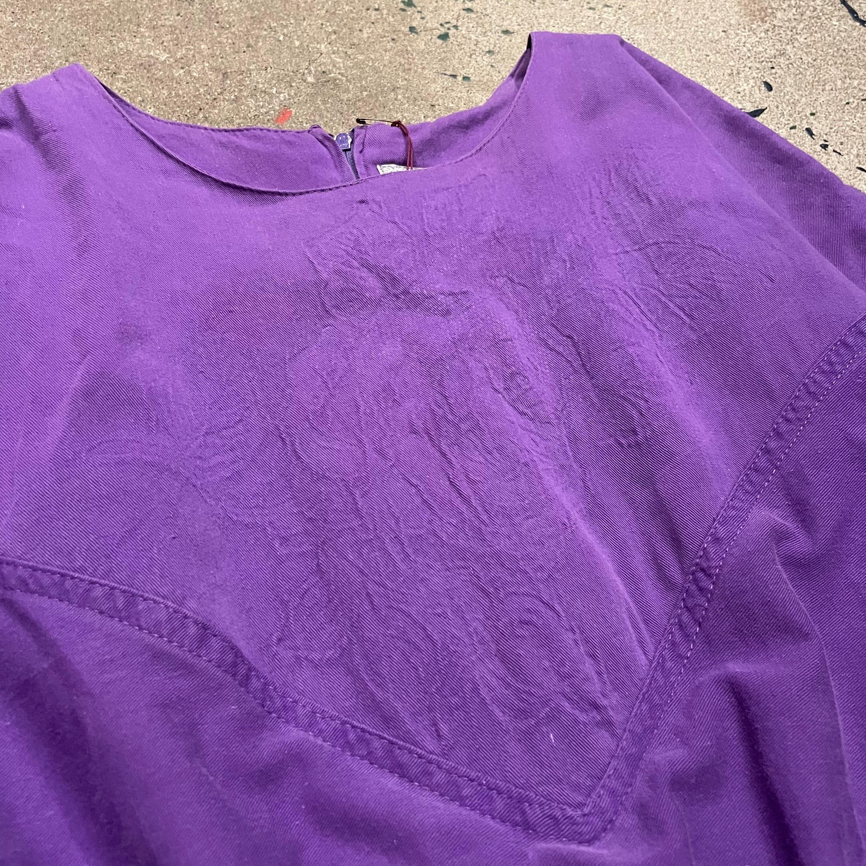 胸元にはうっすらお花の型押しのような若干立体的な模様があり、ドルマンスリーブで太めの袖やウエストのデザインなどディテールがかわいい一着です。