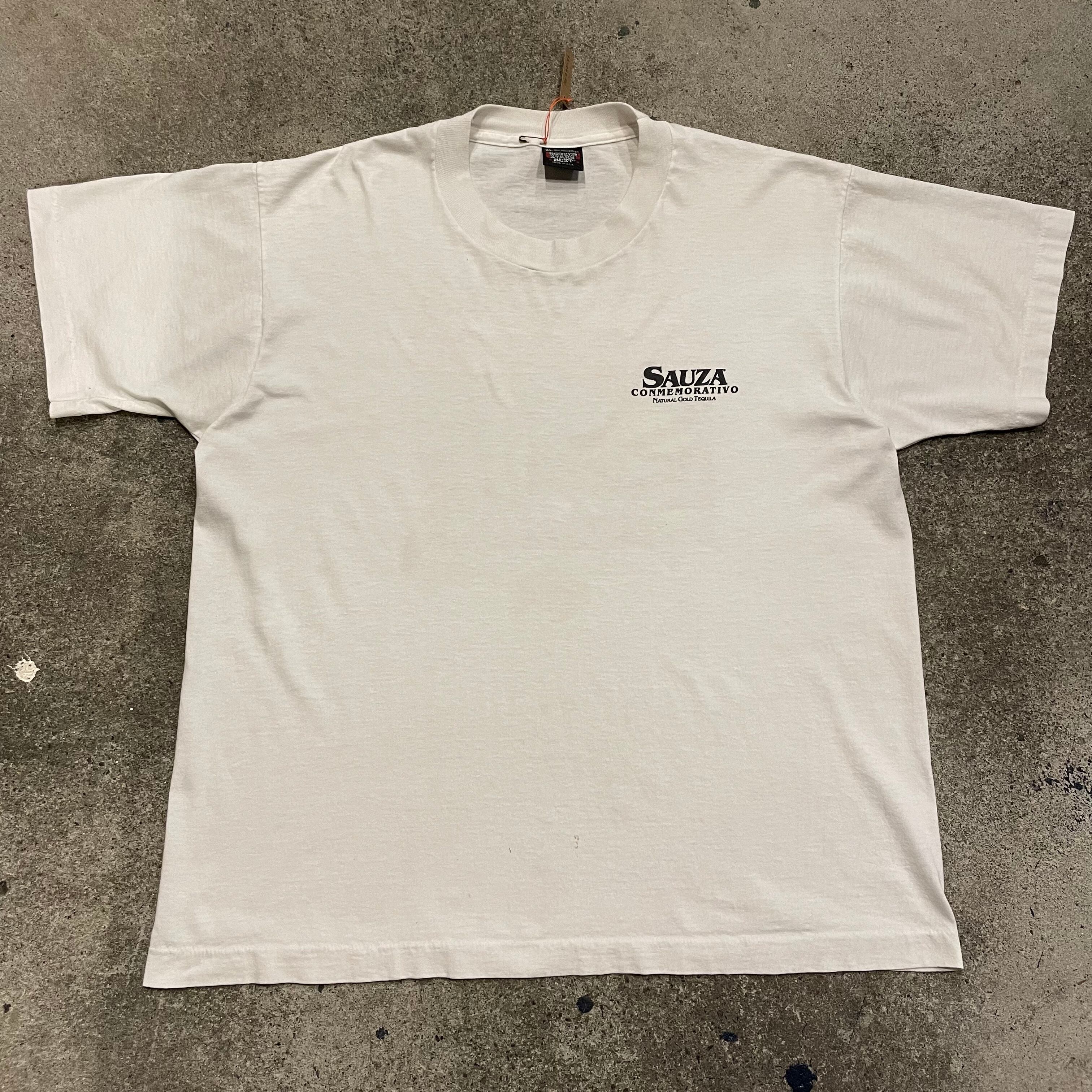 "SAUZA"というテキーラのロゴがプリントされたTシャツです。