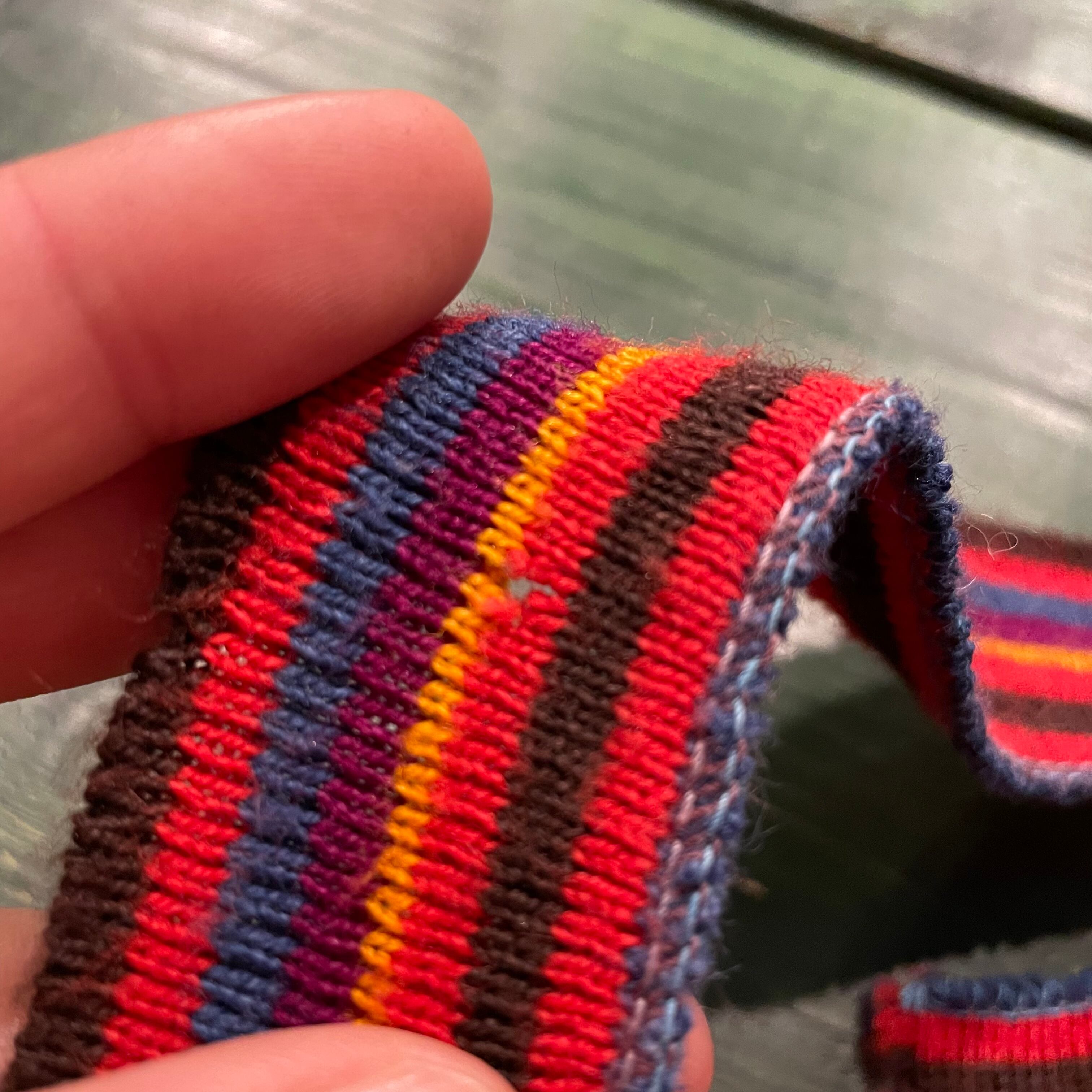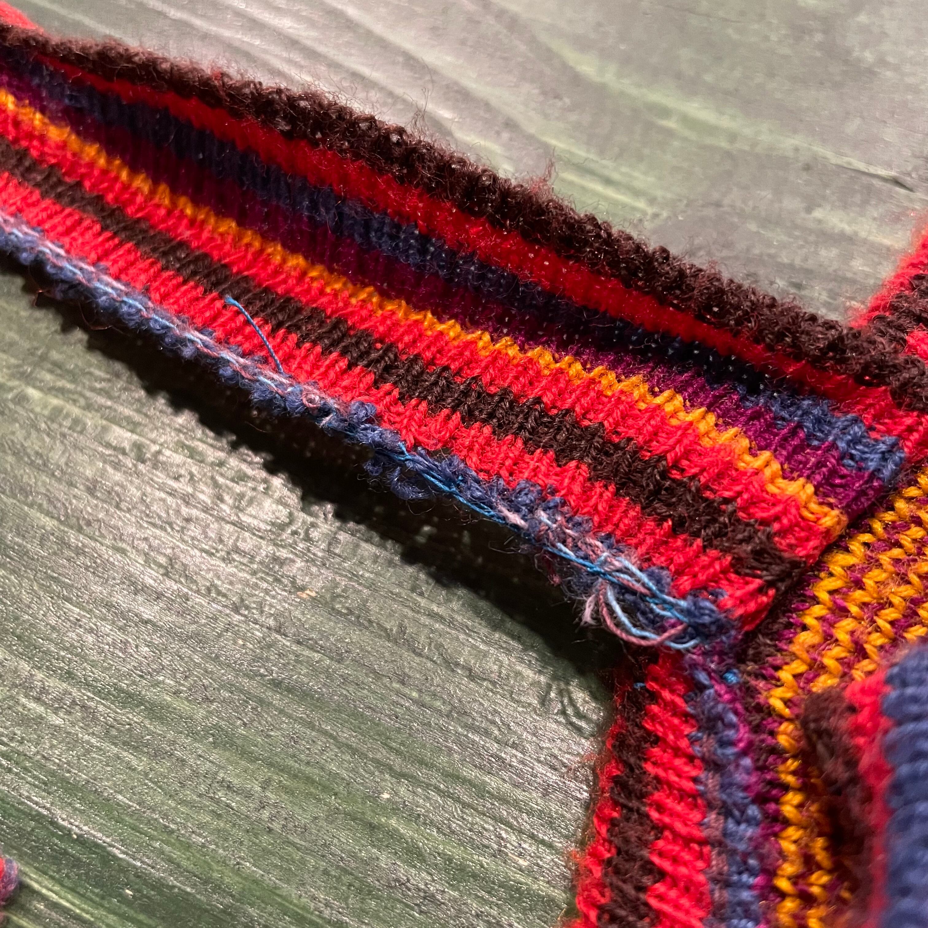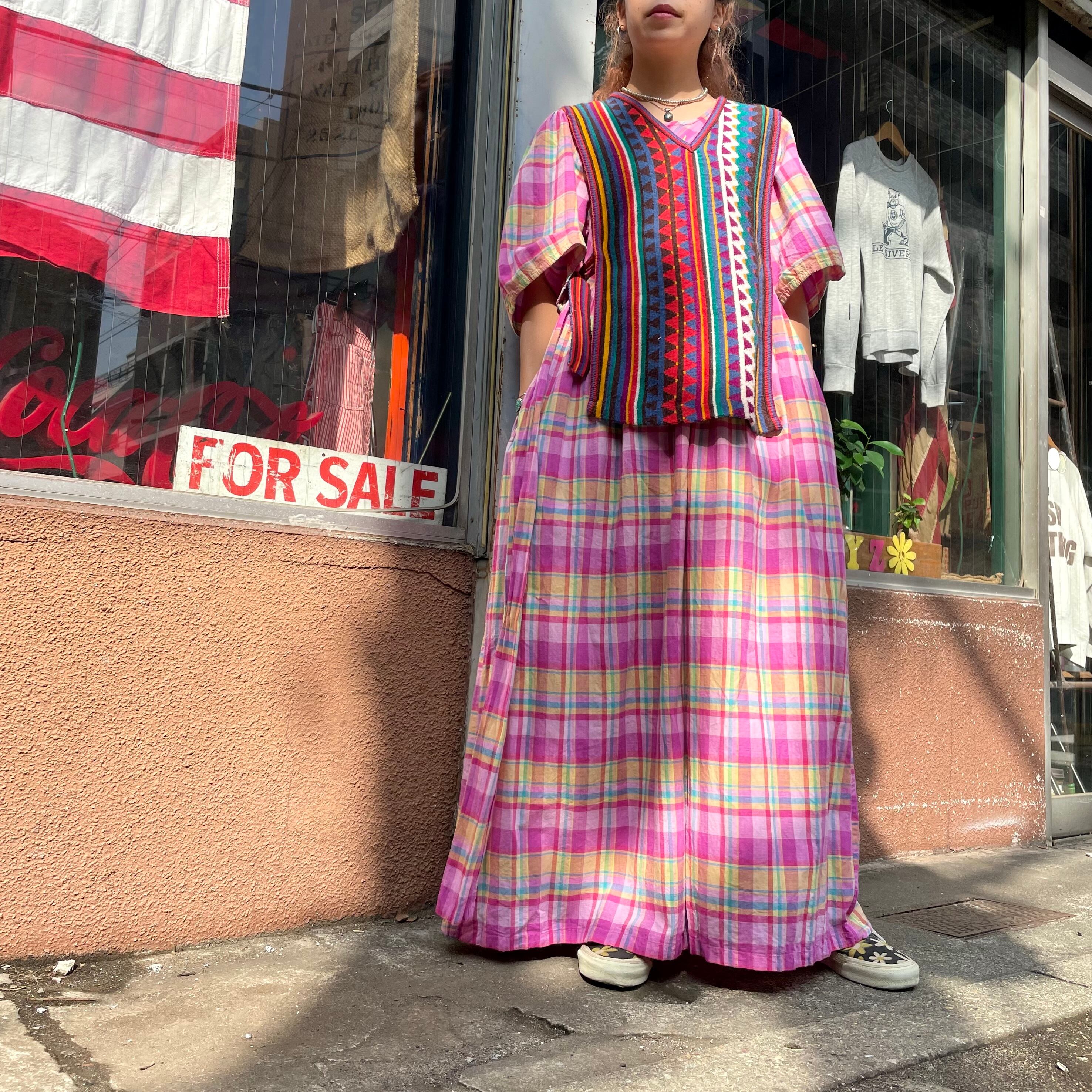 発色の良い色合いとネイティブ柄っぽい模様がとてもかわいいニットベストです。