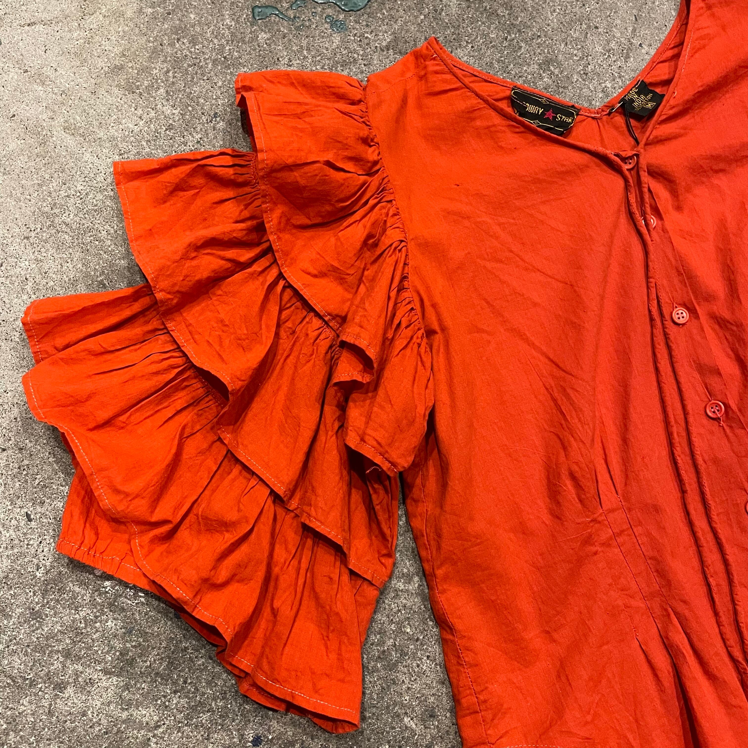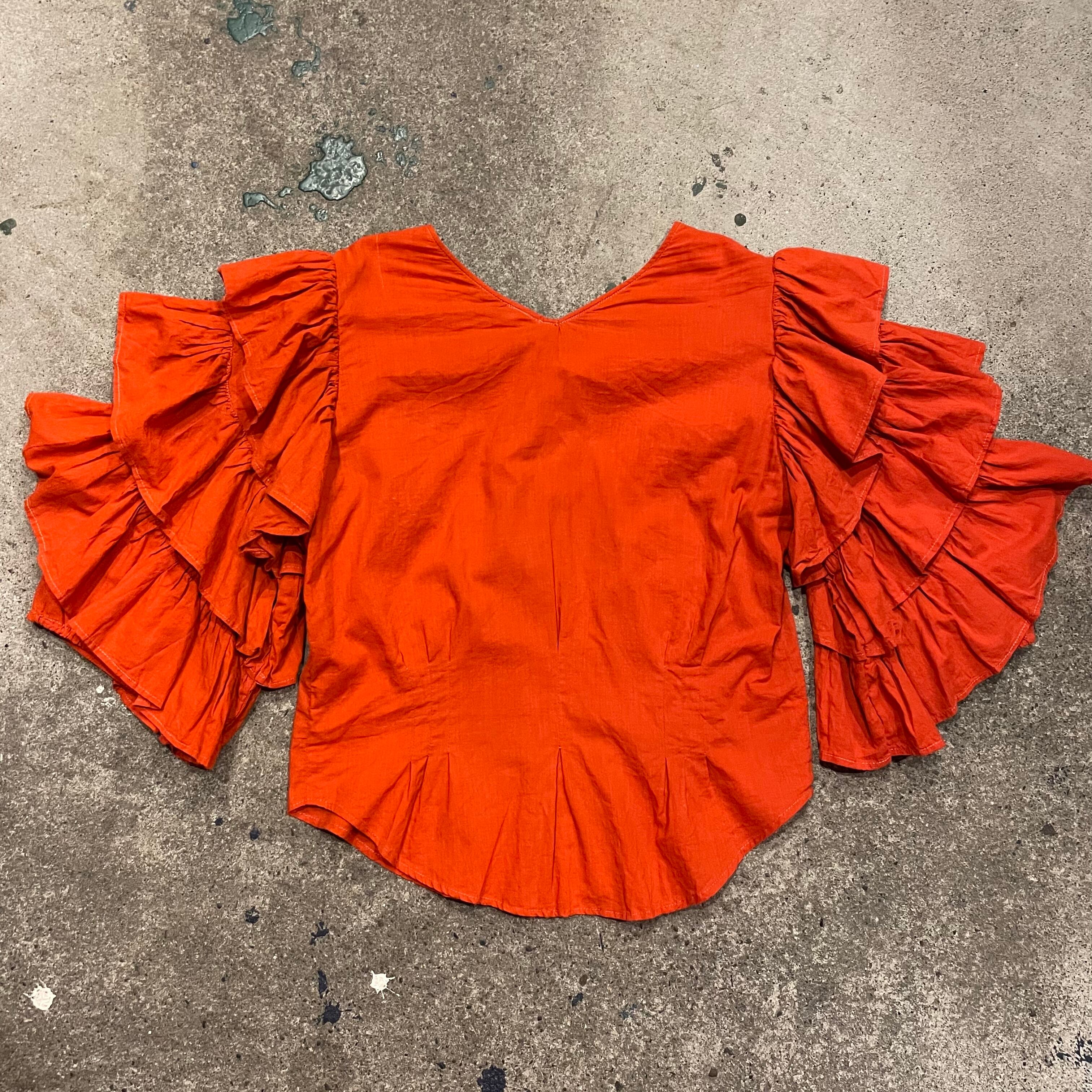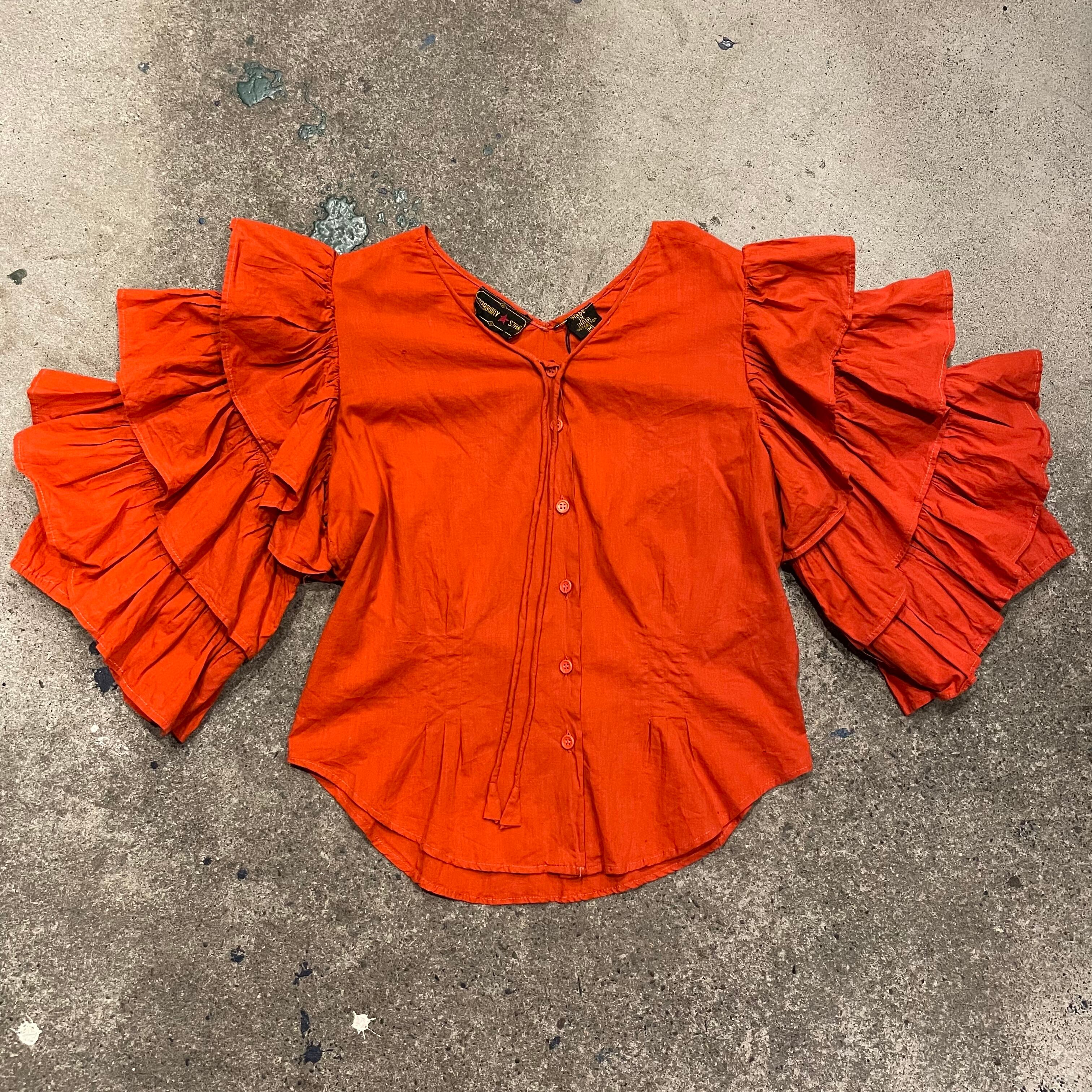 なんといっても袖の3段フリルのボリューム感がとてもかわいい、雰囲気のあるブラウスです。