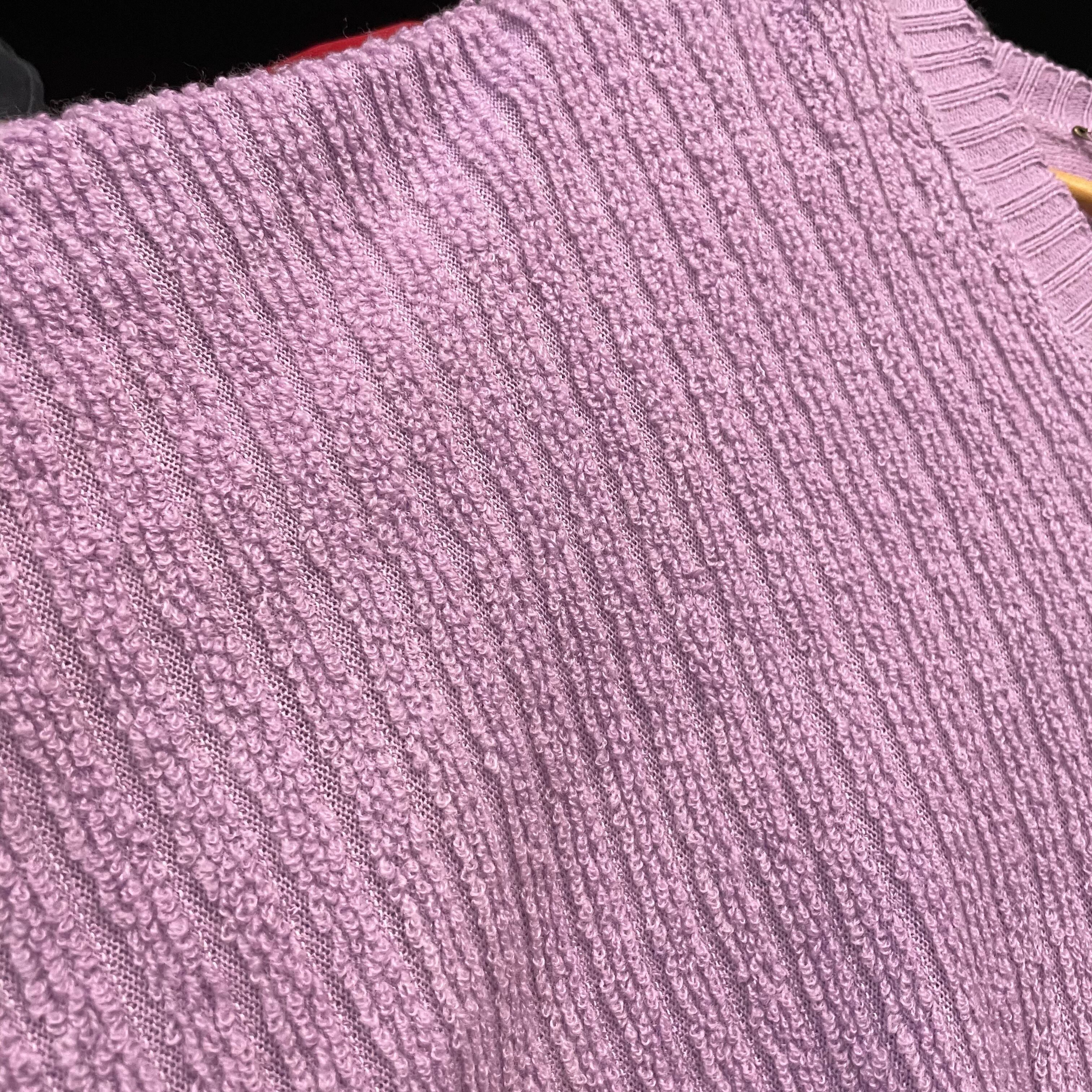 淡いラベンダーカラーがかわいいパイル地のトップスです。