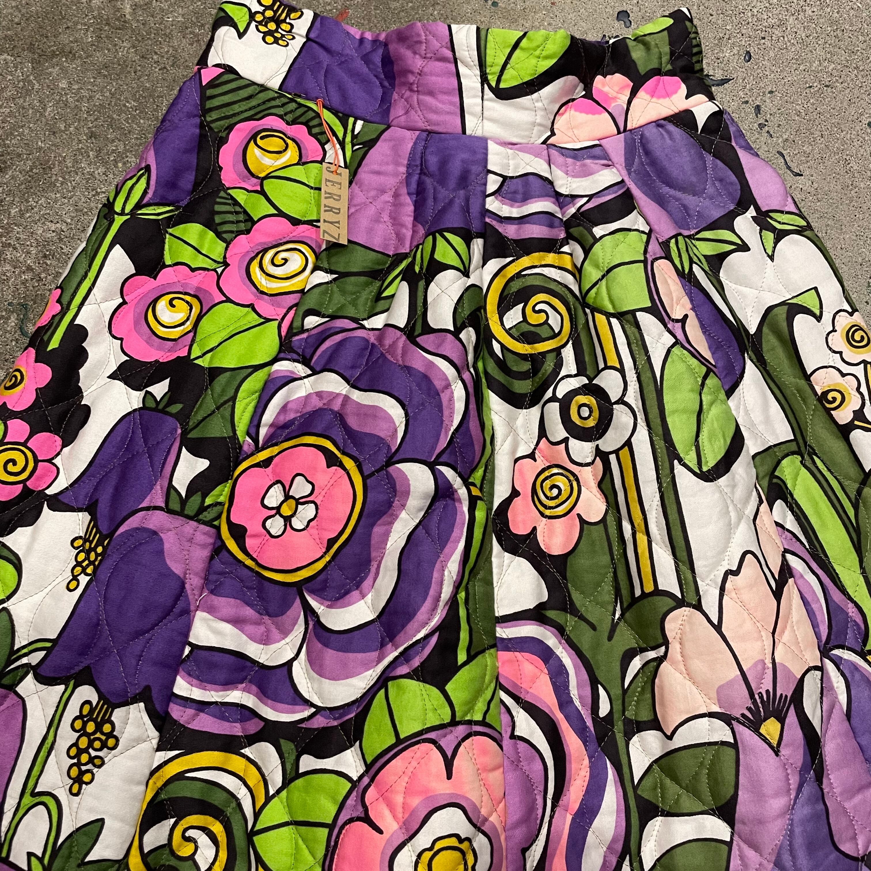 色味とぱっきりとしたインパクトのある柄がとてもかわいいキルティングスカートです。