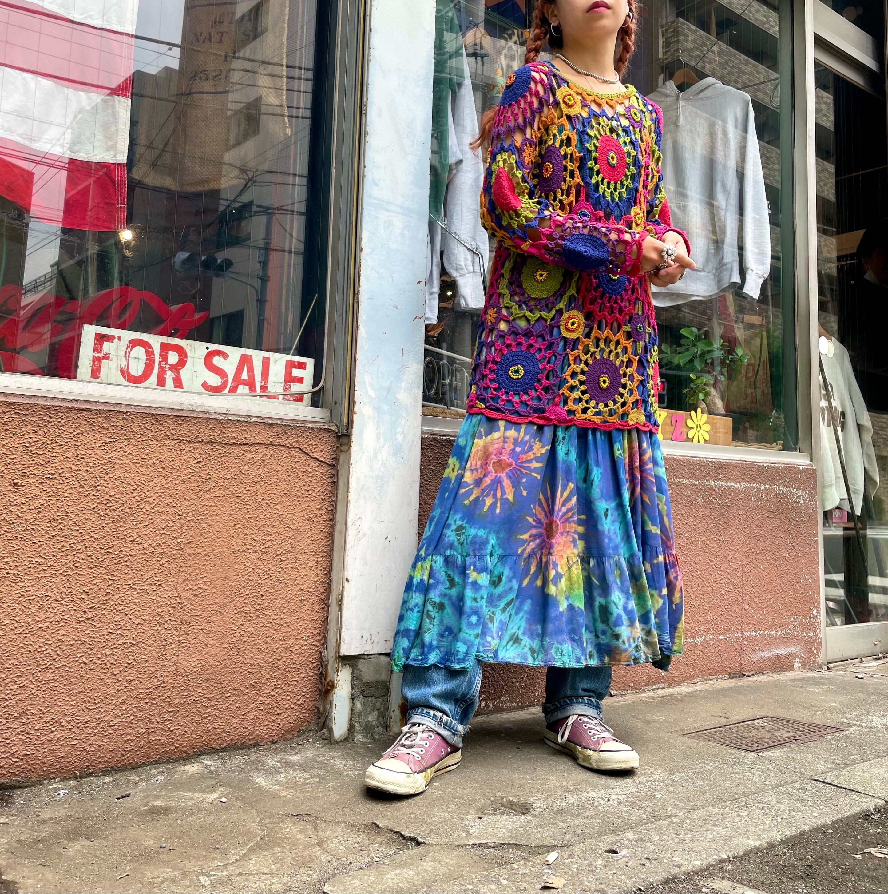 夏に一枚で着るのはもちろんですが、重ね着して着る寒い季節のタイダイも素敵だと思います。