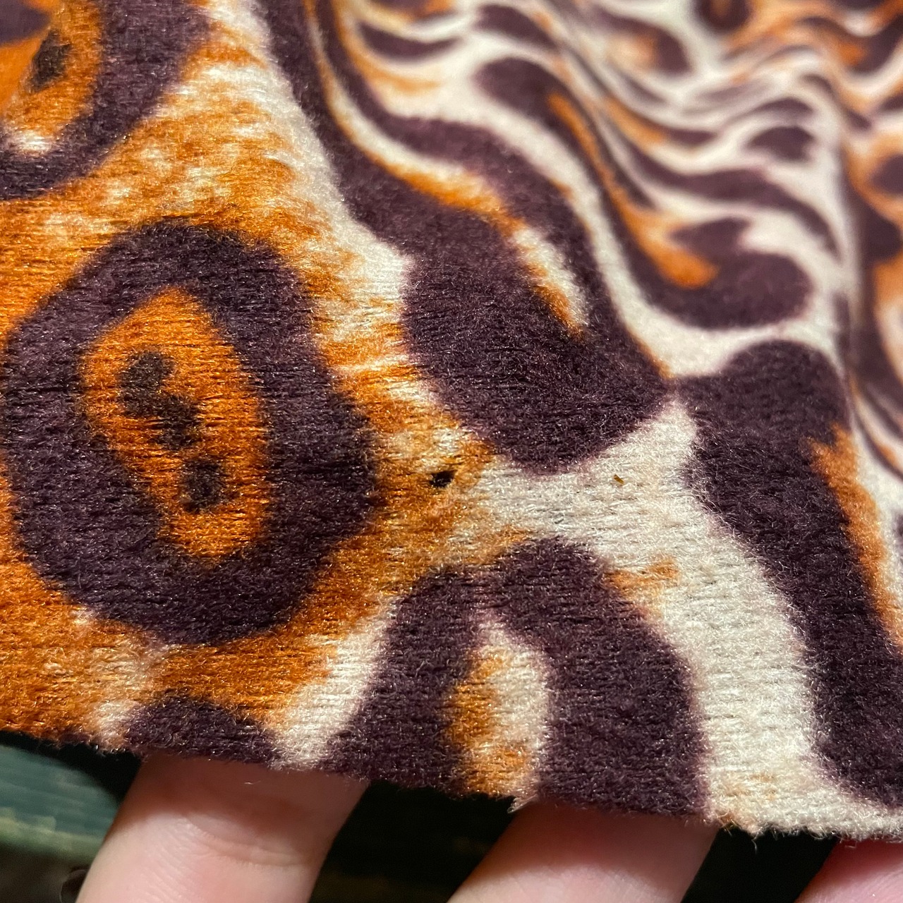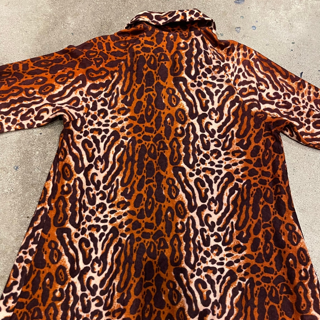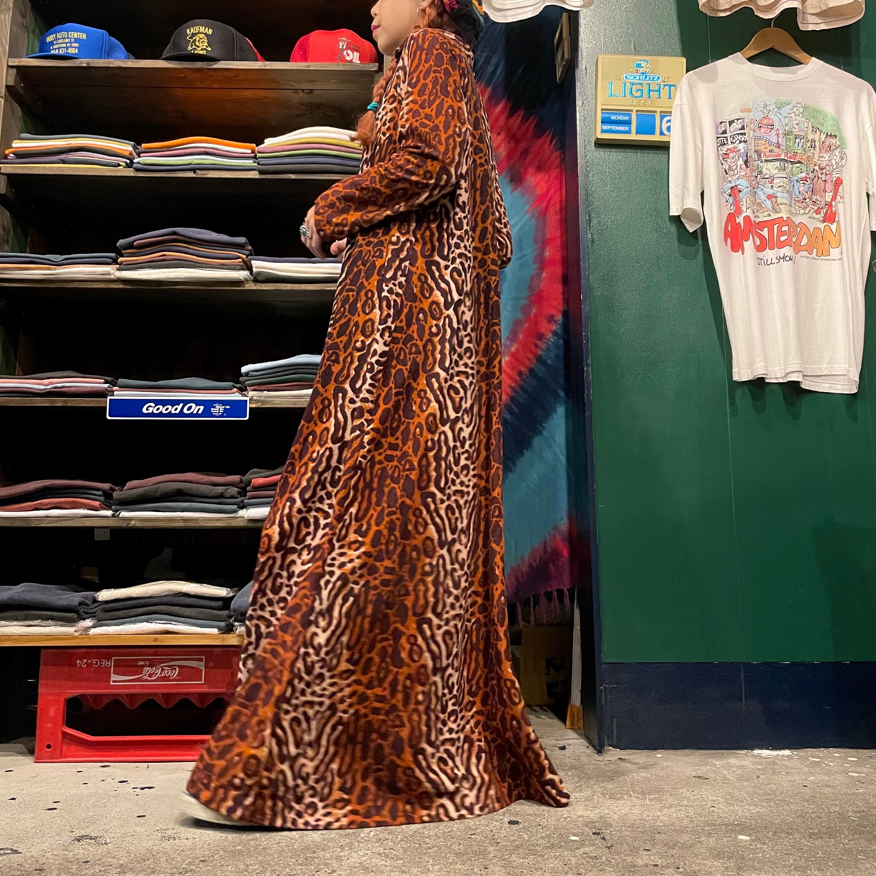 薄手のフリースのような雰囲気の暖かいワンピースです。どこからどう見てもヒョウ柄!という感じで一枚で着てもインパクトがありかわいいです。