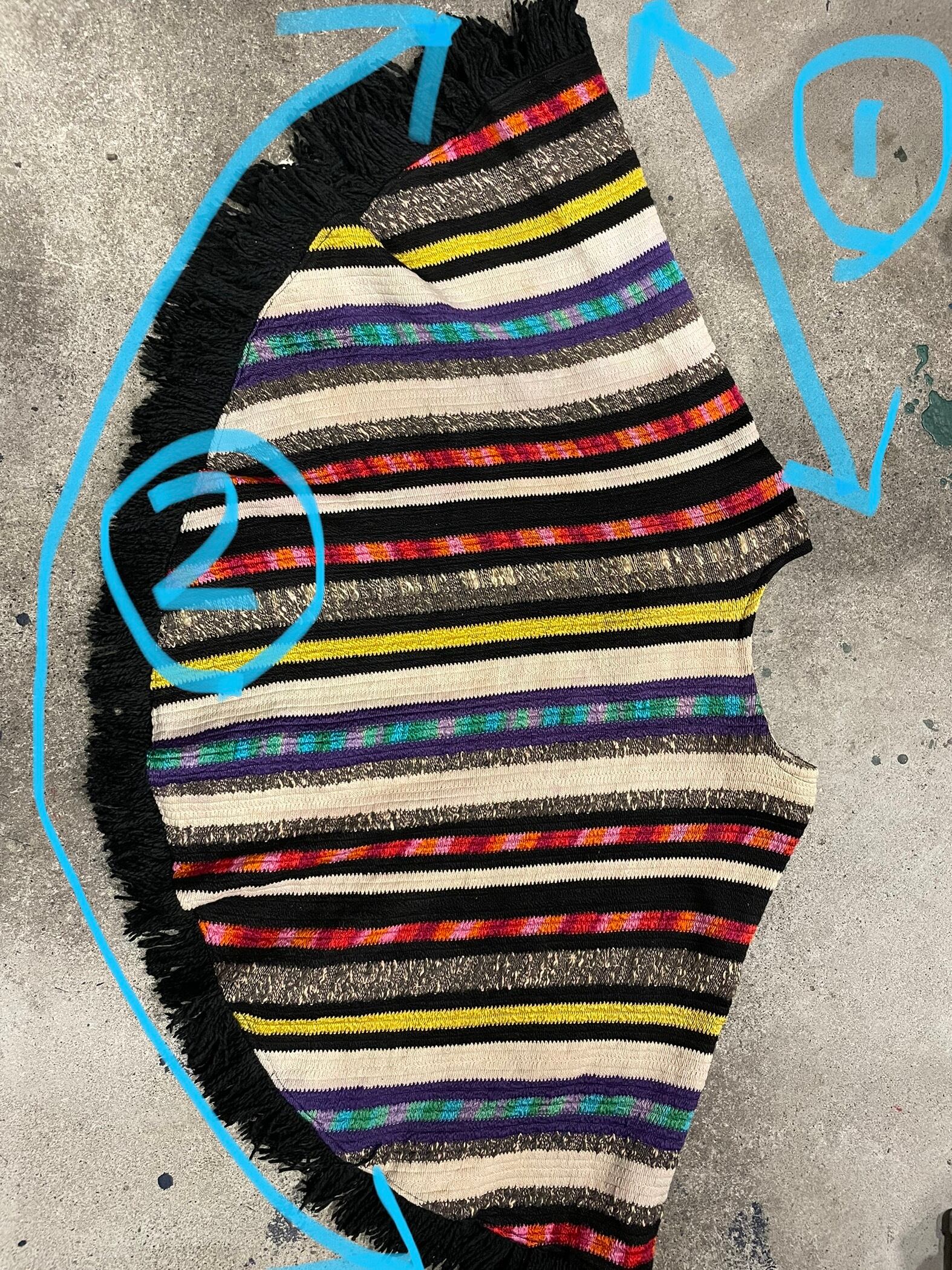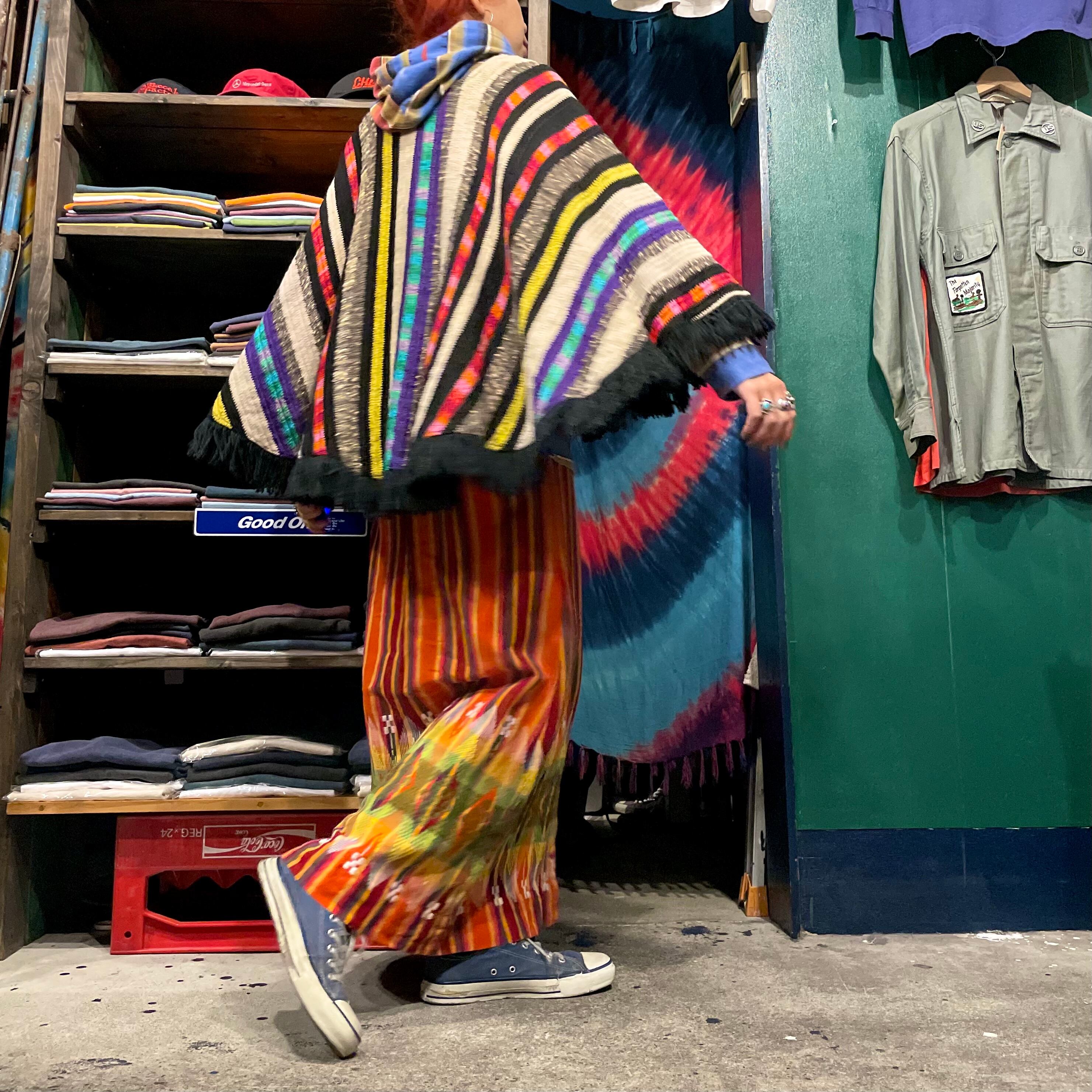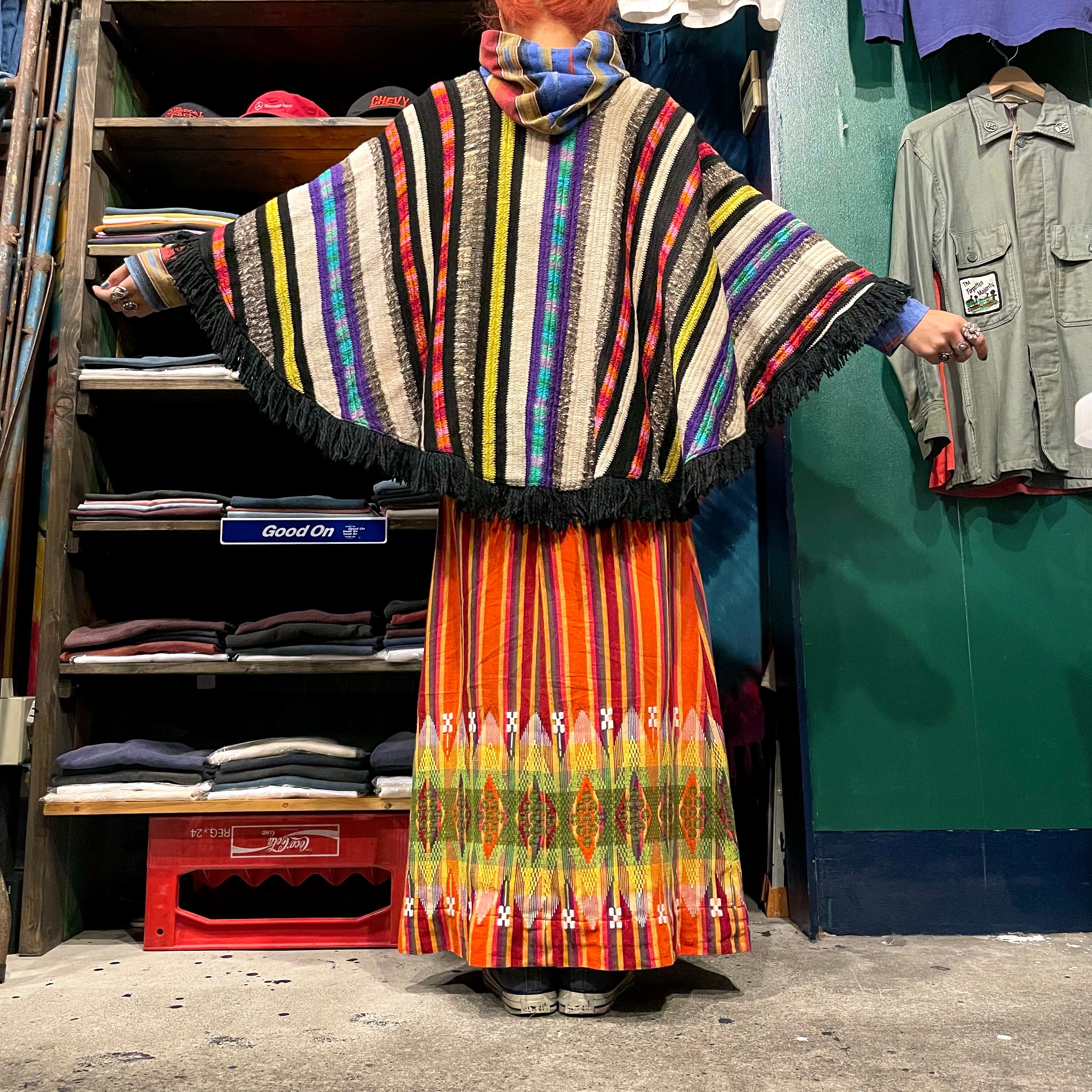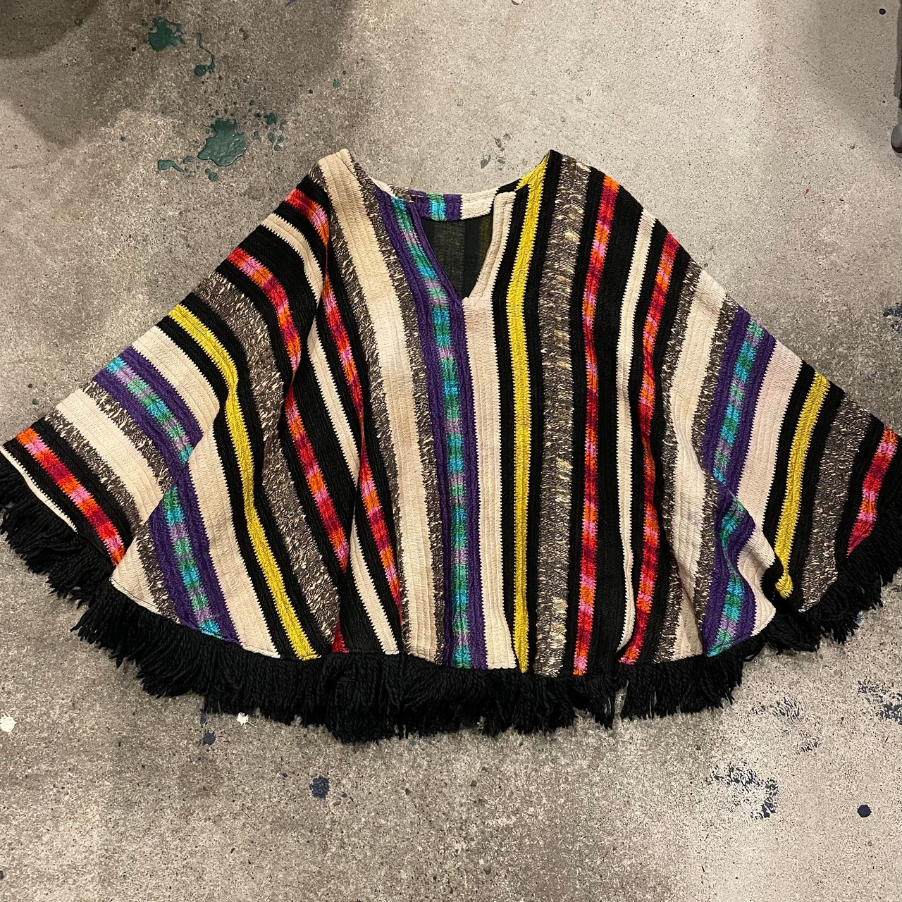 毛糸を織ったり縫ったりして作られたような独特の雰囲気がとても素敵なポンチョです。