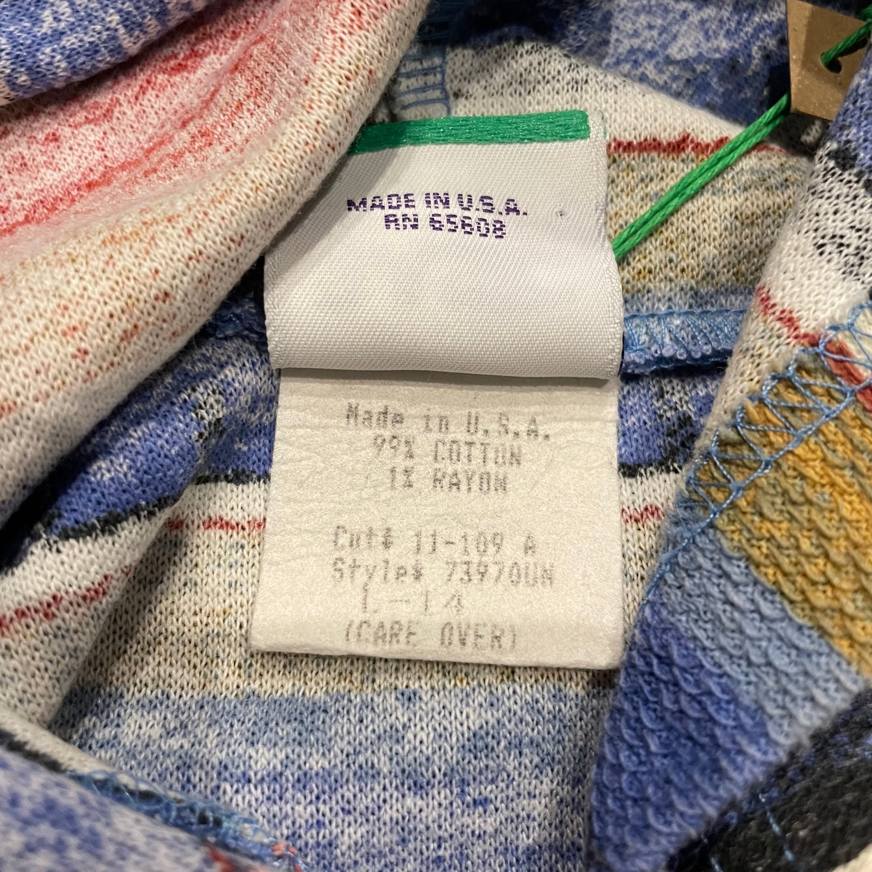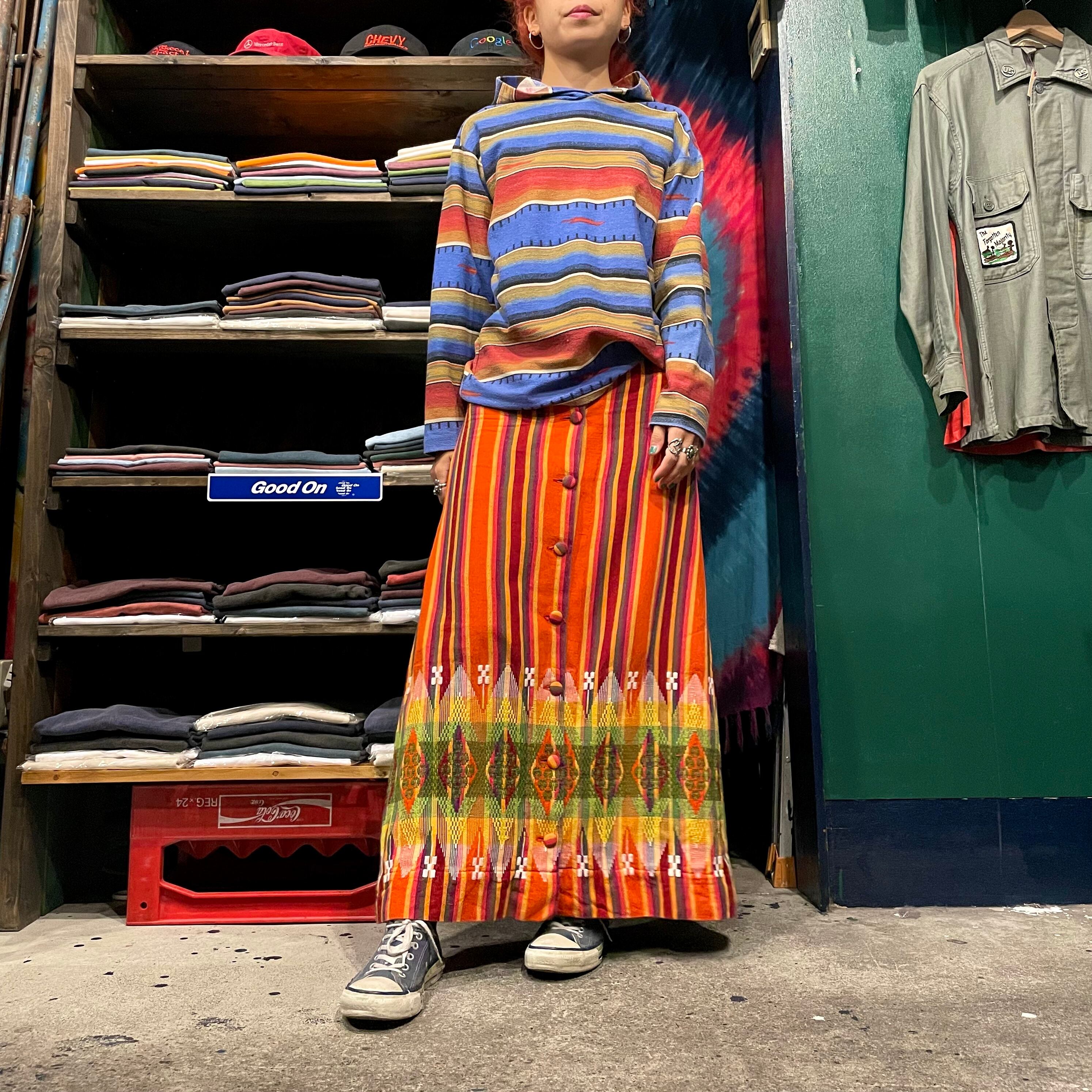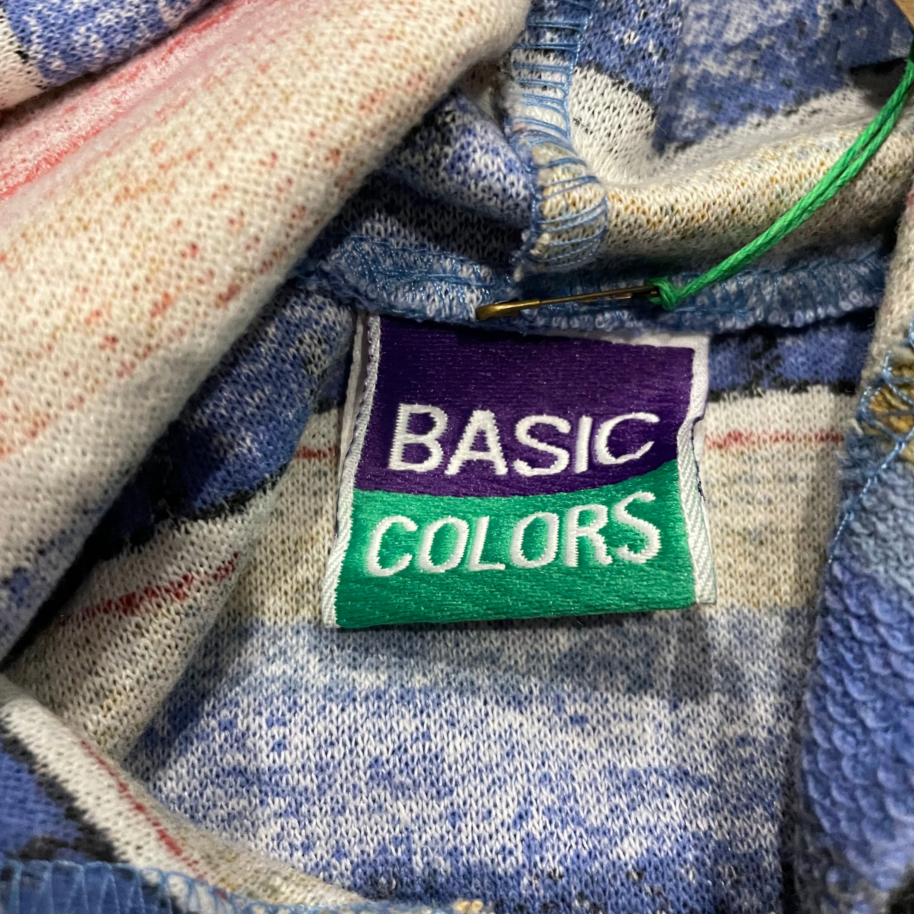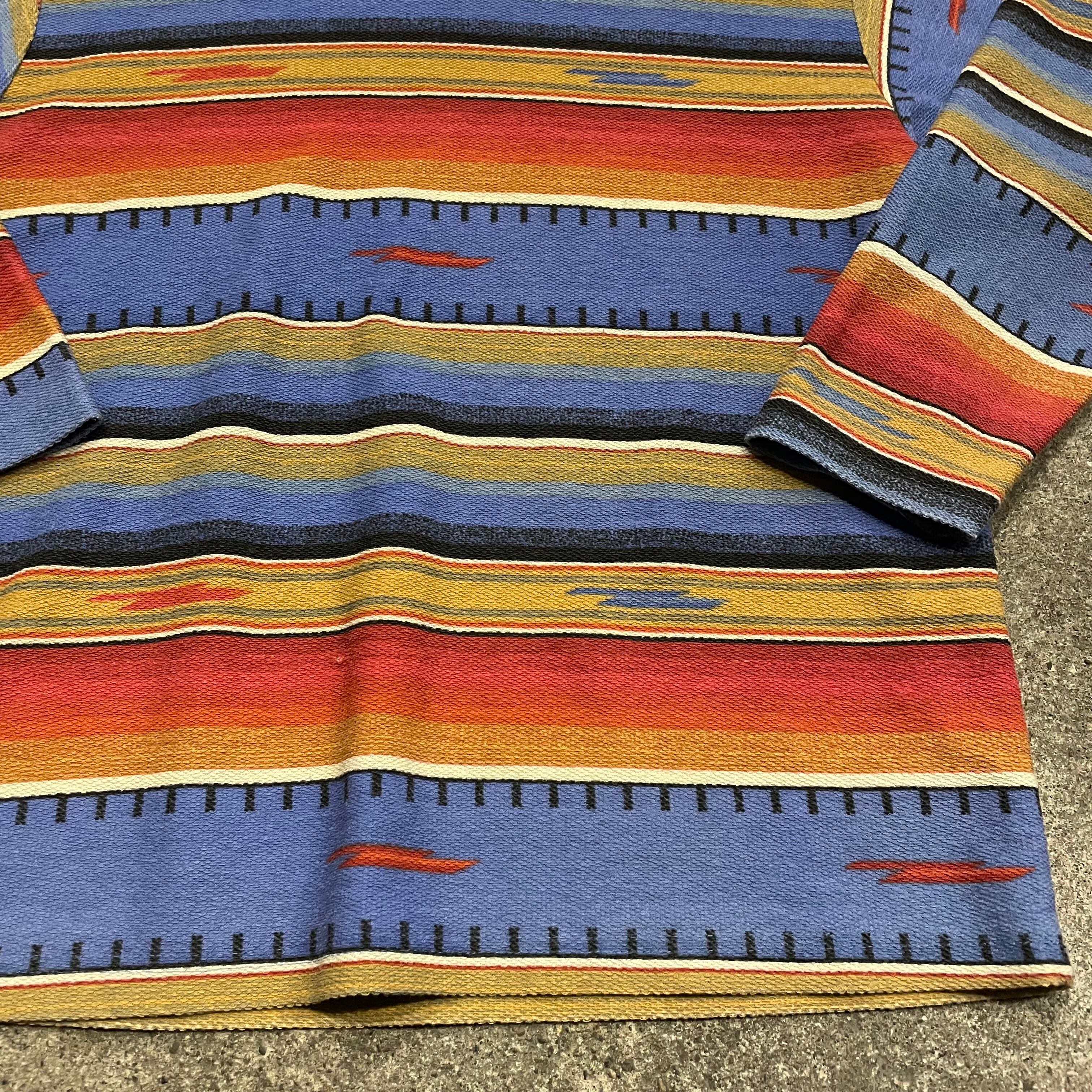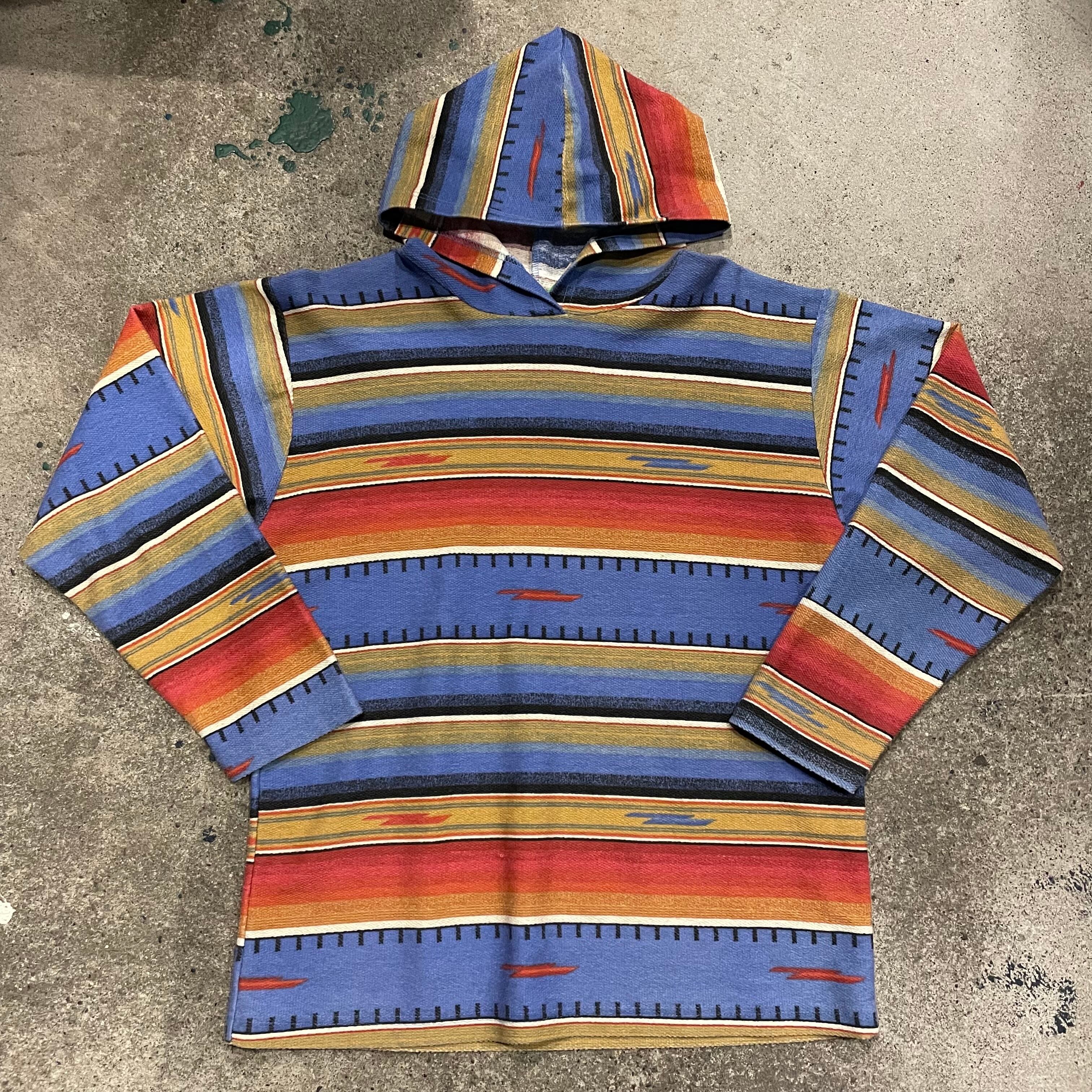 ネイティブ柄のようなデザインがかわいい薄手のパーカーです。青とオレンジのボーダーが雰囲気があって良い感じです。