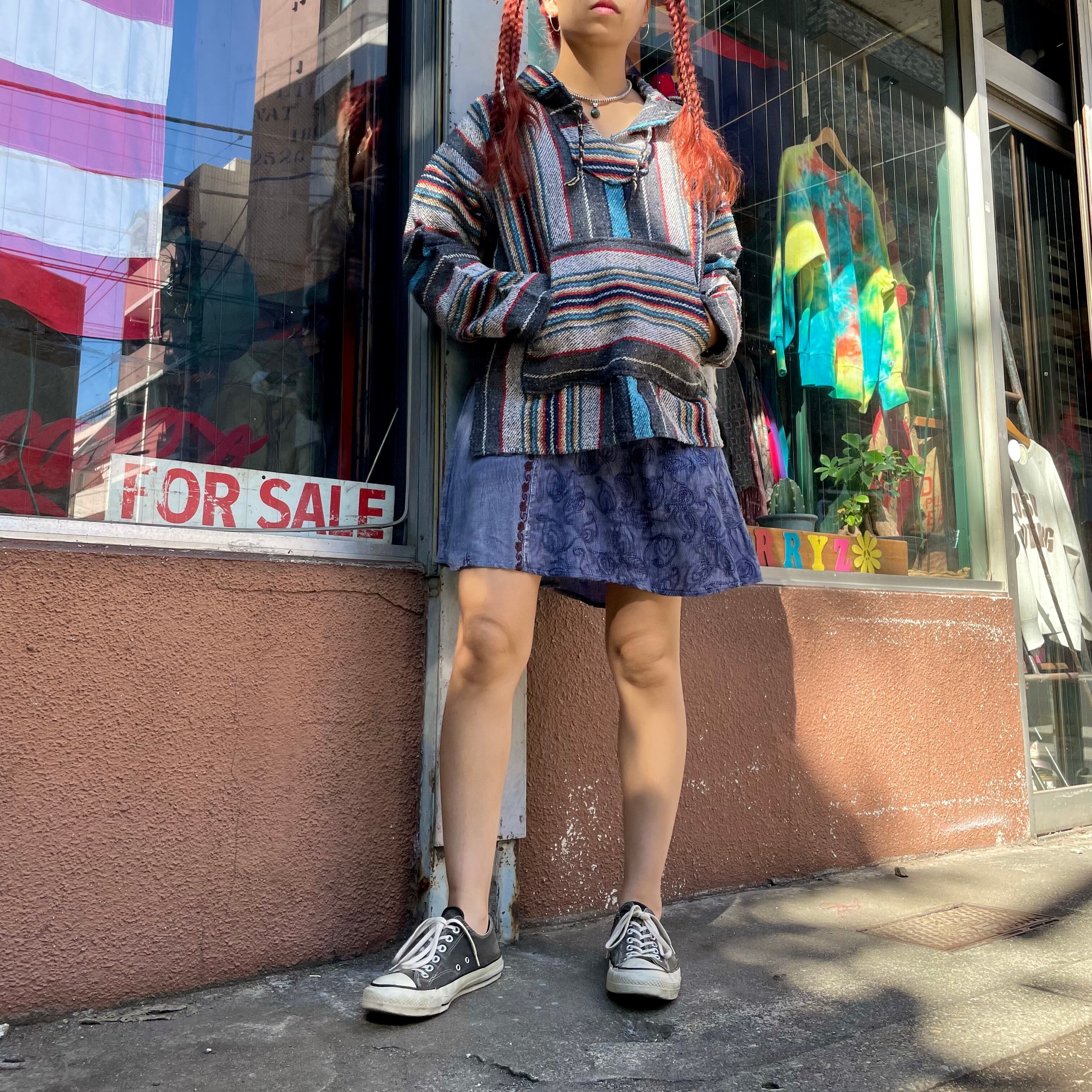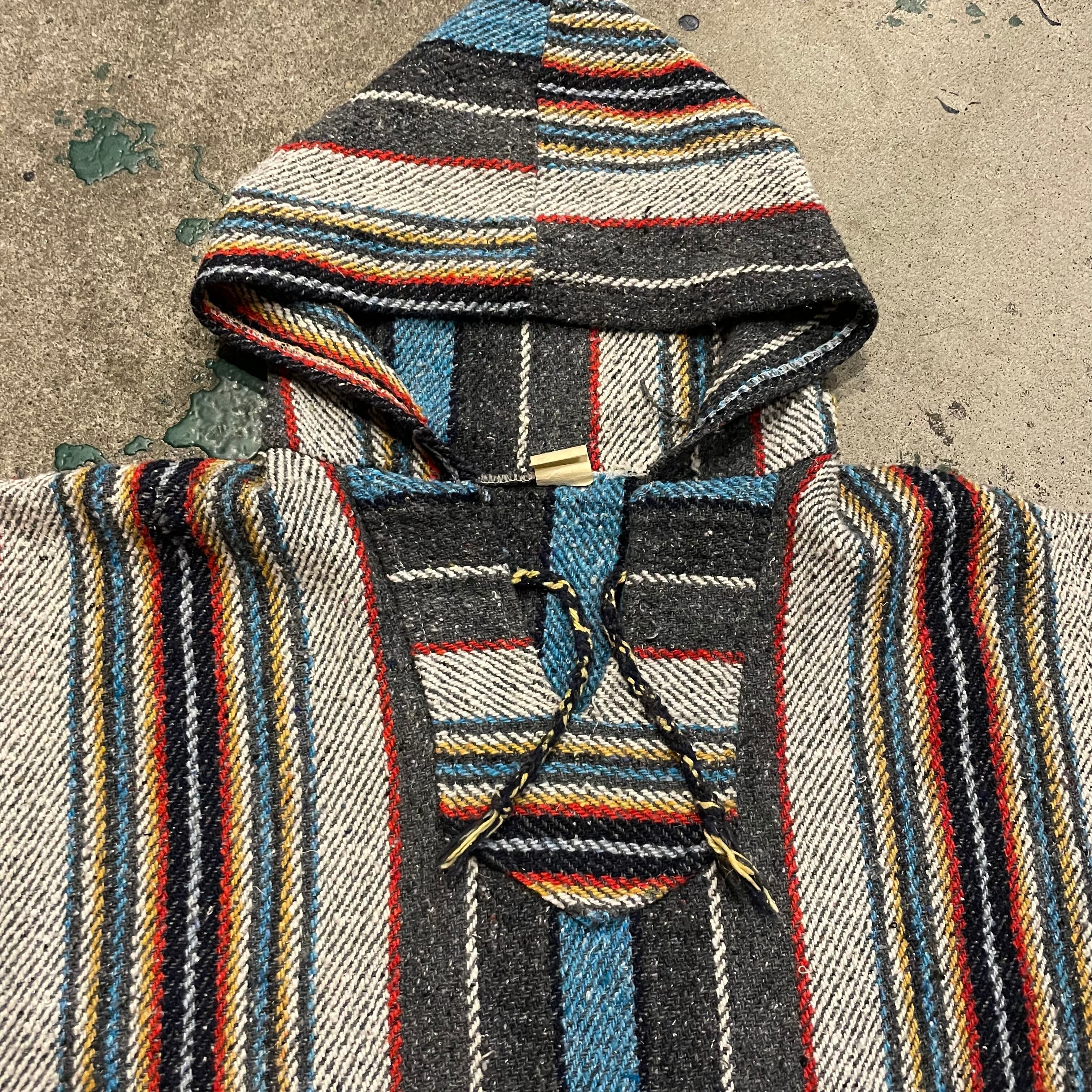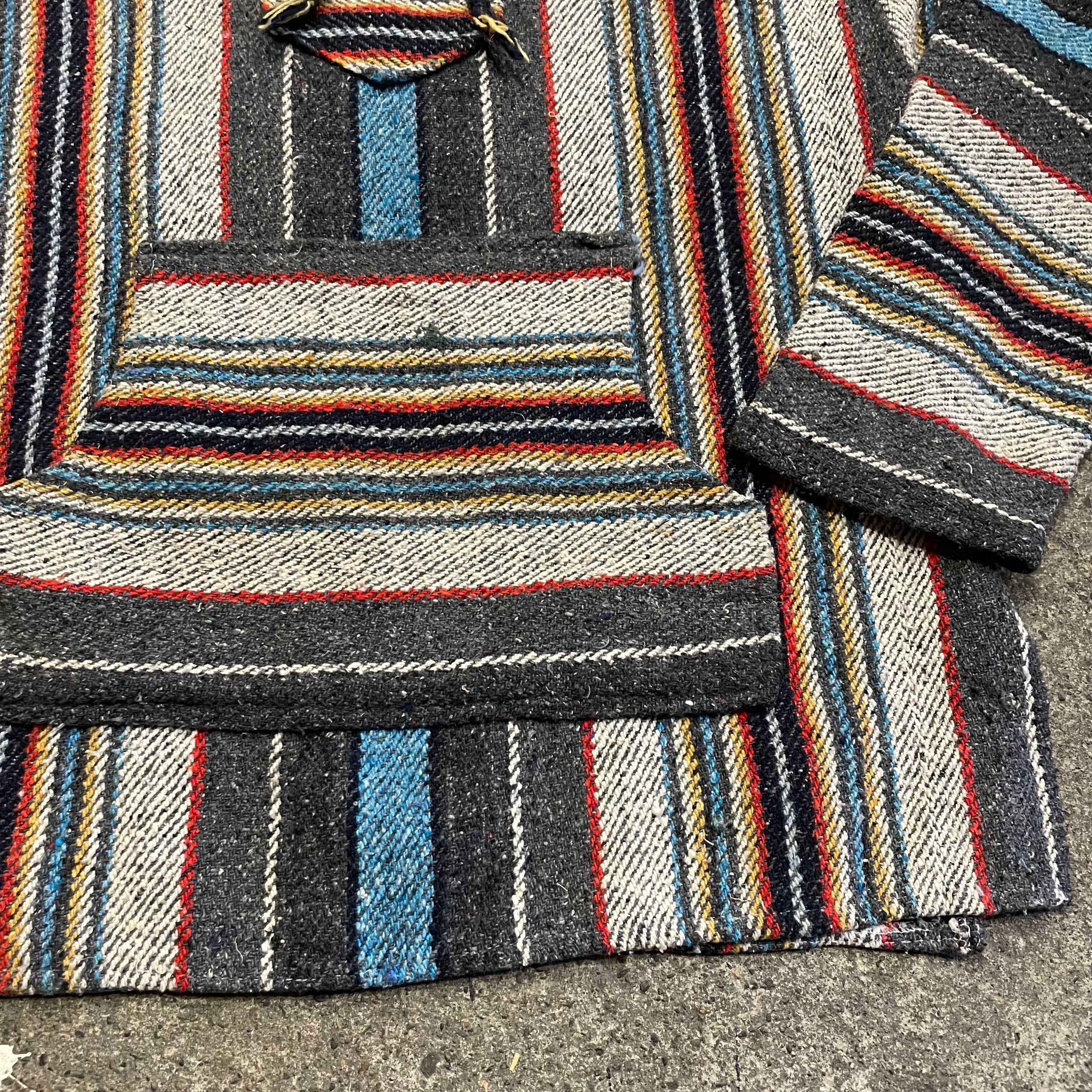 色味がとても良い感じのメキシカンパーカーです。前の持ち主の人がお気に入りでよく着てたのかなと思わせるペンキの跡やダメージ、使用感のある商品ですが、そこが良い雰囲気としてアジになっているかと思います。