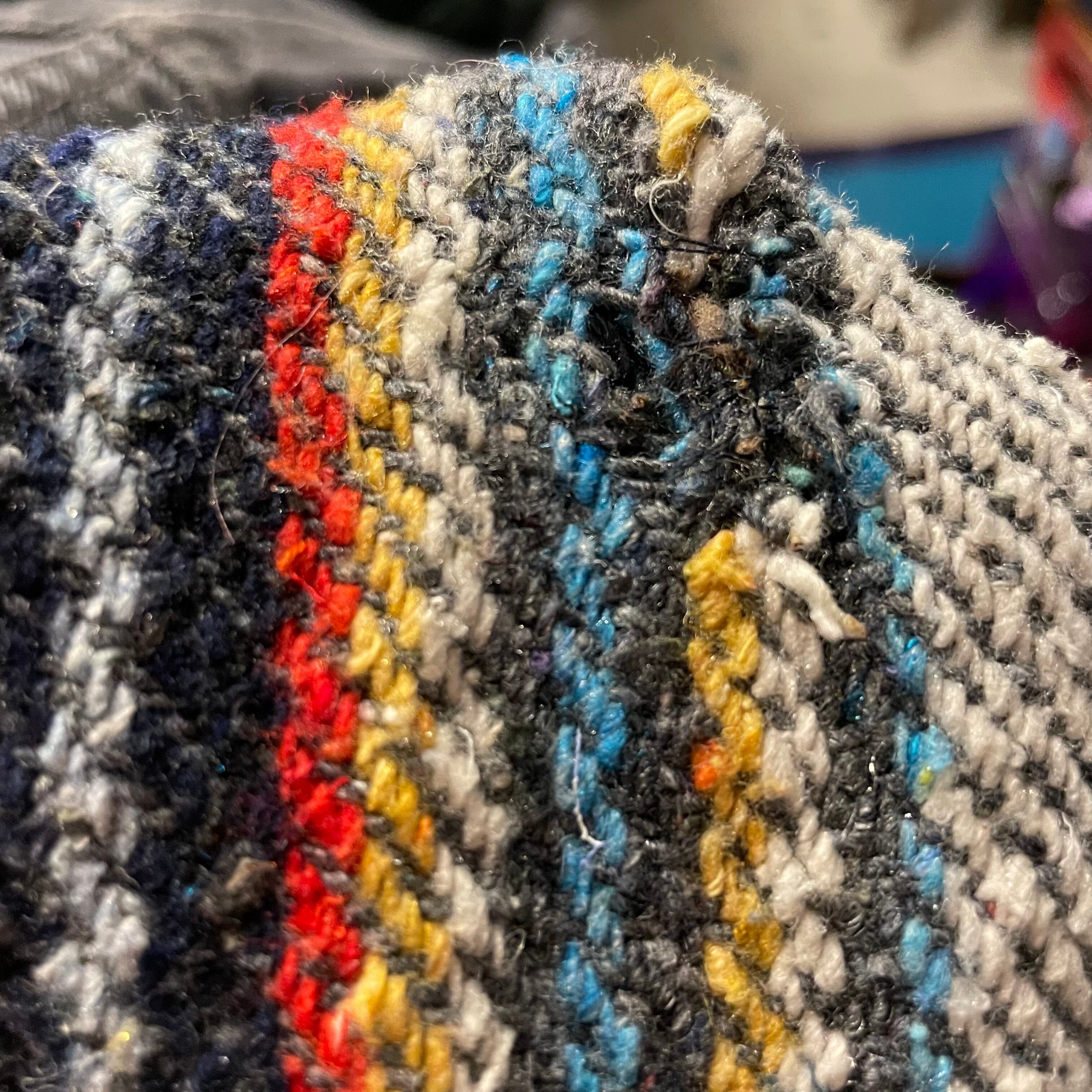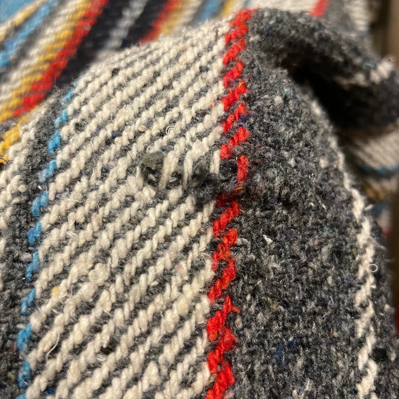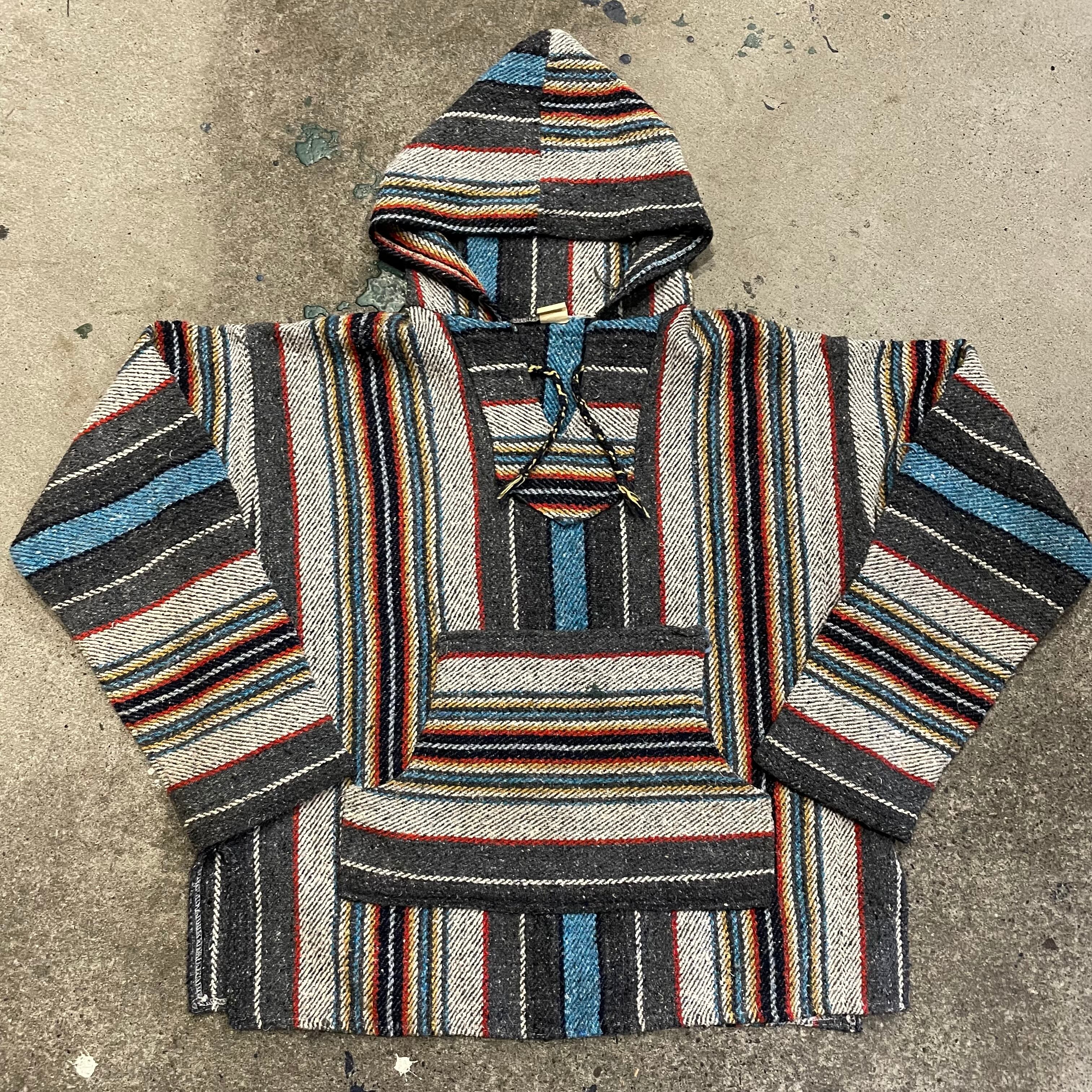 色味がとても良い感じのメキシカンパーカーです。前の持ち主の人がお気に入りでよく着てたのかなと思わせるペンキの跡やダメージ、使用感のある商品ですが、そこが良い雰囲気としてアジになっているかと思います。