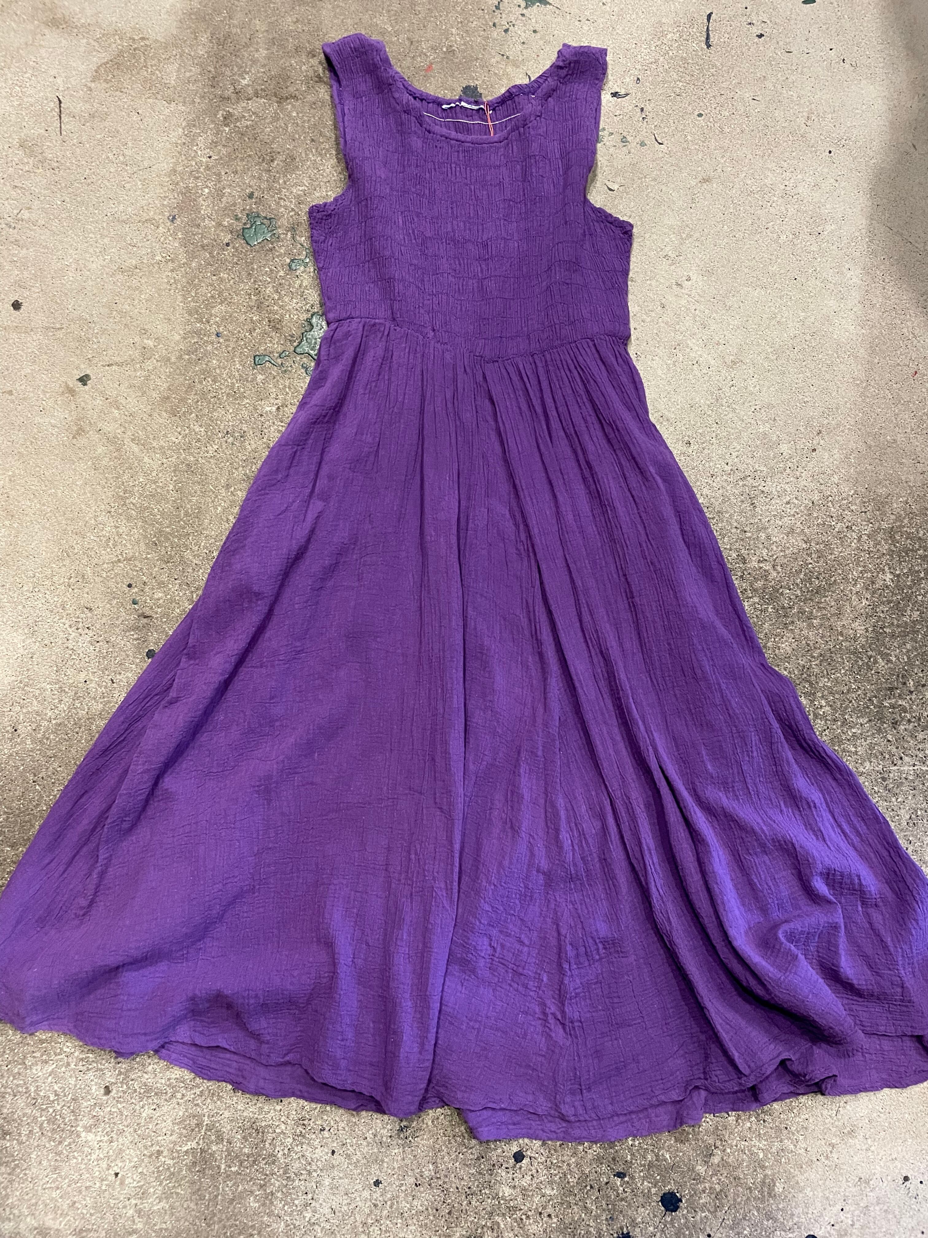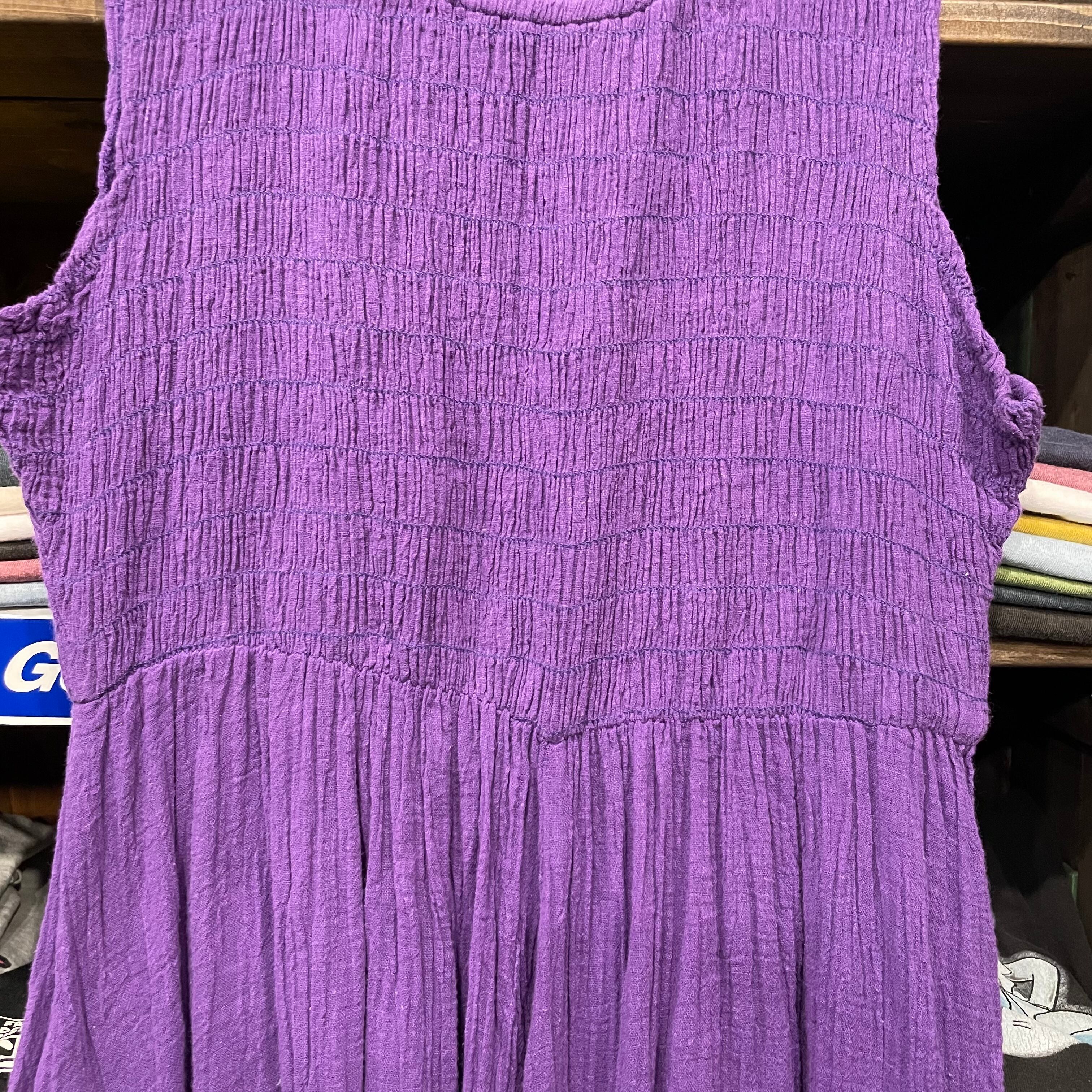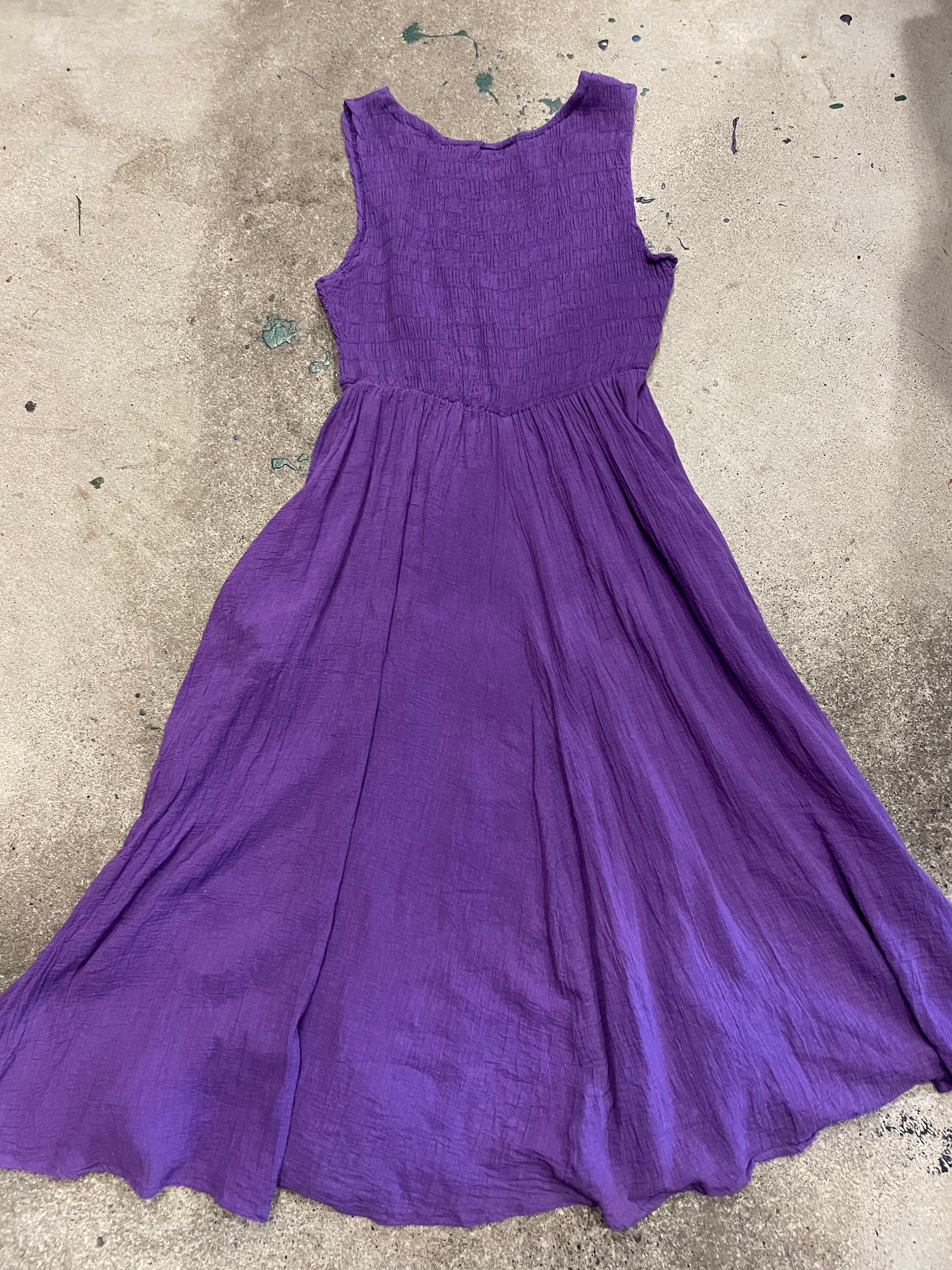 purple shirring dress
