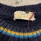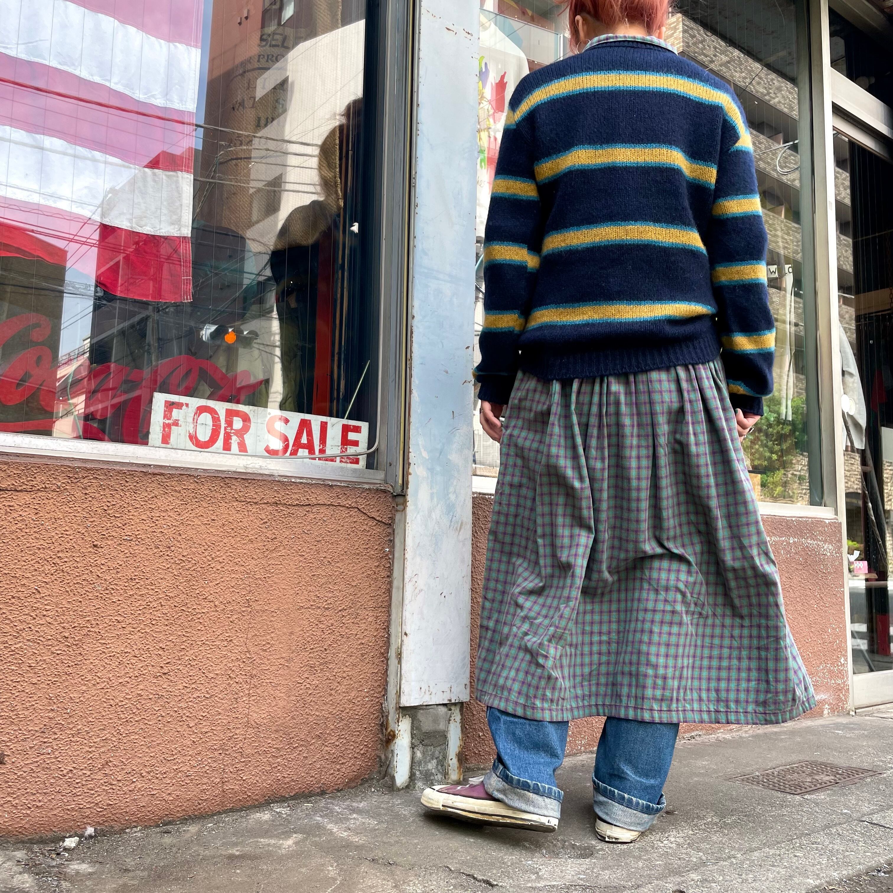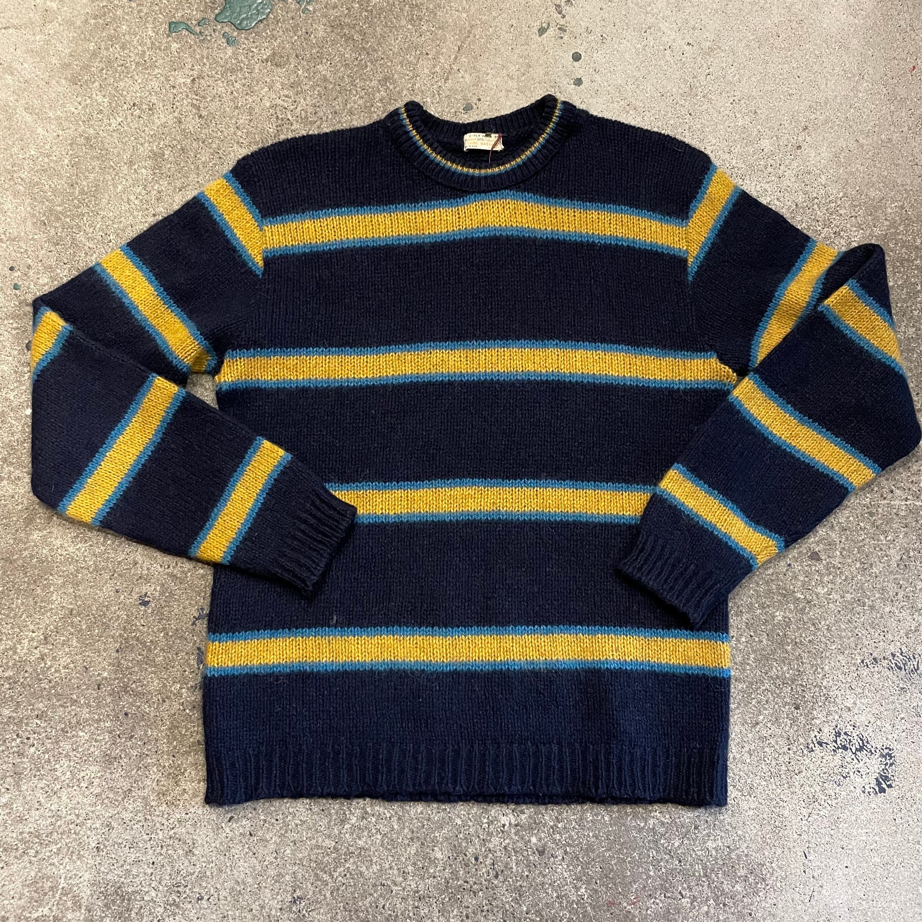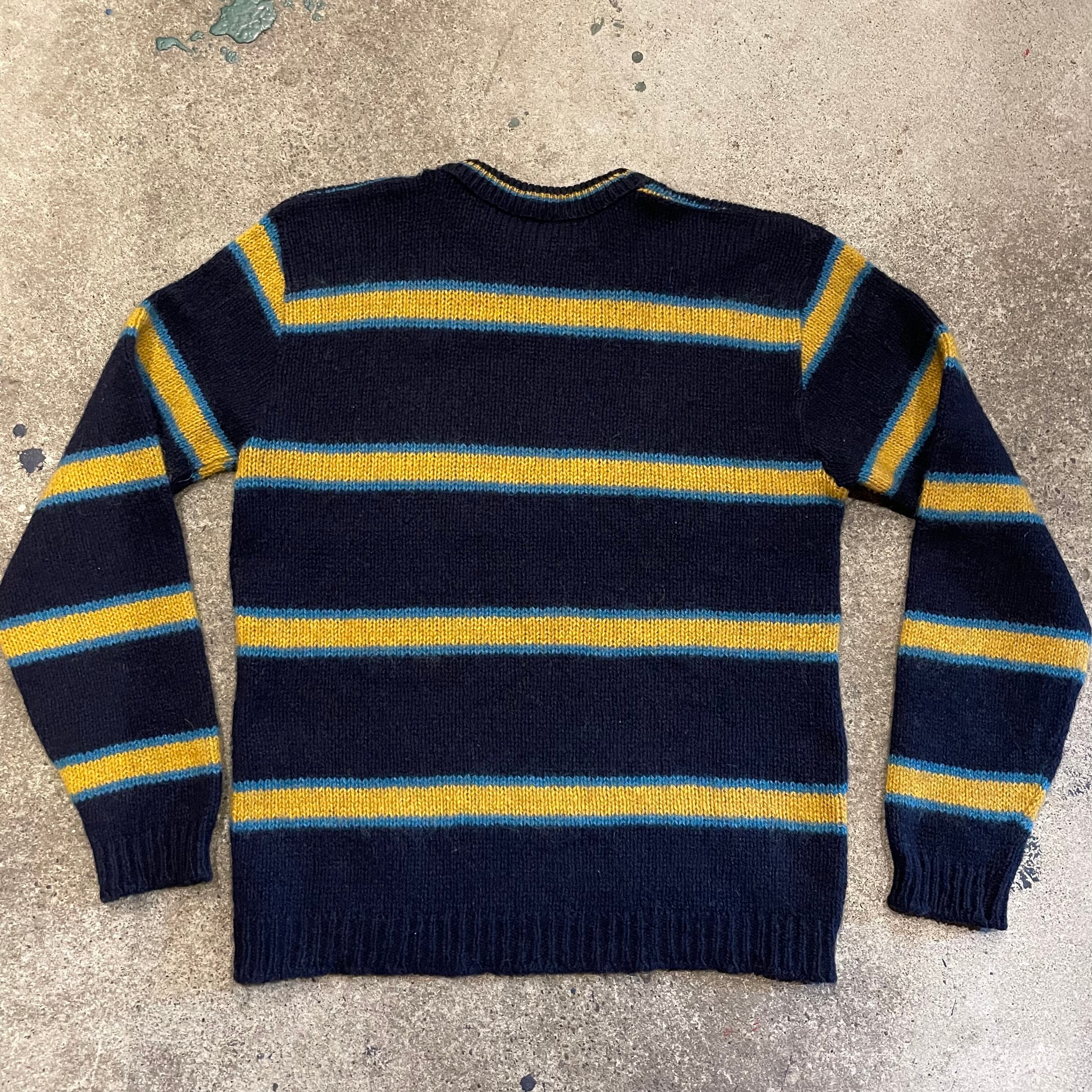 ネイビーに水色と黄色のボーダーが良い感じのセーターです。