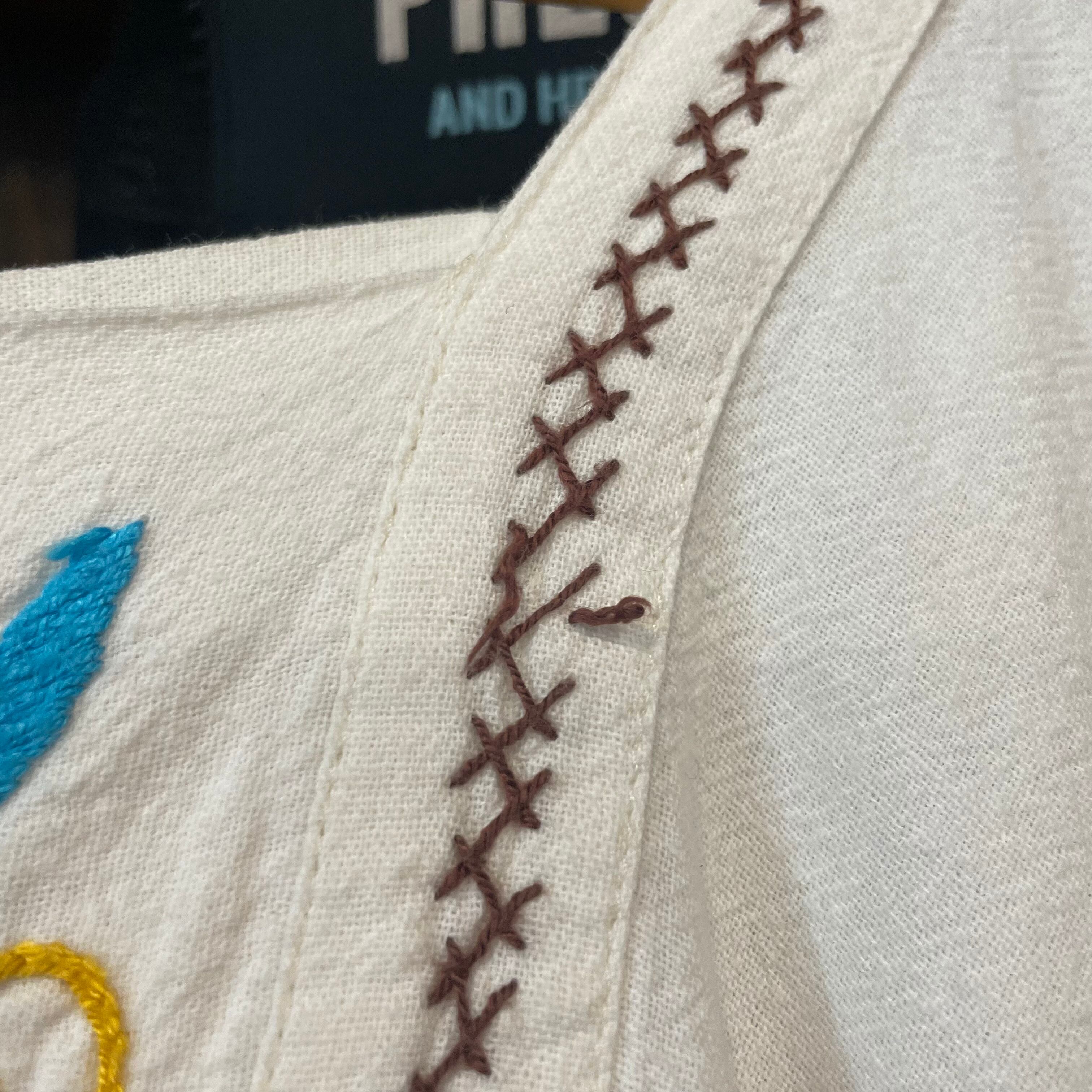 襟ぐりの刺繍にほつれがあります。