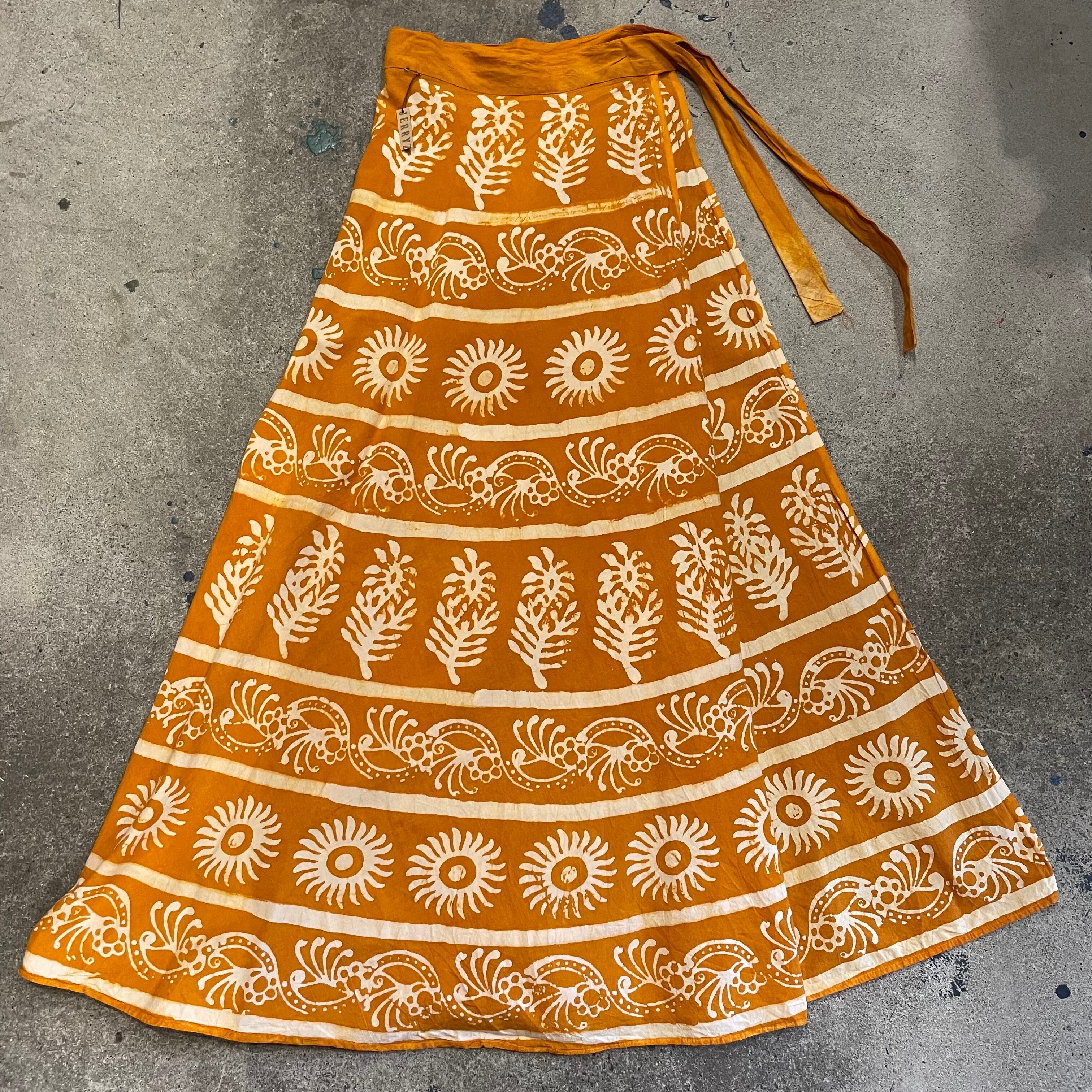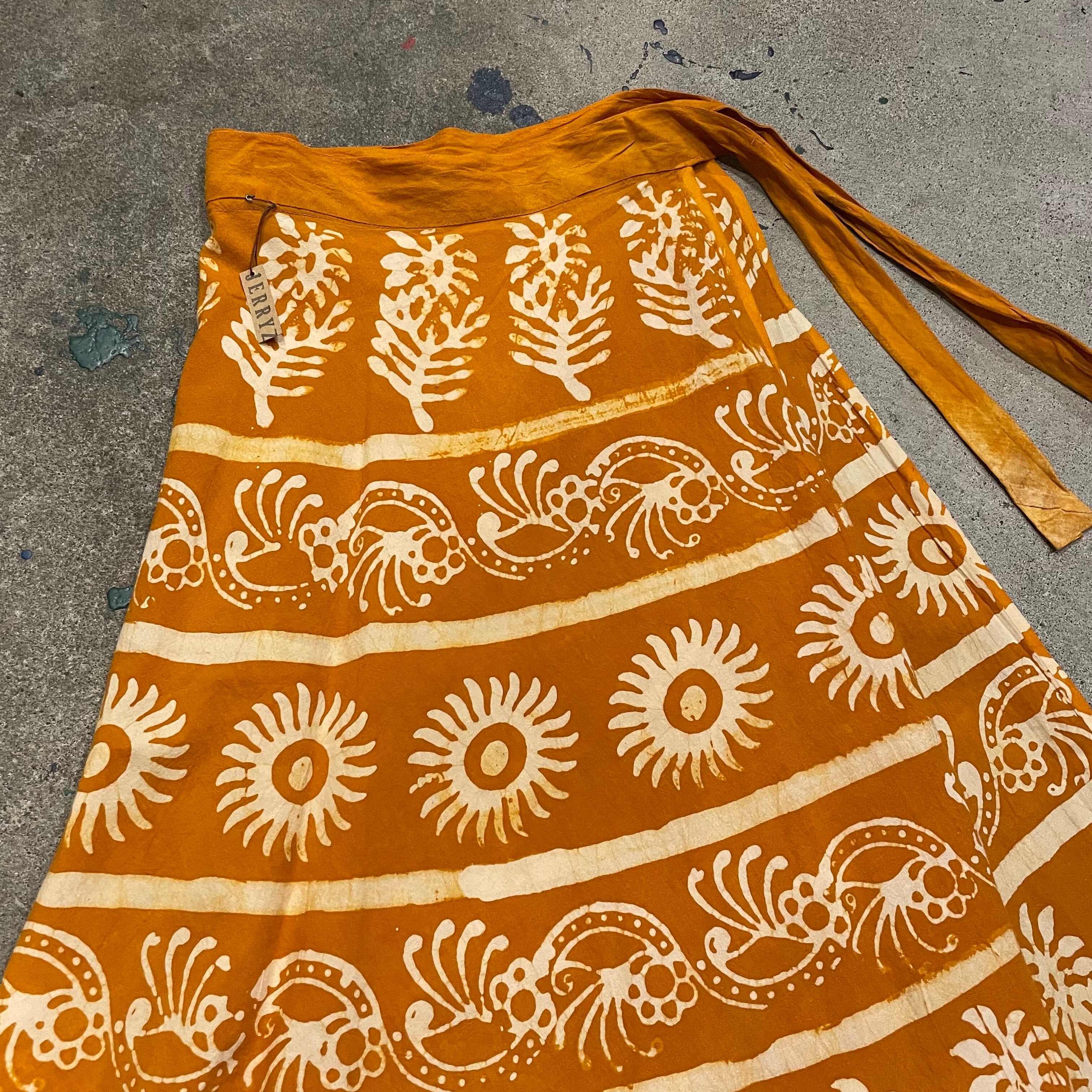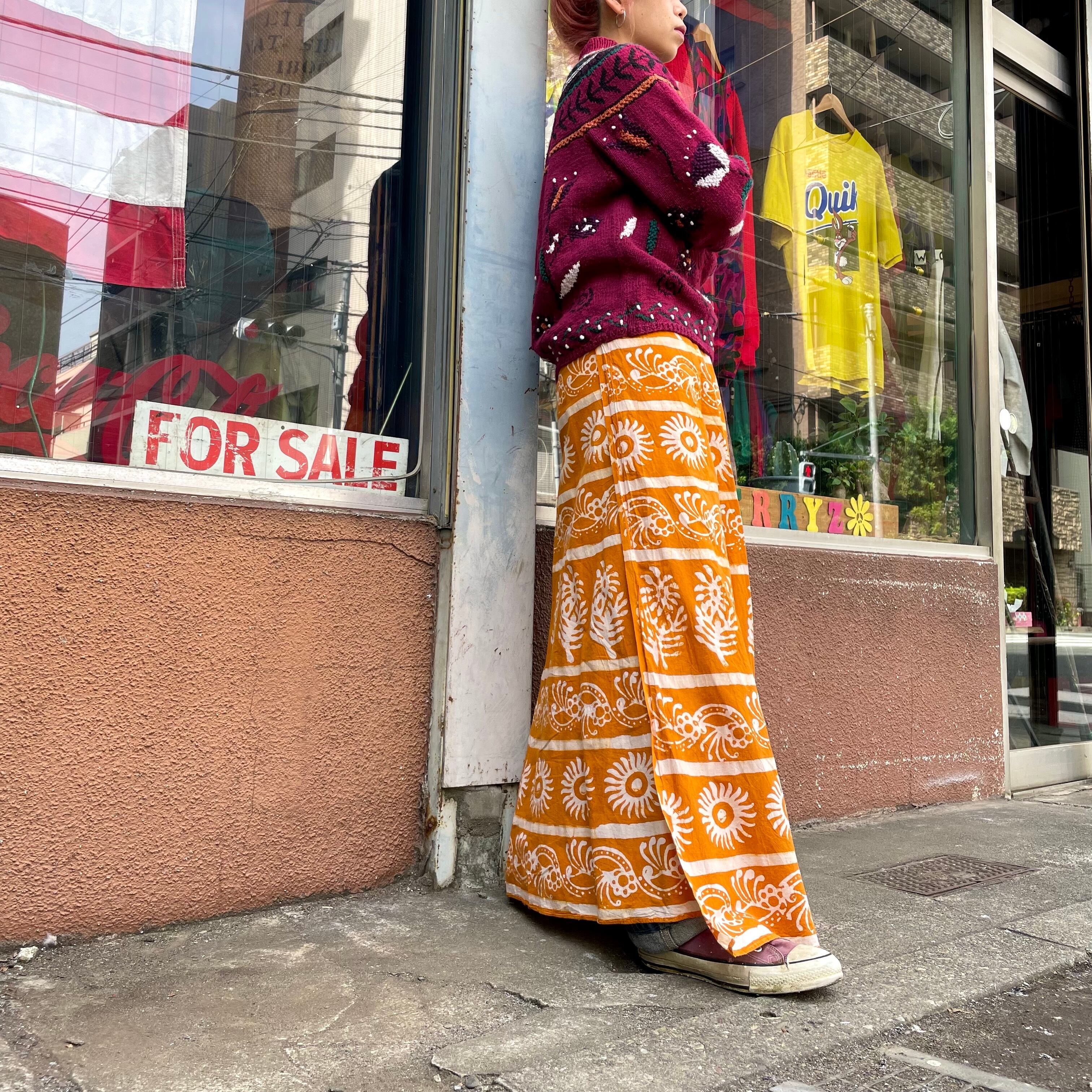 エスニックな雰囲気の総柄がかわいい巻きスカートです。