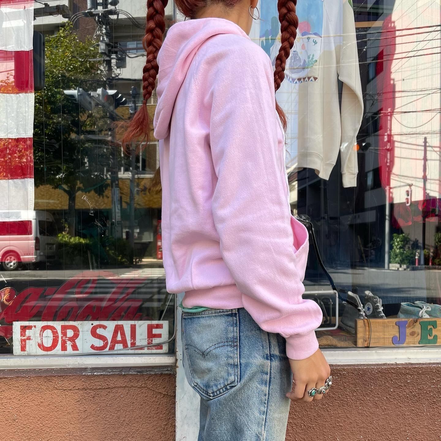 80年代USA製ヘインズのプルオーバーパーカーです。薄ピンクで薄手の素材感が重ね着にとても便利で、キャミソールやノースリーブのワンピースの下にとても使いやすいと思います。ラブリーなワンピースもカジュアルに着やすい雰囲気になりますね!
