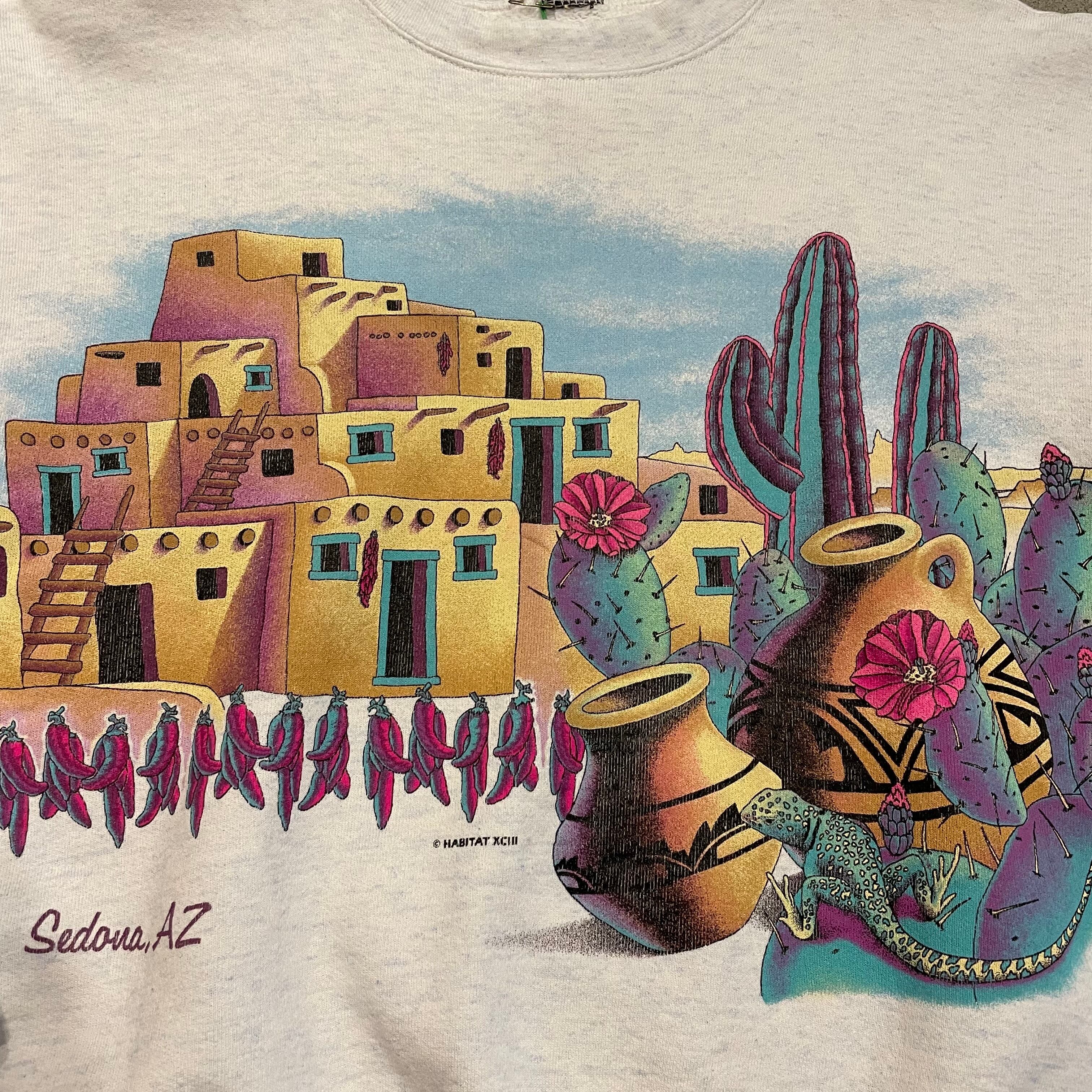 色味もきれいでサボテン好きにはたまらない一着です。アリゾナ州セドナのお土産品として売られていたものだと思いますが、こんな素敵な風景で育つとそれは絵にしたくなるよなと思ってしまいます。