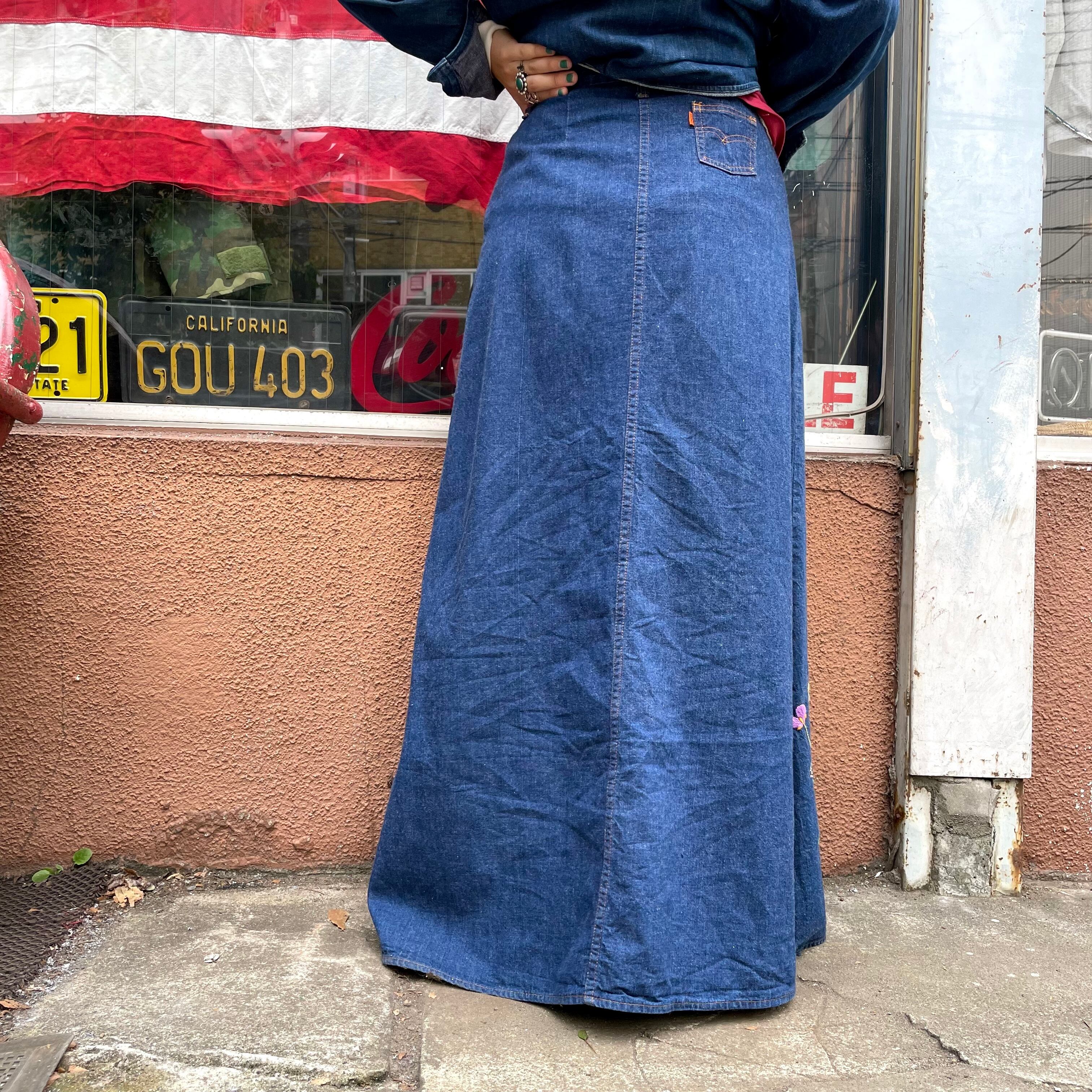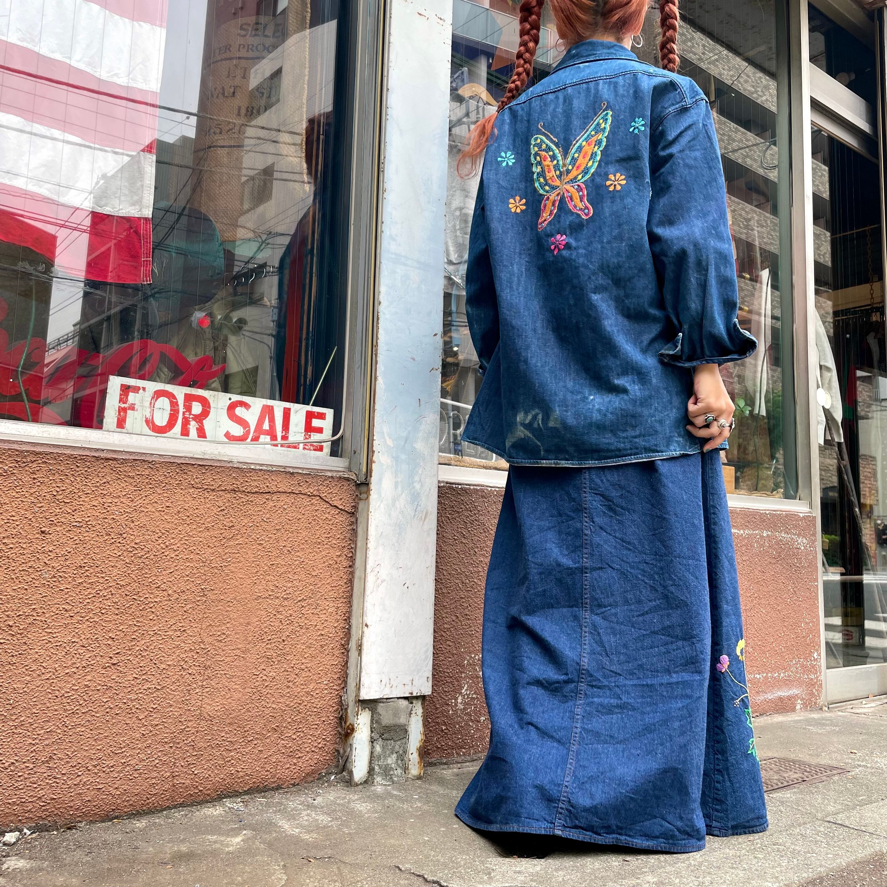 デニムですのでトップスを選ばずかなり着回しが効くと思いますのでおすすめの一着です。