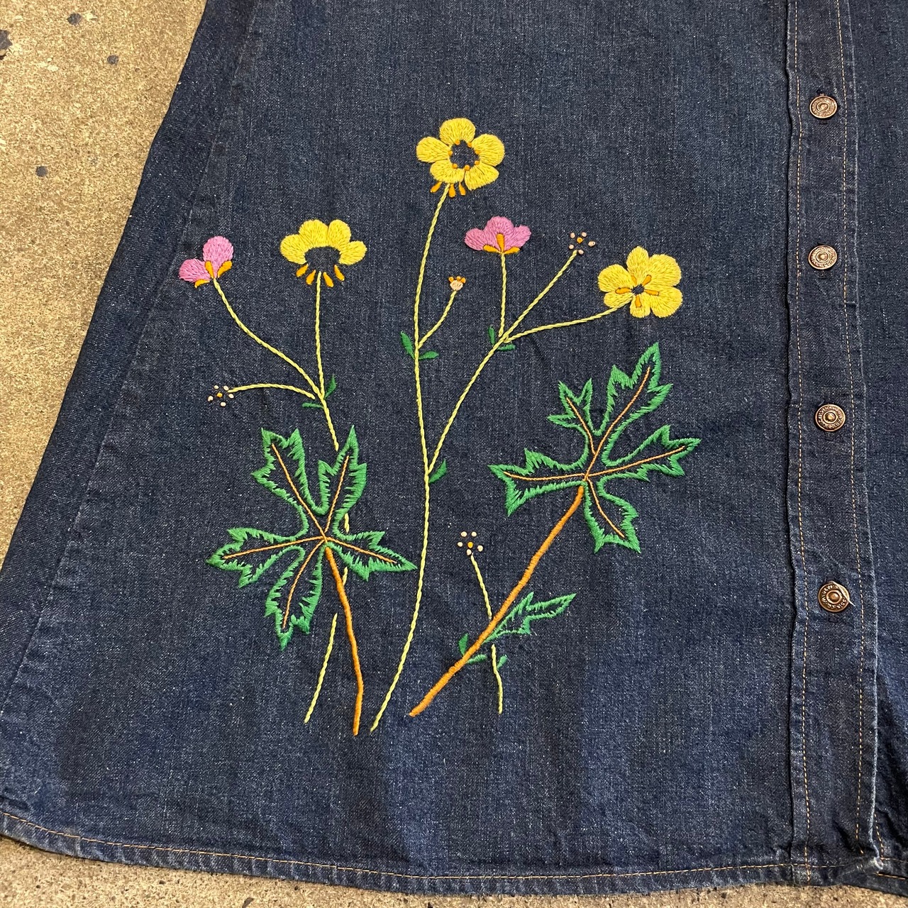 前の所有者が施したと思われるお花の手刺繍が繊細でとてもかわいいです。