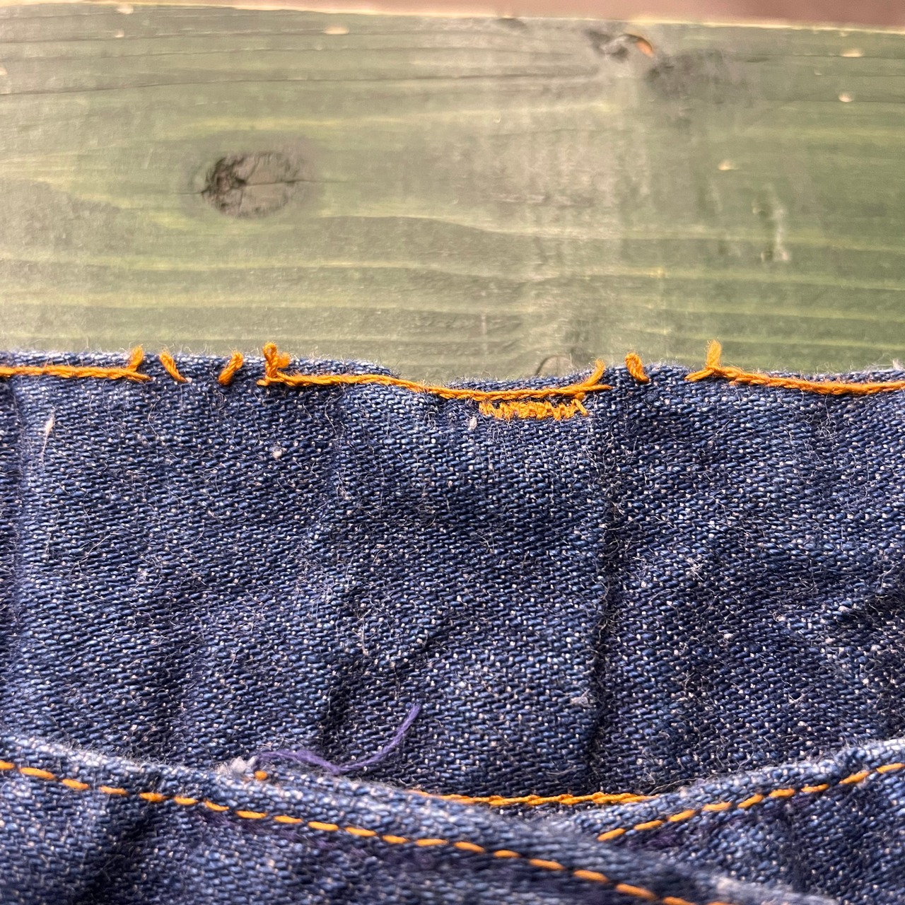 縫い目のほつれ、左後ろにウエストから裾まで一本線が入っています。