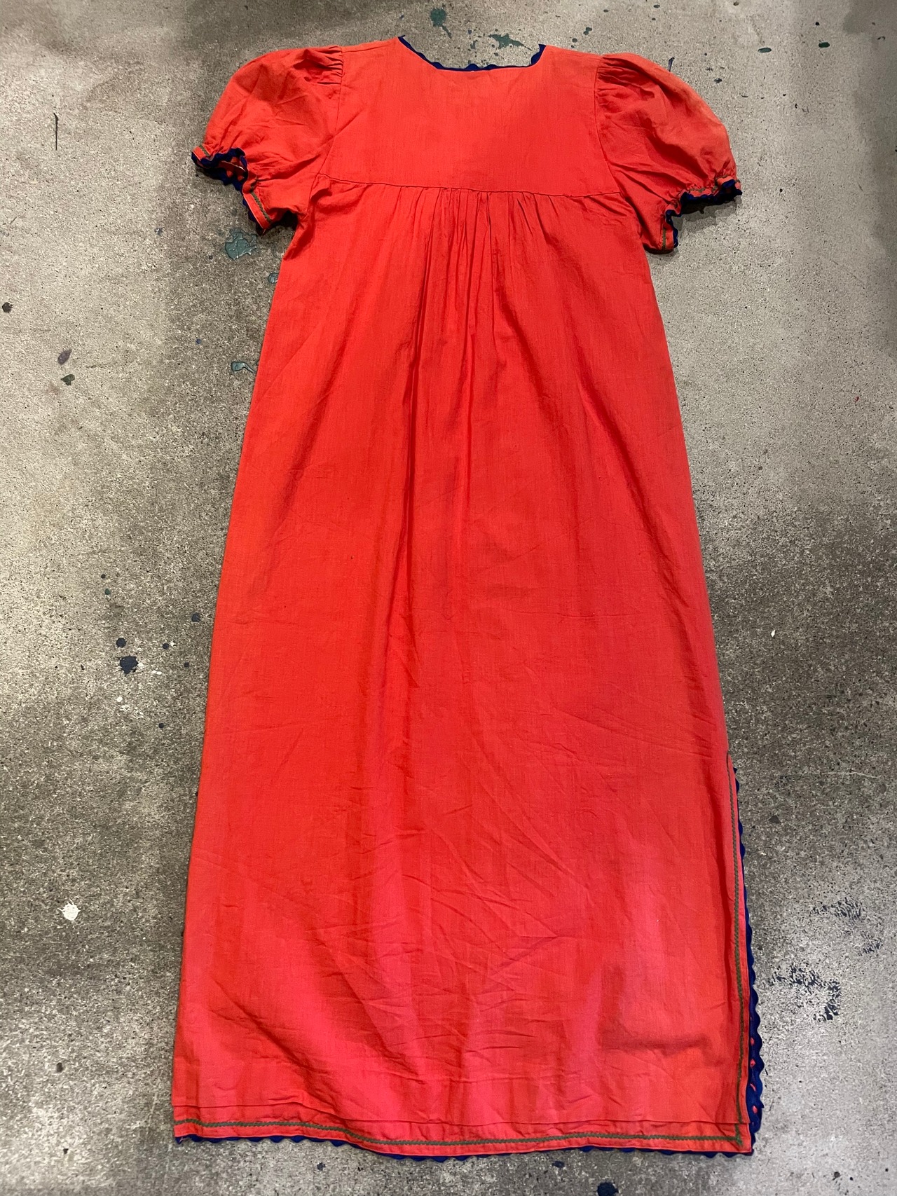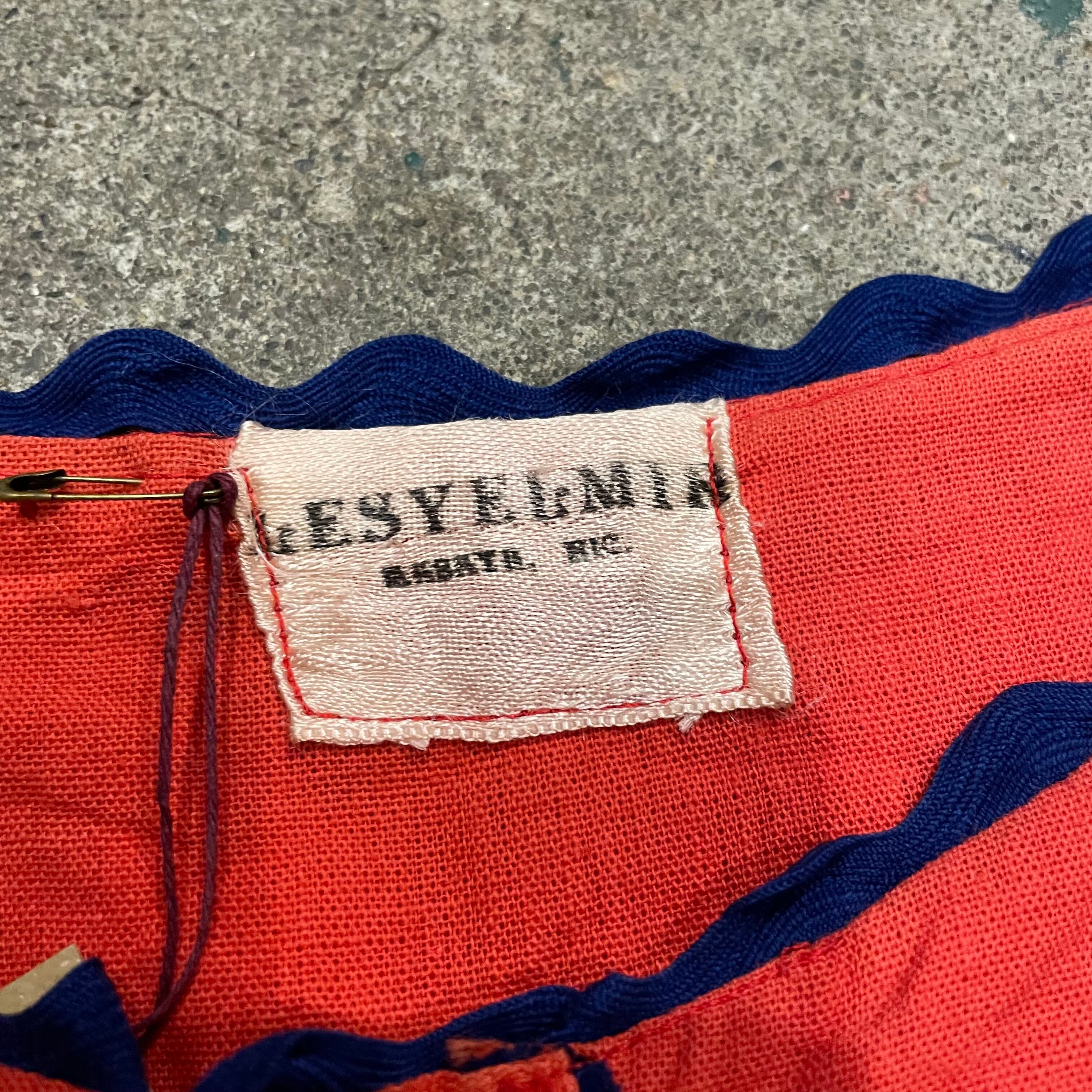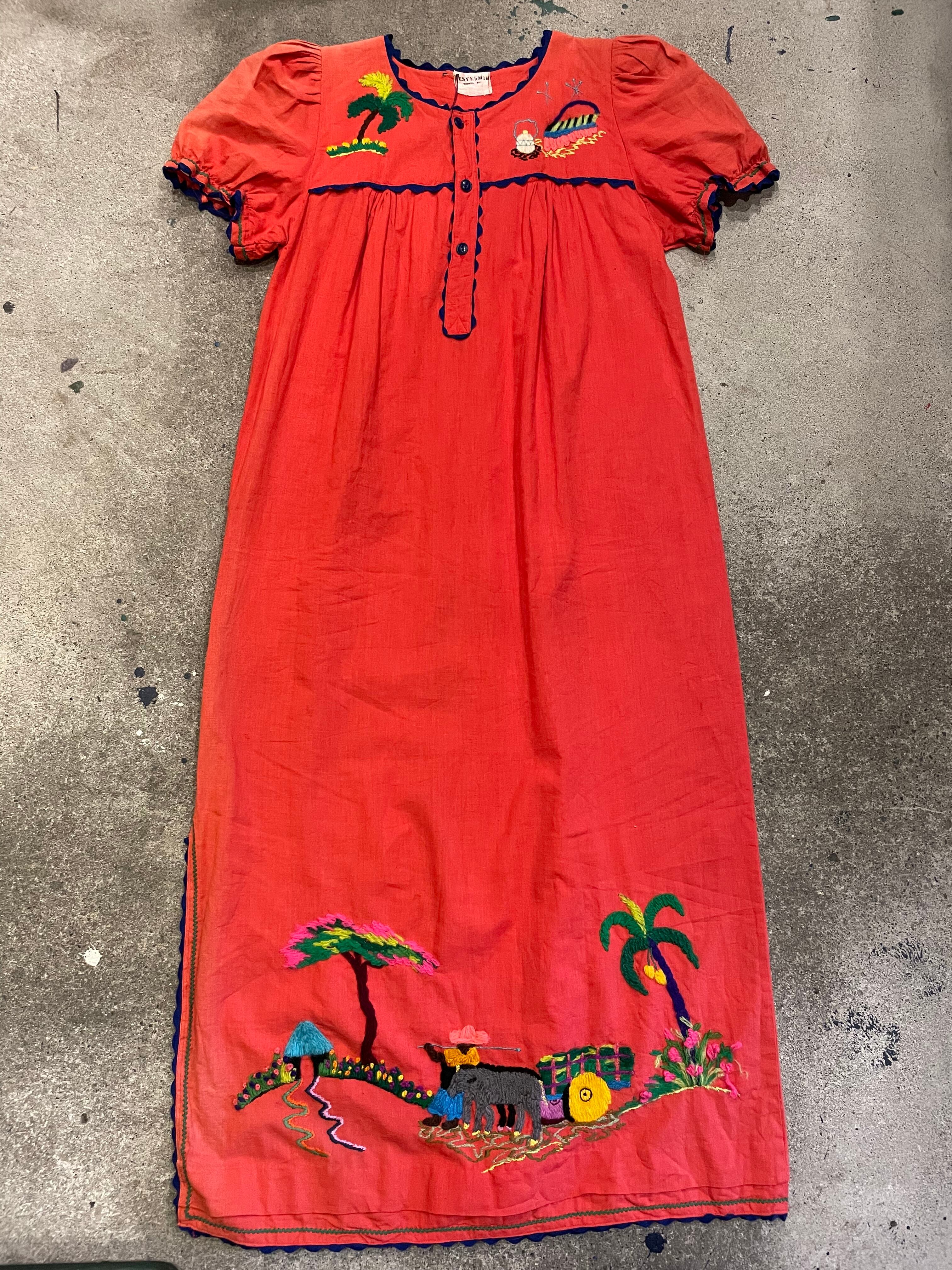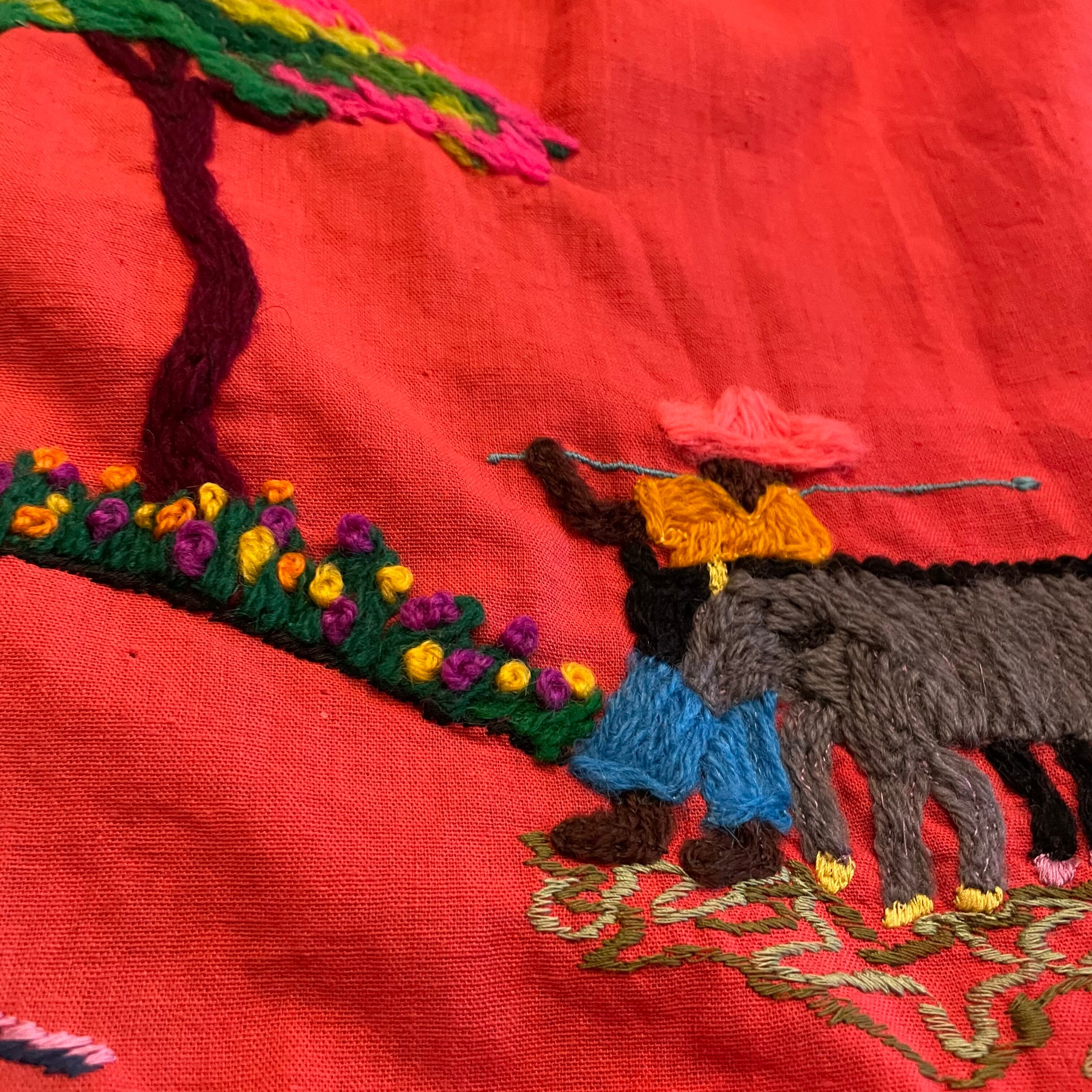 赤の色褪せたような絶妙な色合いも良い雰囲気です。毛糸をミシンでたたいた立体的な刺繍と、普通の糸で手刺繍された2種類の組み合わせで裾と胸上のみの主張の激しくない感じも良いですね!