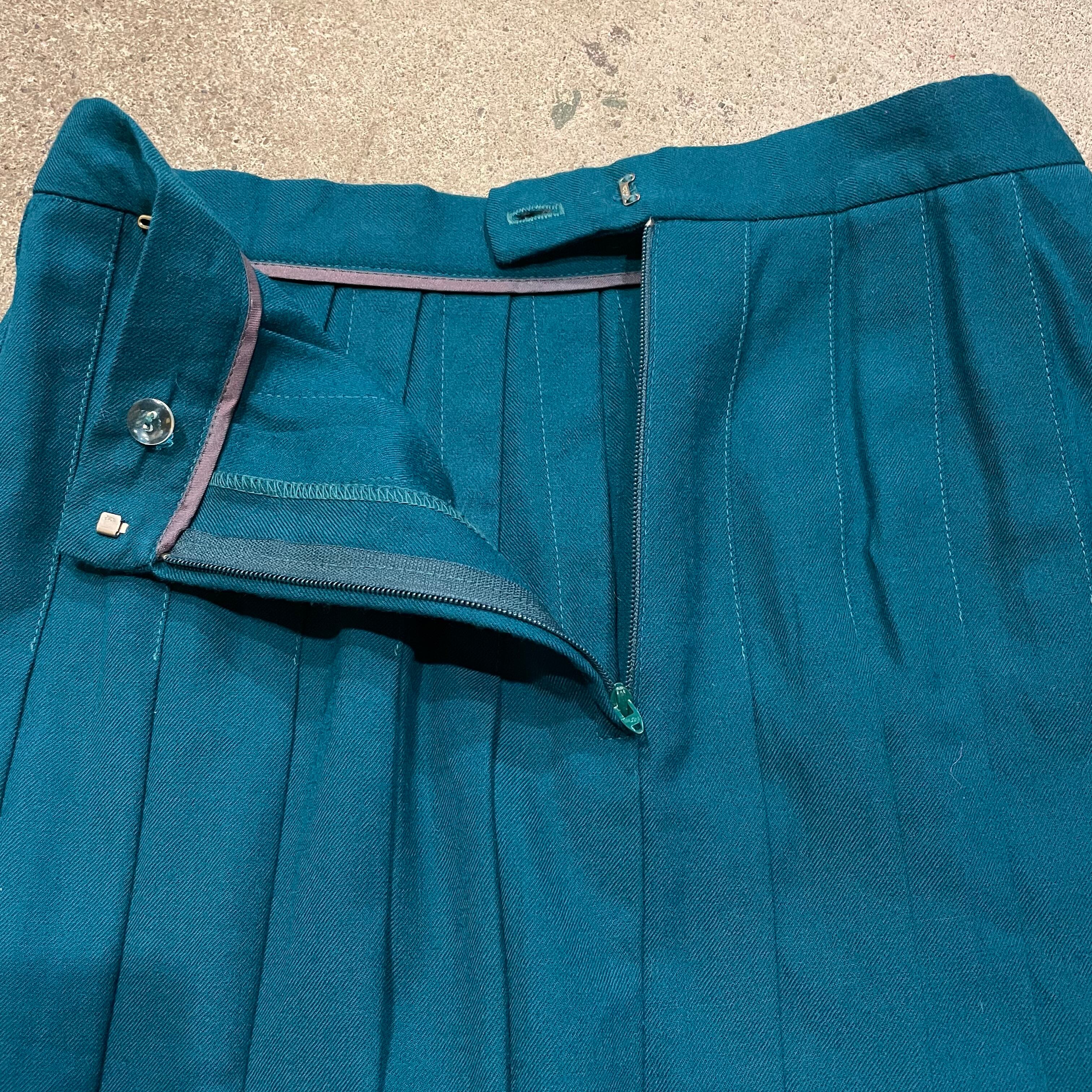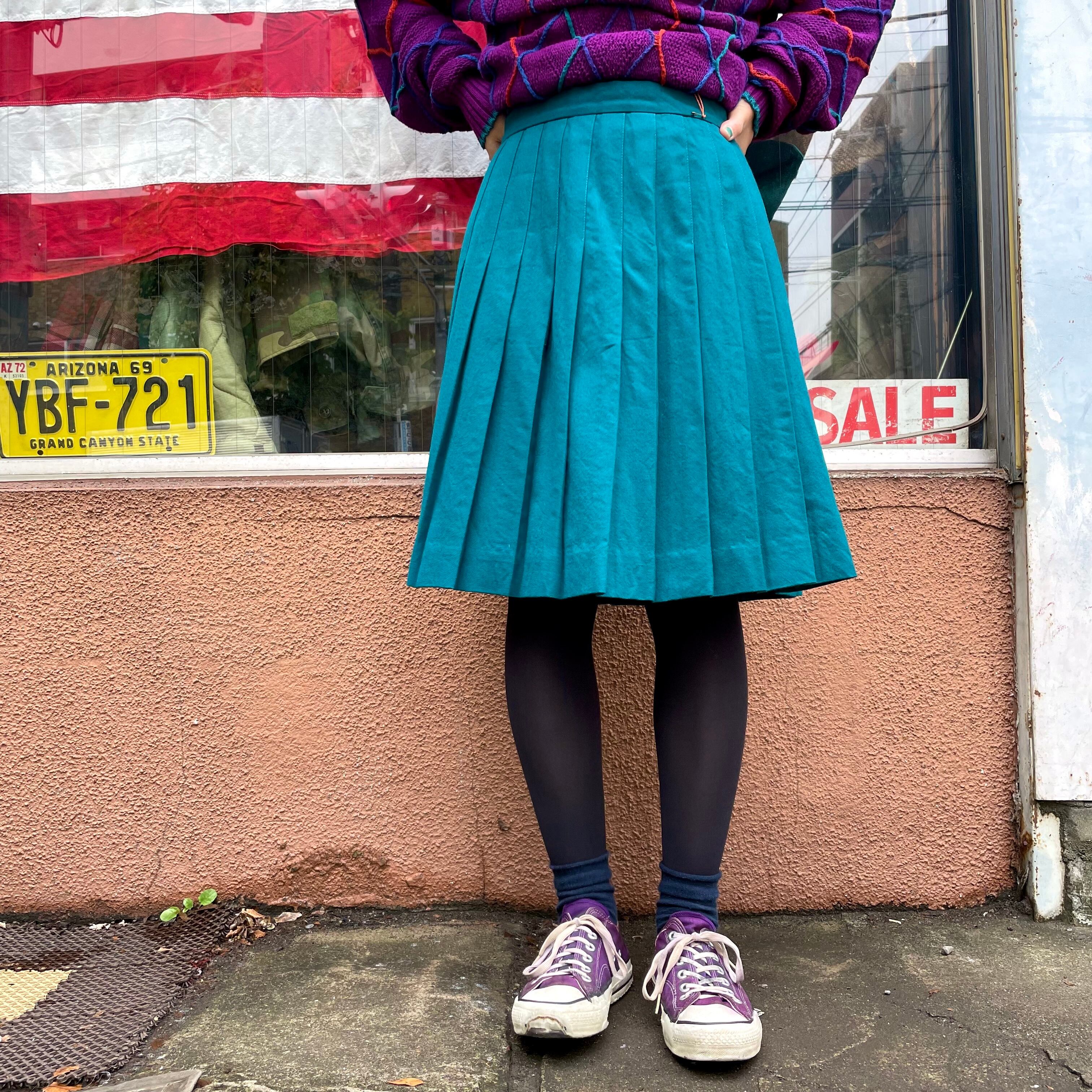 色がきれいなウール素材のプリーツスカートです。ウールですので暖かいですし、丈の長さやボリューム感も程良くて履きやすい一枚です。