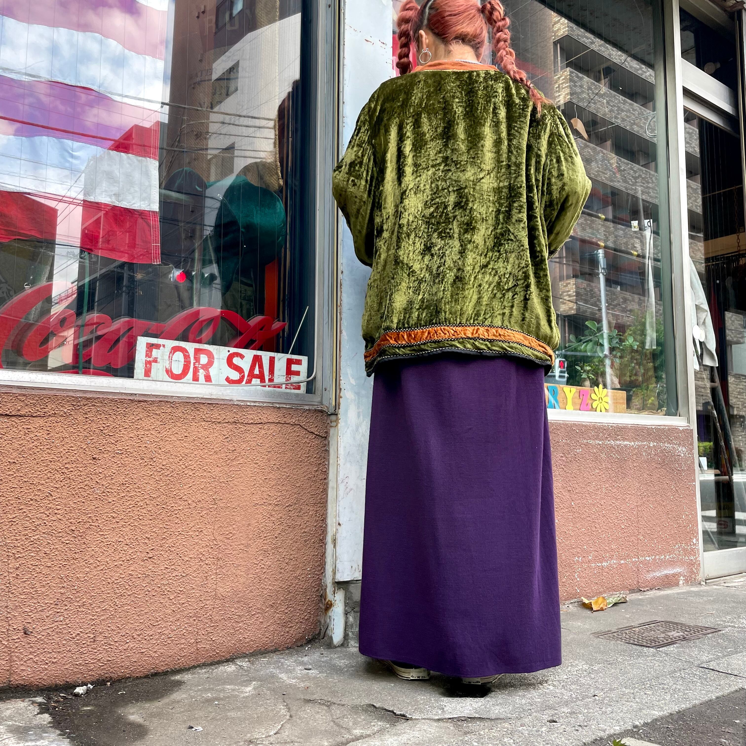 左側にのみスリットがあり、広がりも少なく、ウエストはゴムで楽ちんで暖かいので何かと使いやすいと思います。