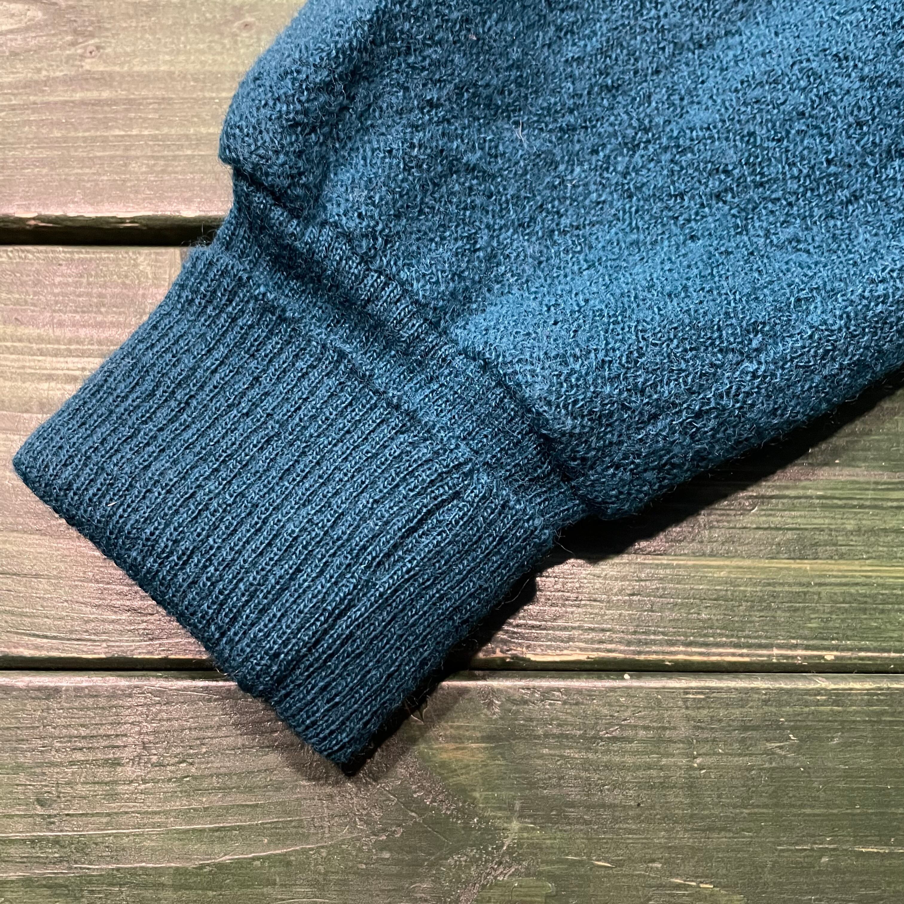 なんといってもこの青緑の色味がとてもきれいで良い雰囲気です。大きめのTシャツの上にゆるっと羽織ったりしてもかわいいですね。