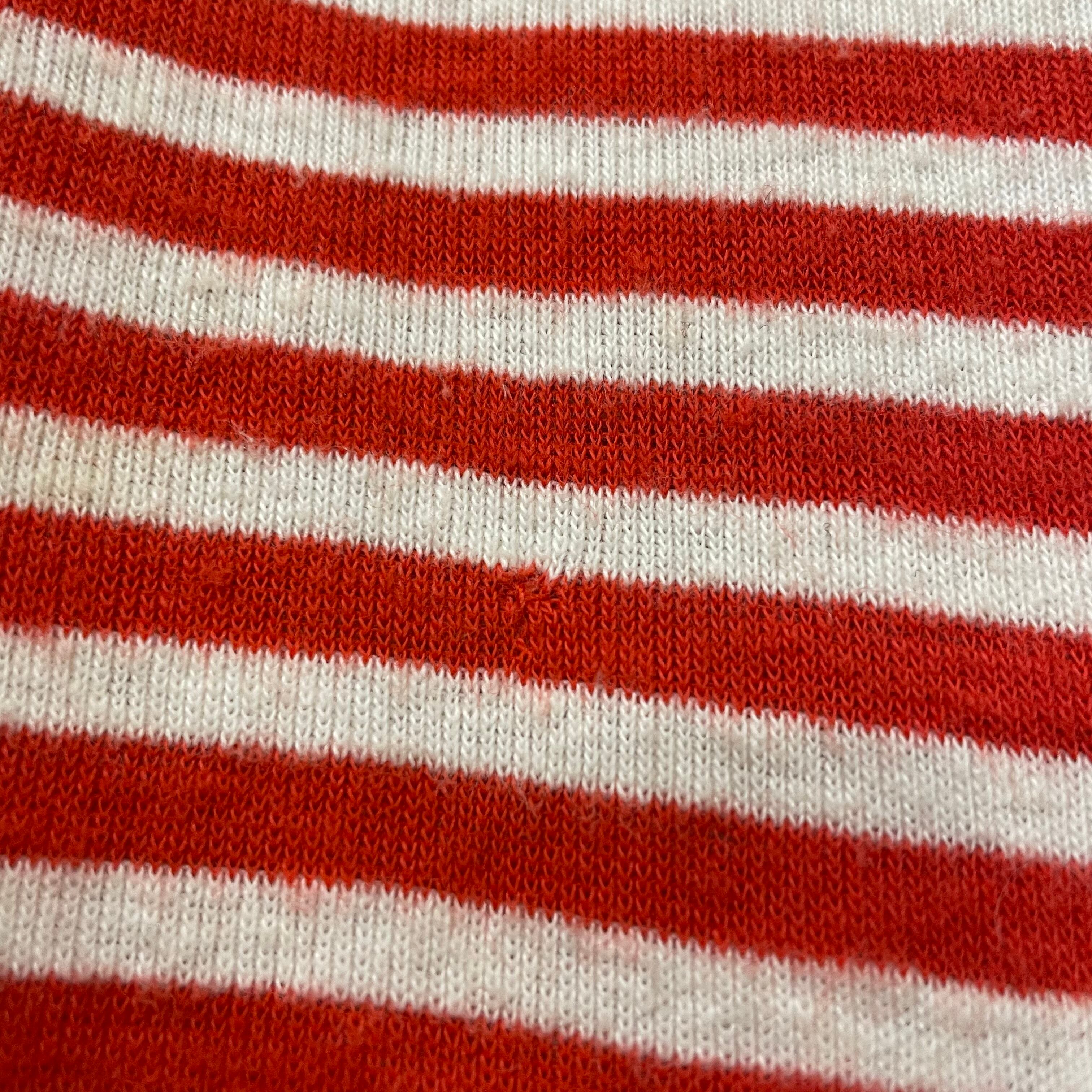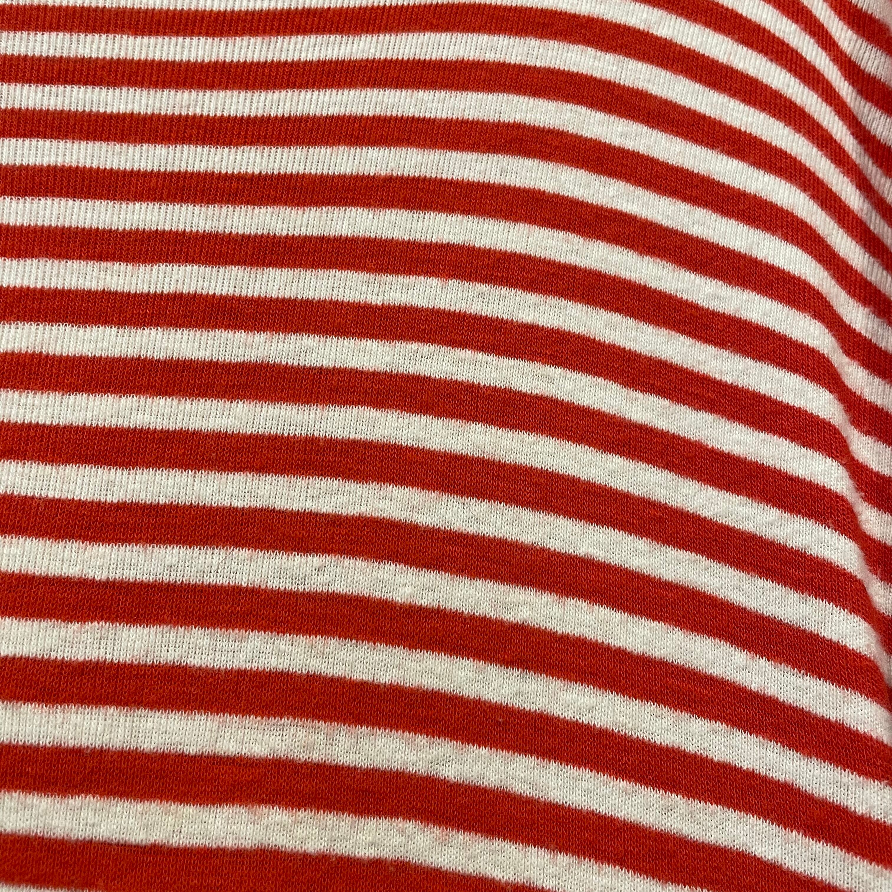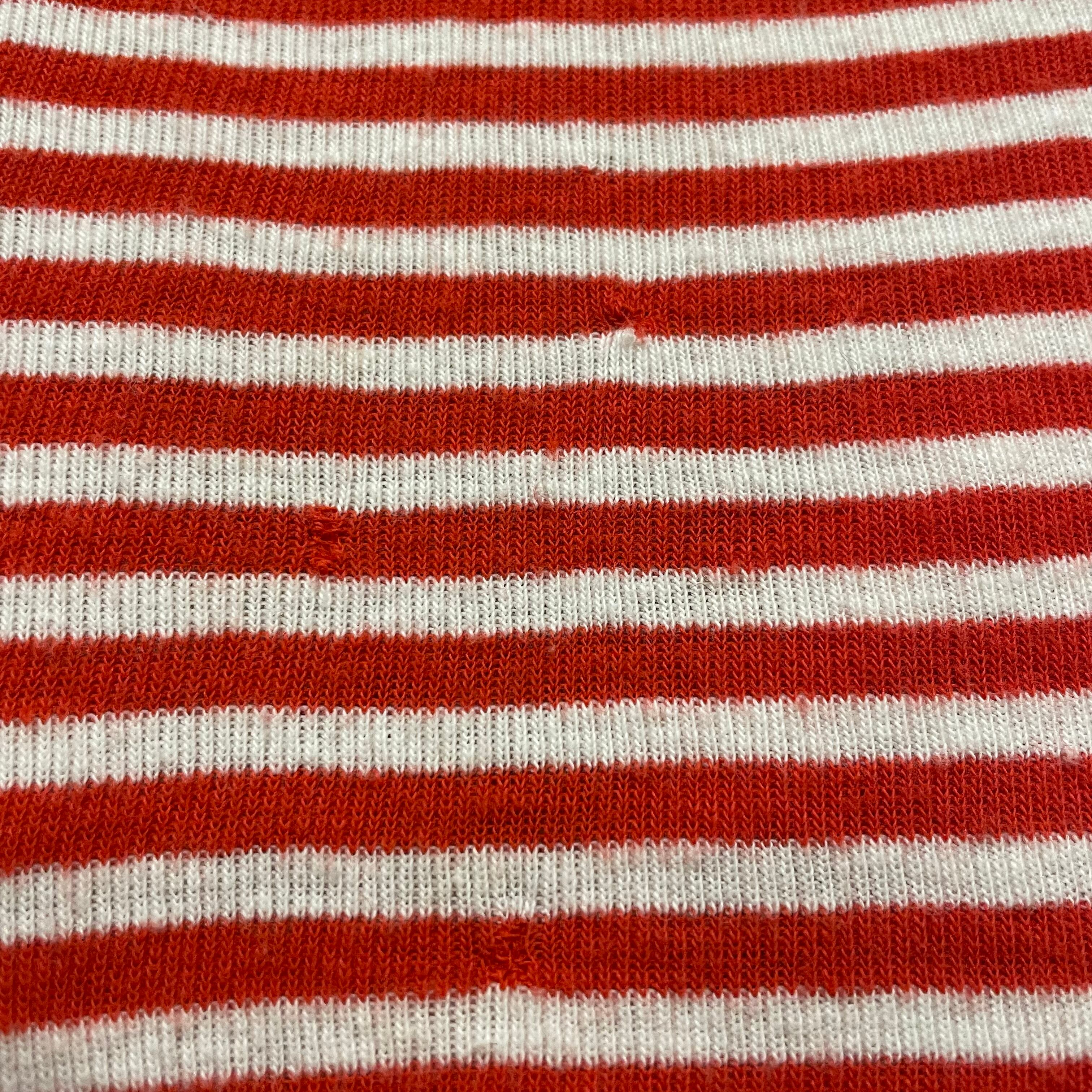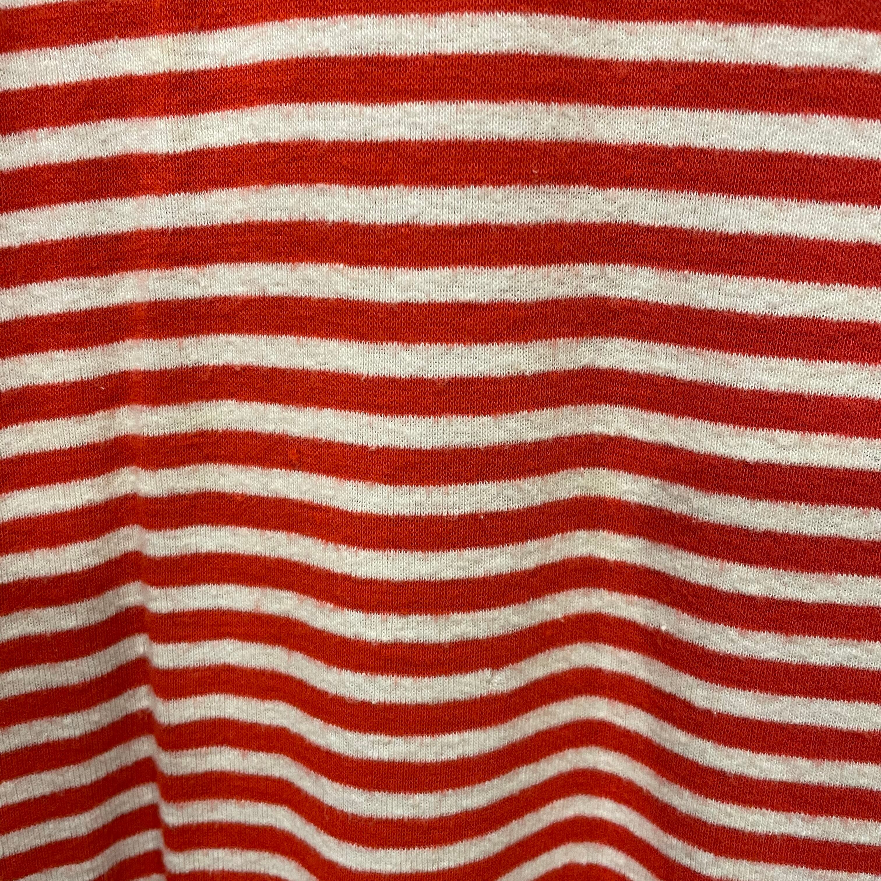 赤白の細かいボーダーがかわいいリンガーTシャツワンピースです。
