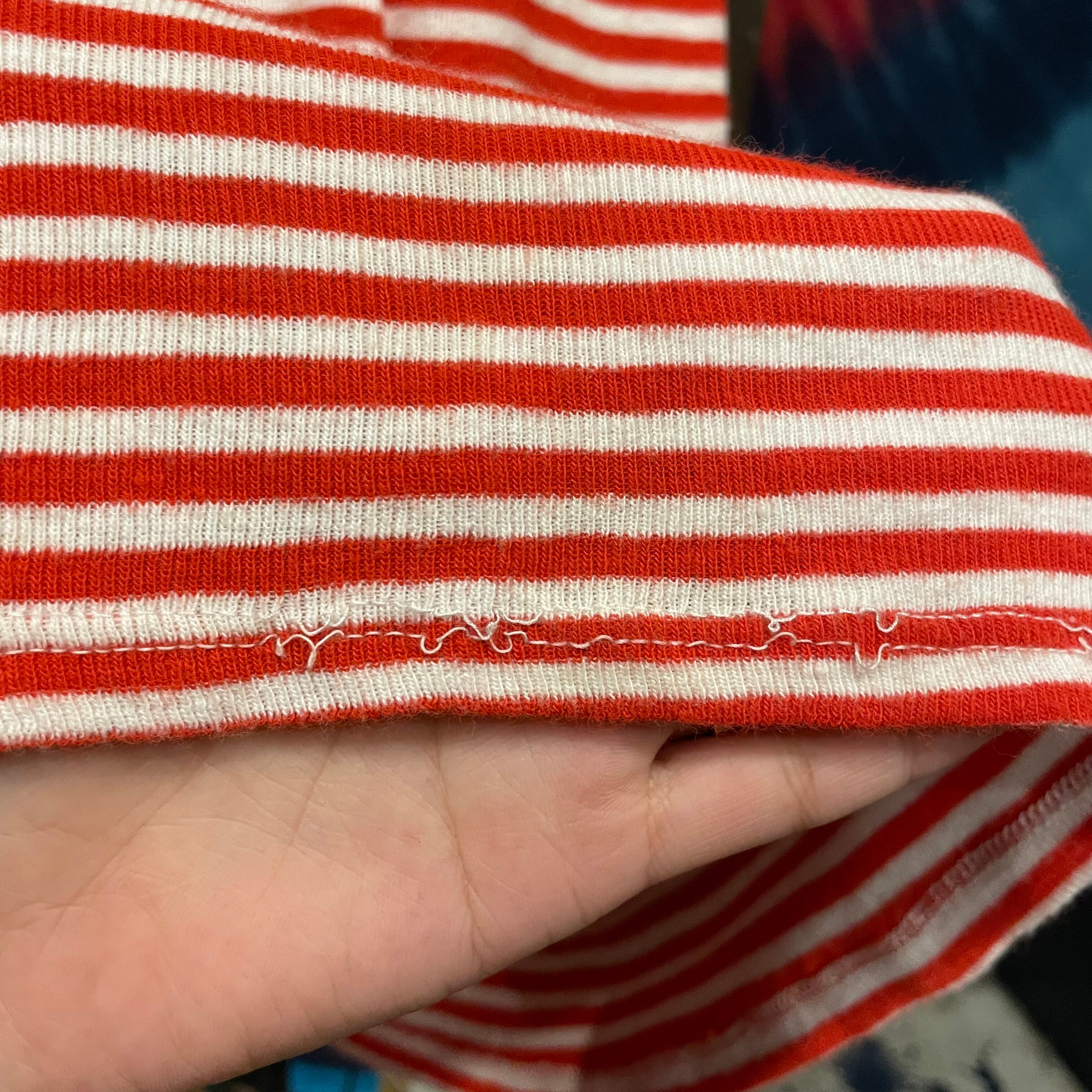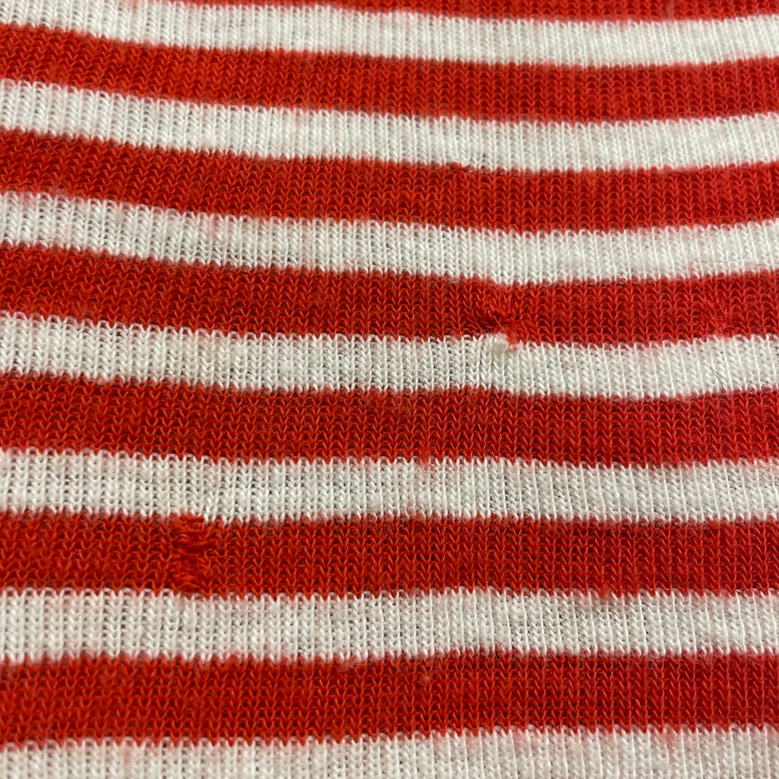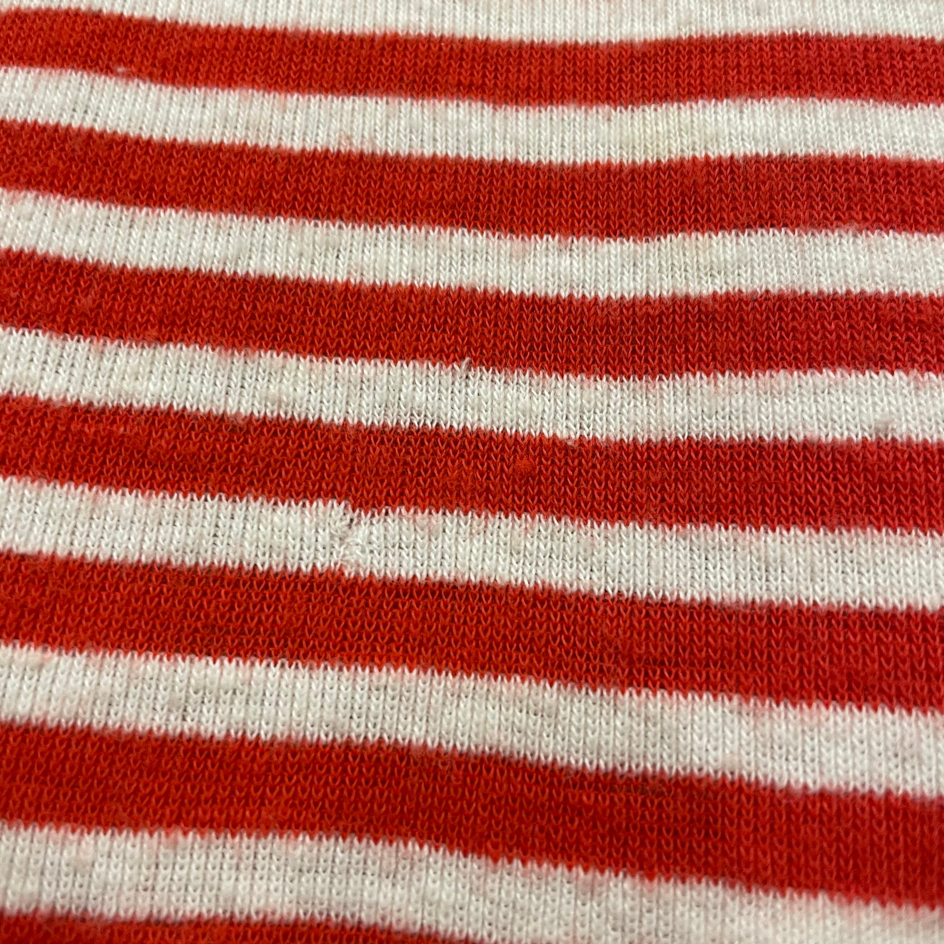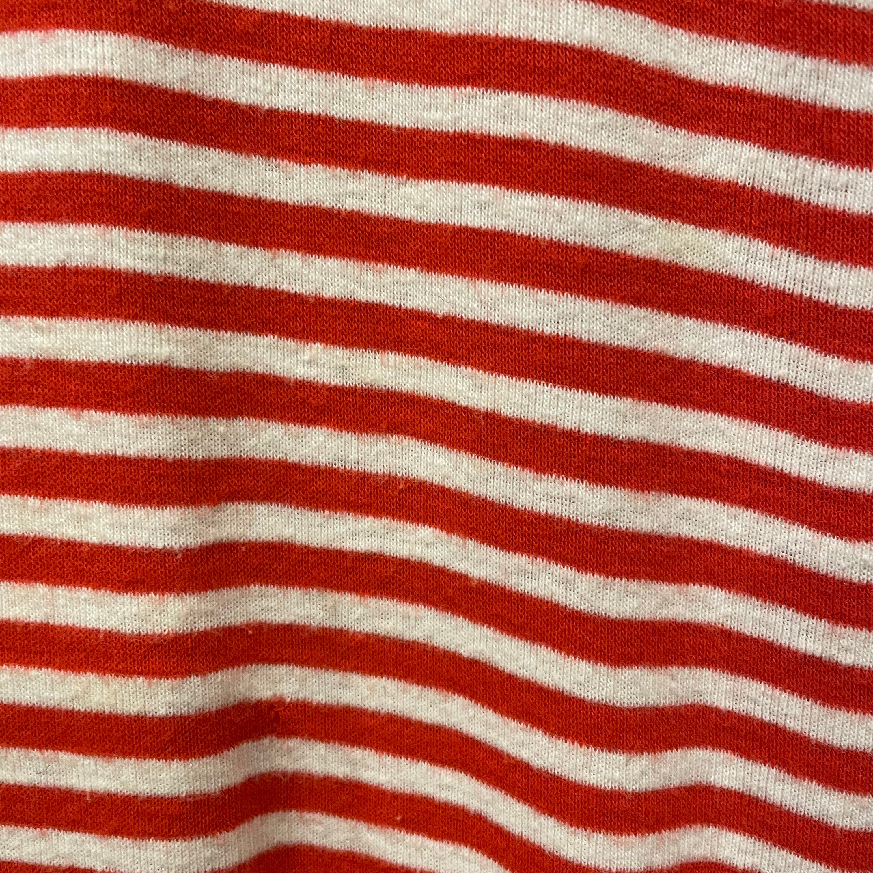 赤白の細かいボーダーがかわいいリンガーTシャツワンピースです。