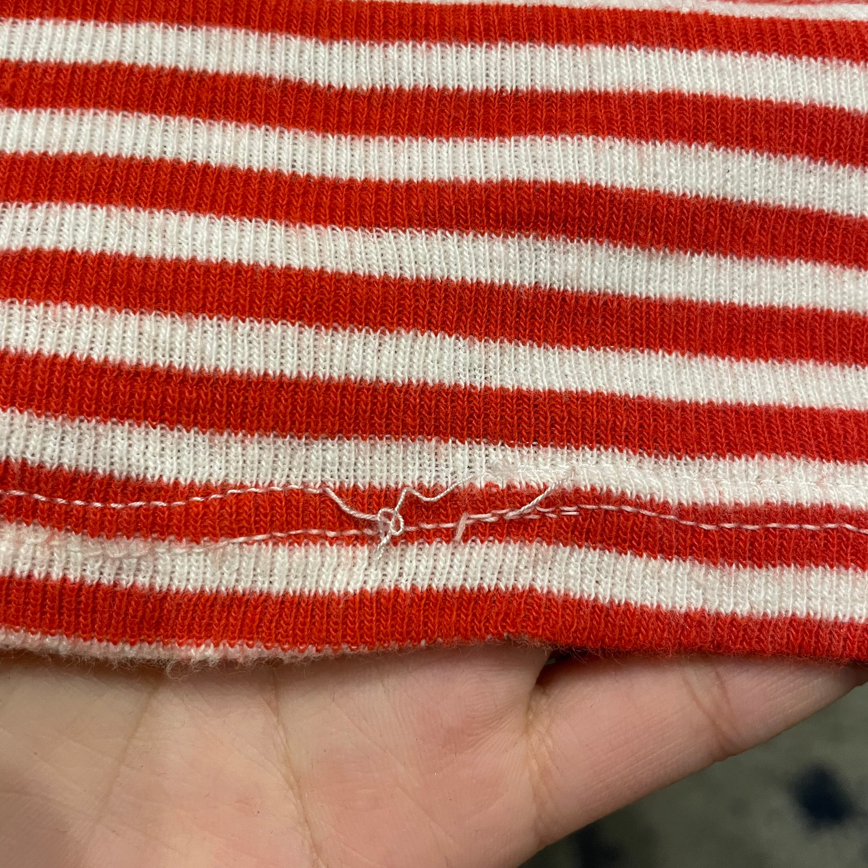 全体的な毛羽立ち、ピンホールのリペア多数、キズ数カ所、裾の縫い目のほつれ等かなりダメージのある商品ですので古着にご理解のある方のご購入をお願い致します。