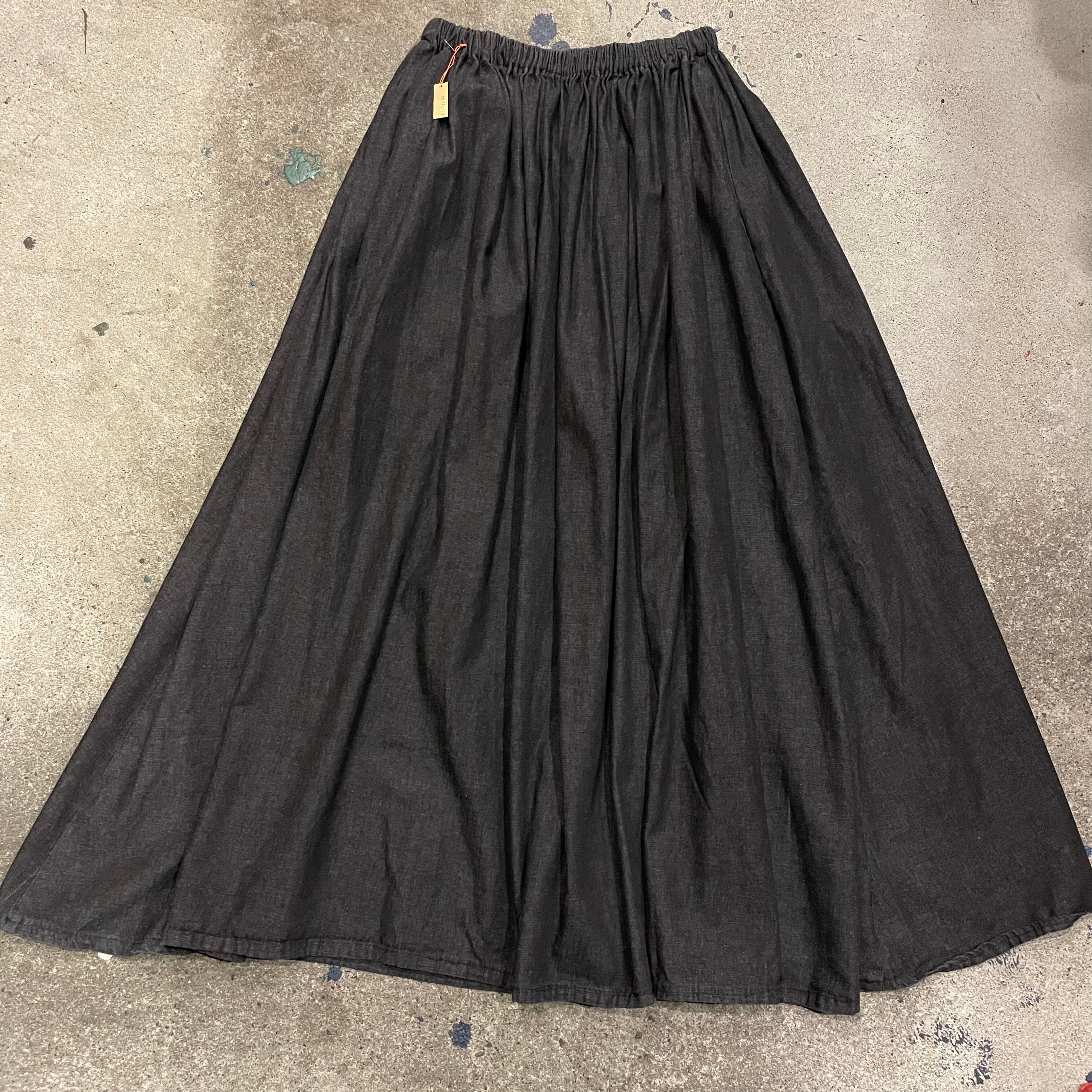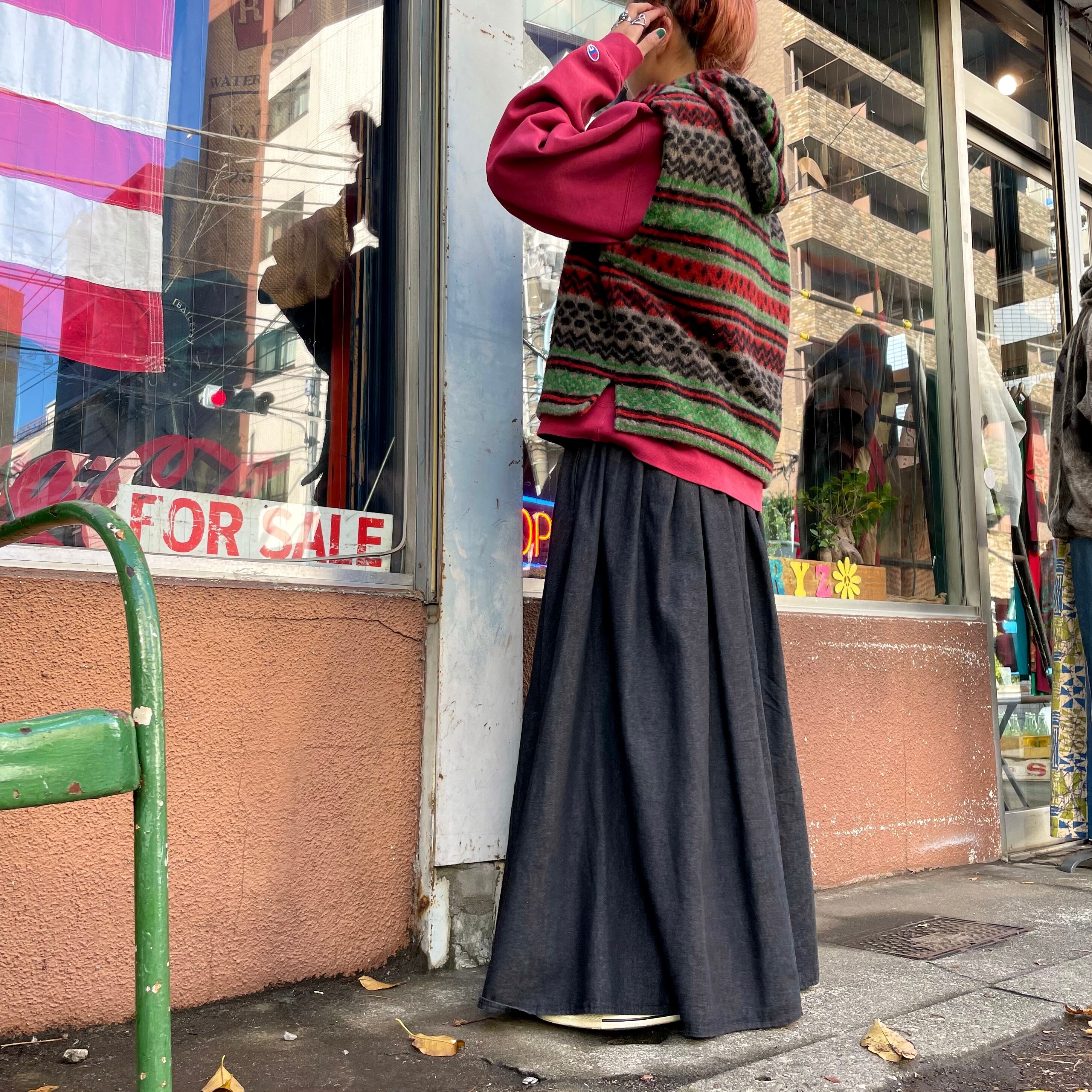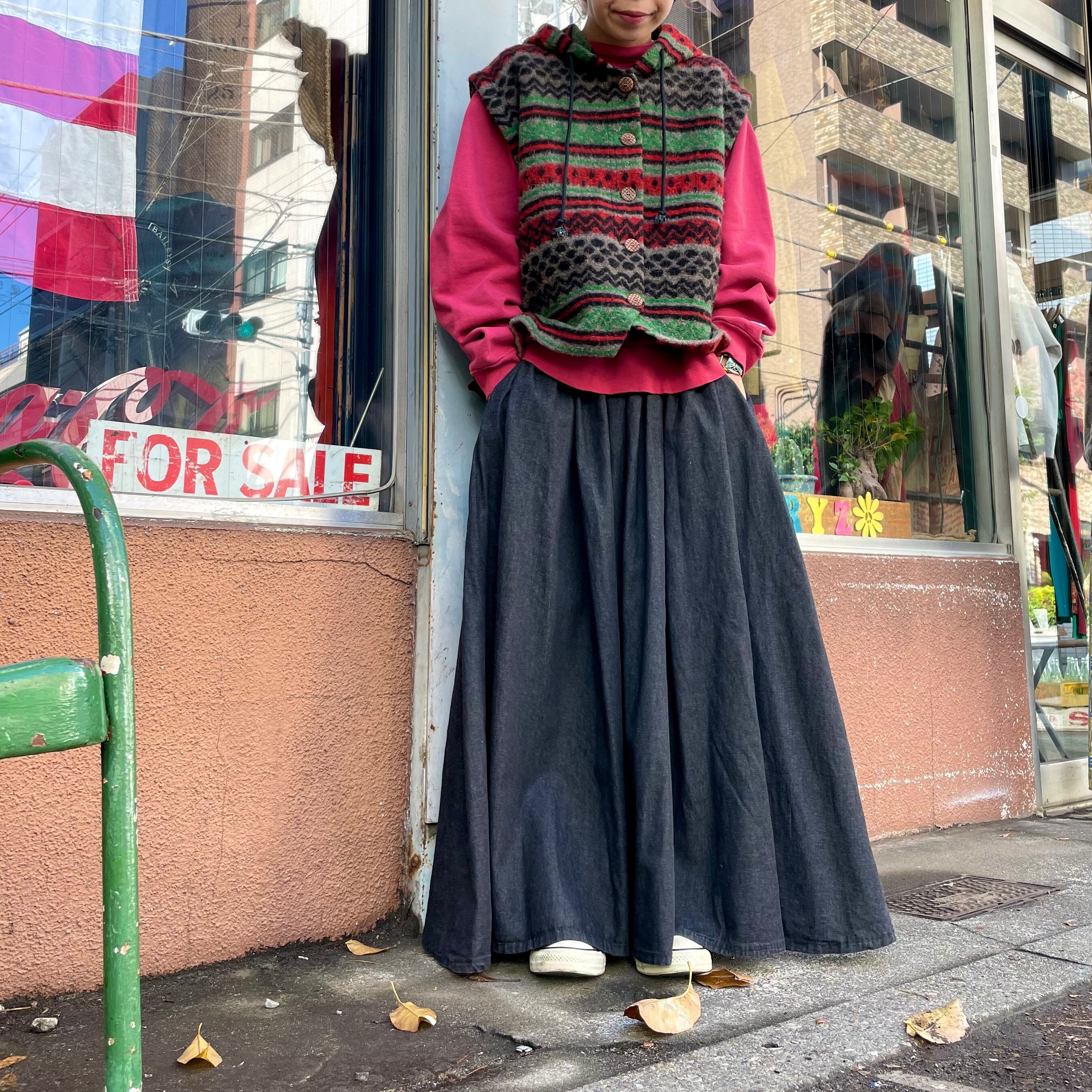 おそらくハンドメイドのもので、ウエストがゴムで楽ちんですし両サイドにポケットがあるのもポイントです。とてもシンプルでかなり使い勝手の良い一着だと思います。