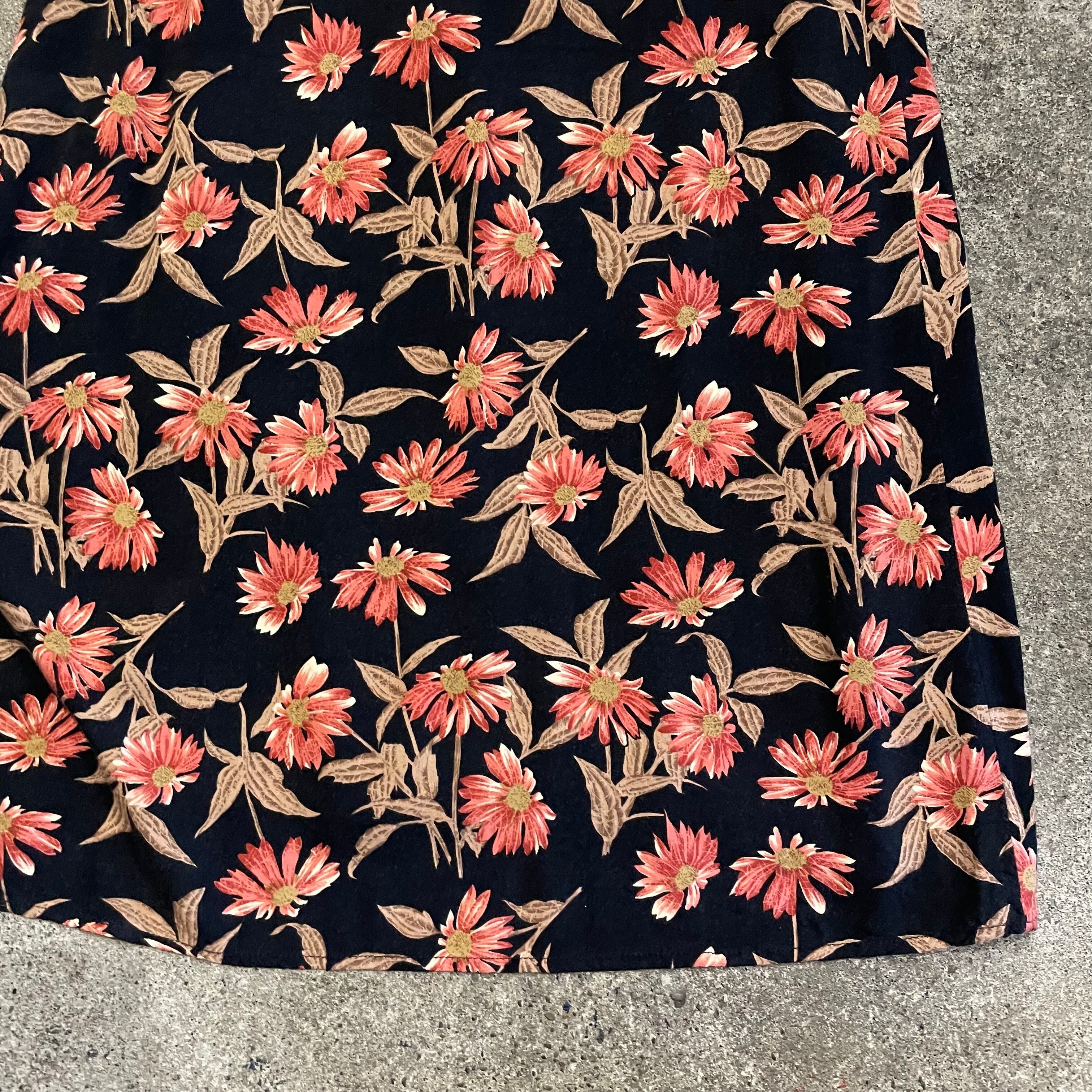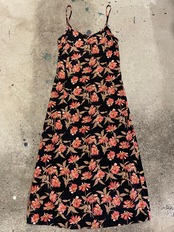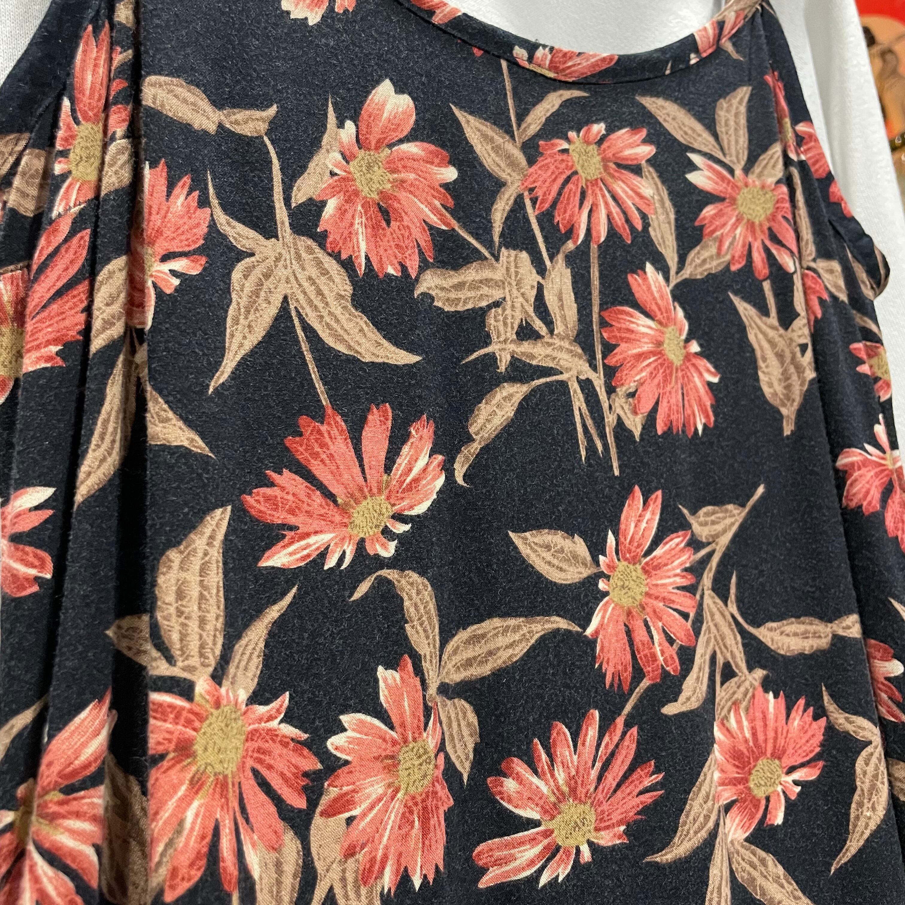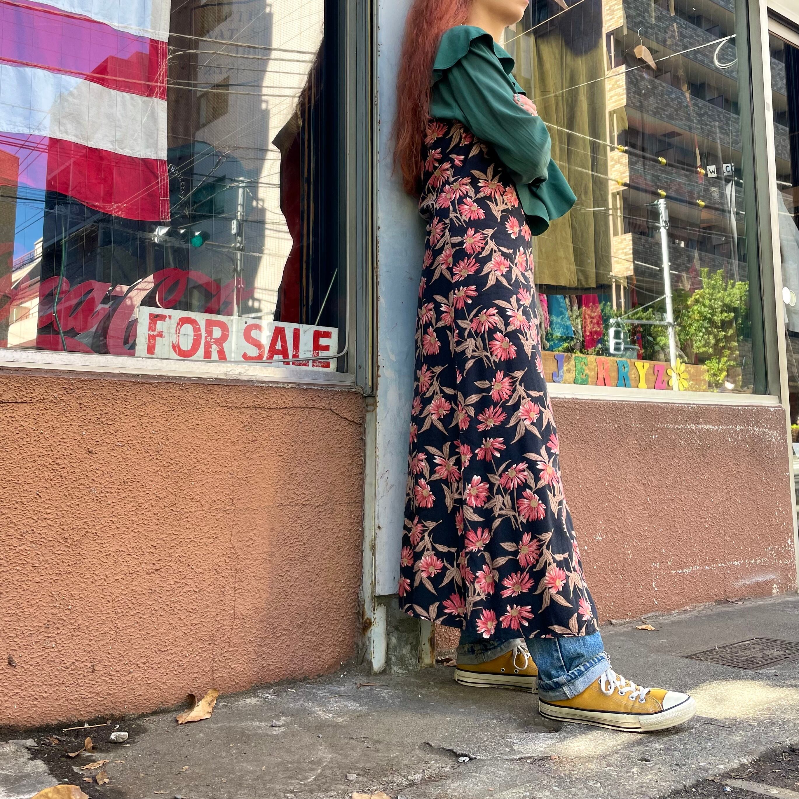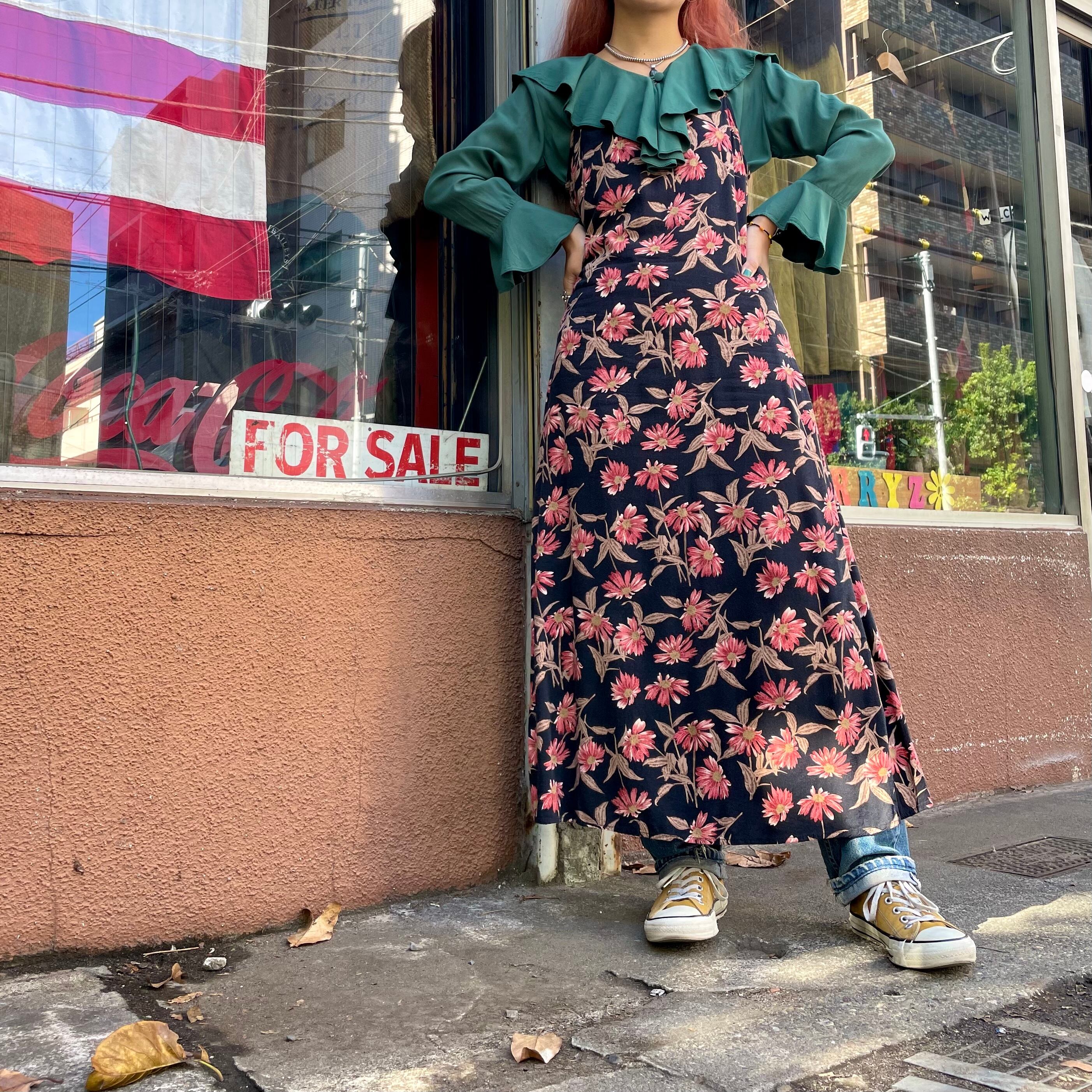 黒地にコスモスのような花柄がかわいいワンピースです。