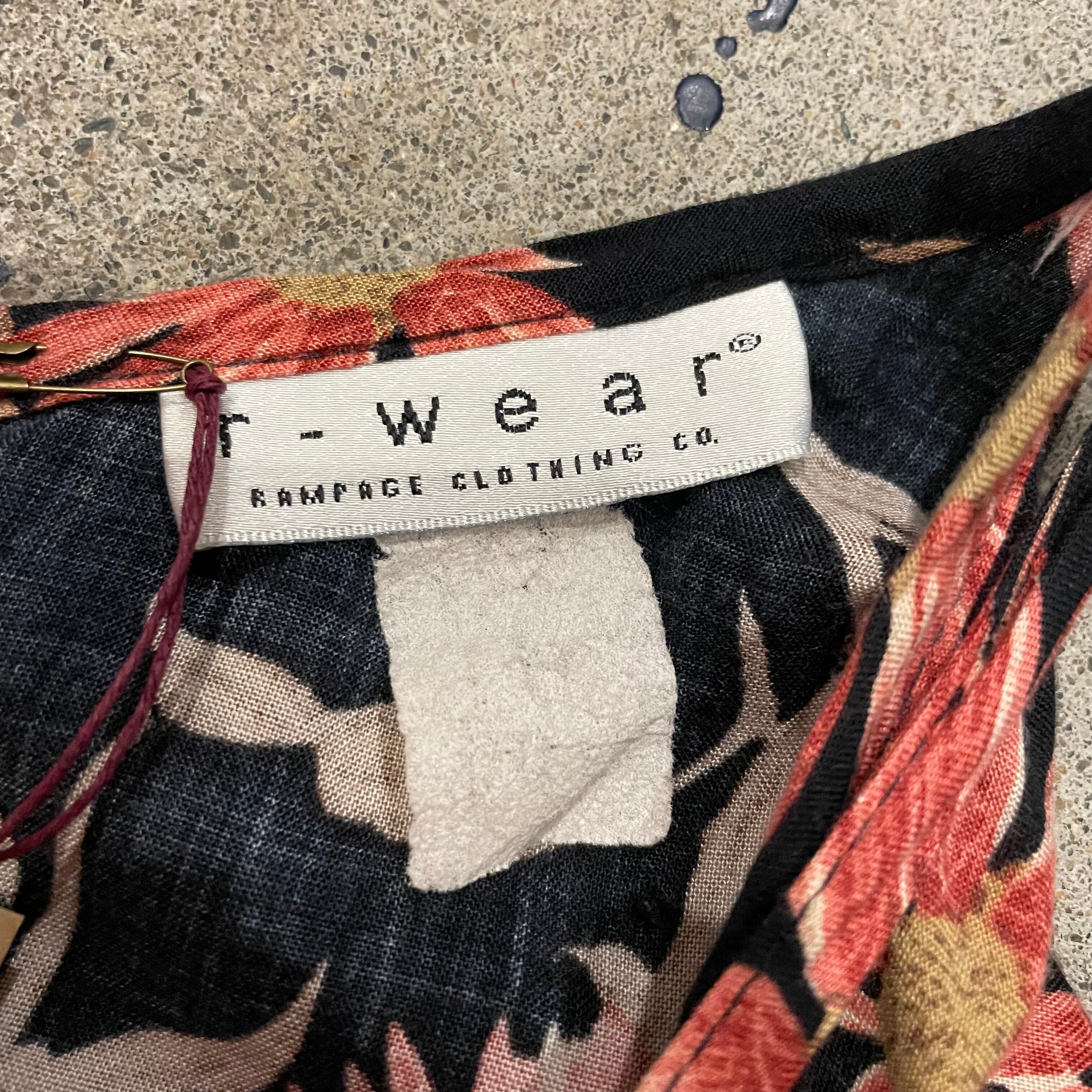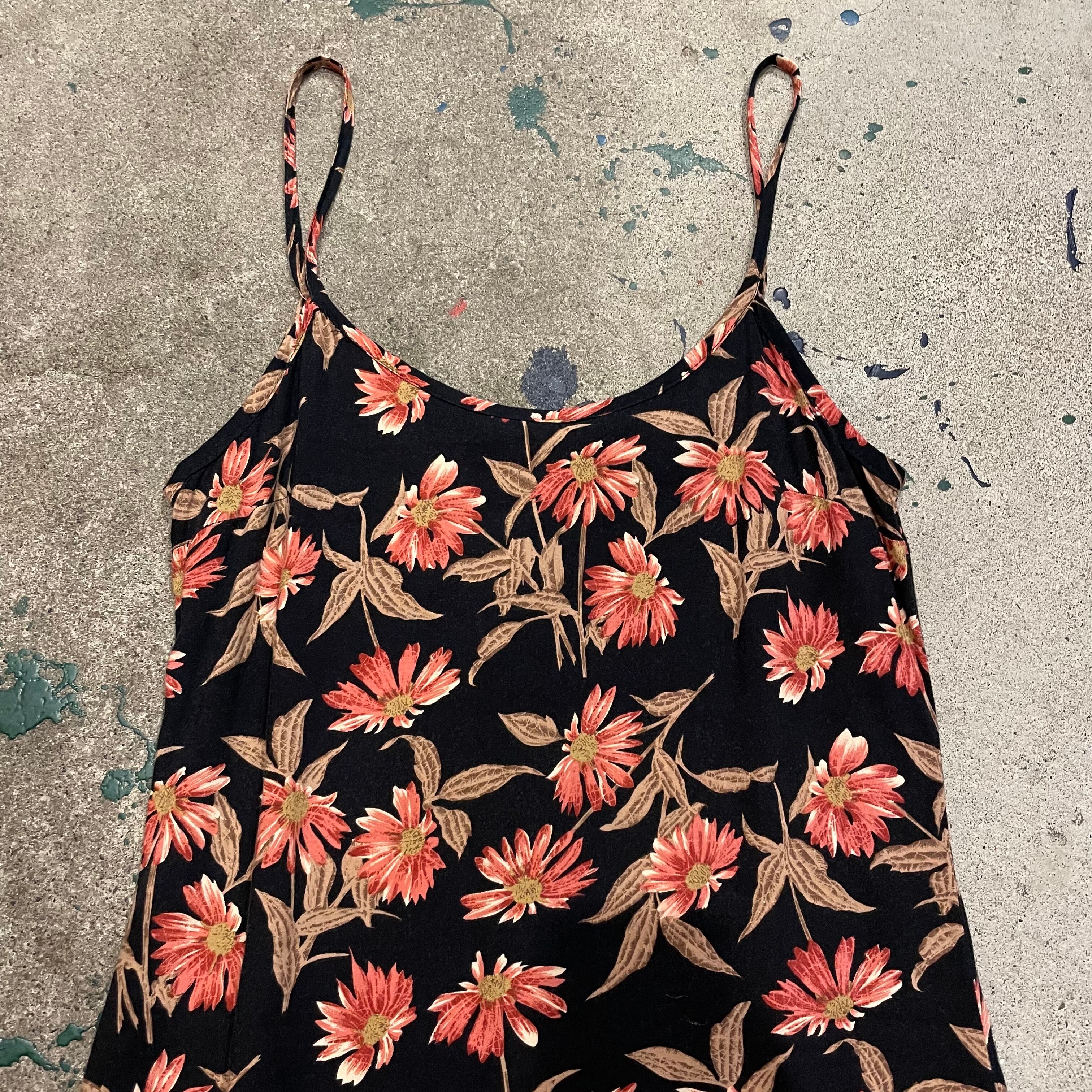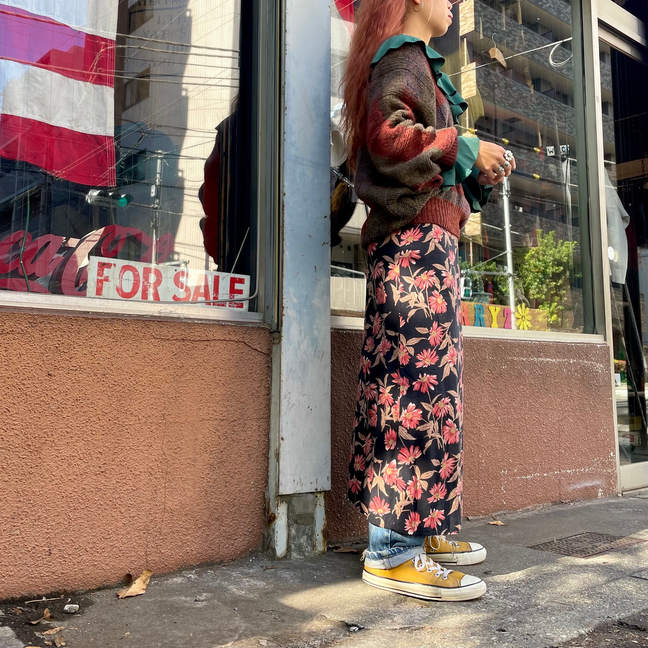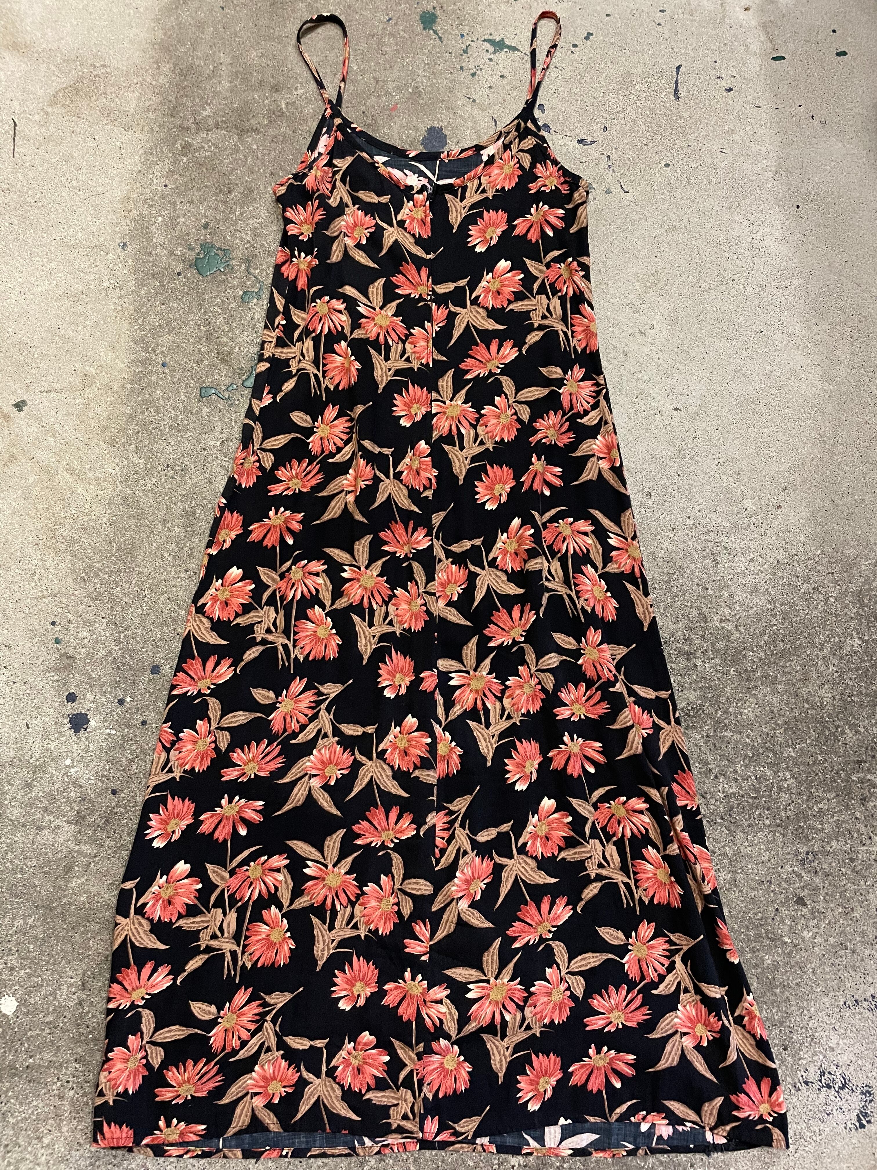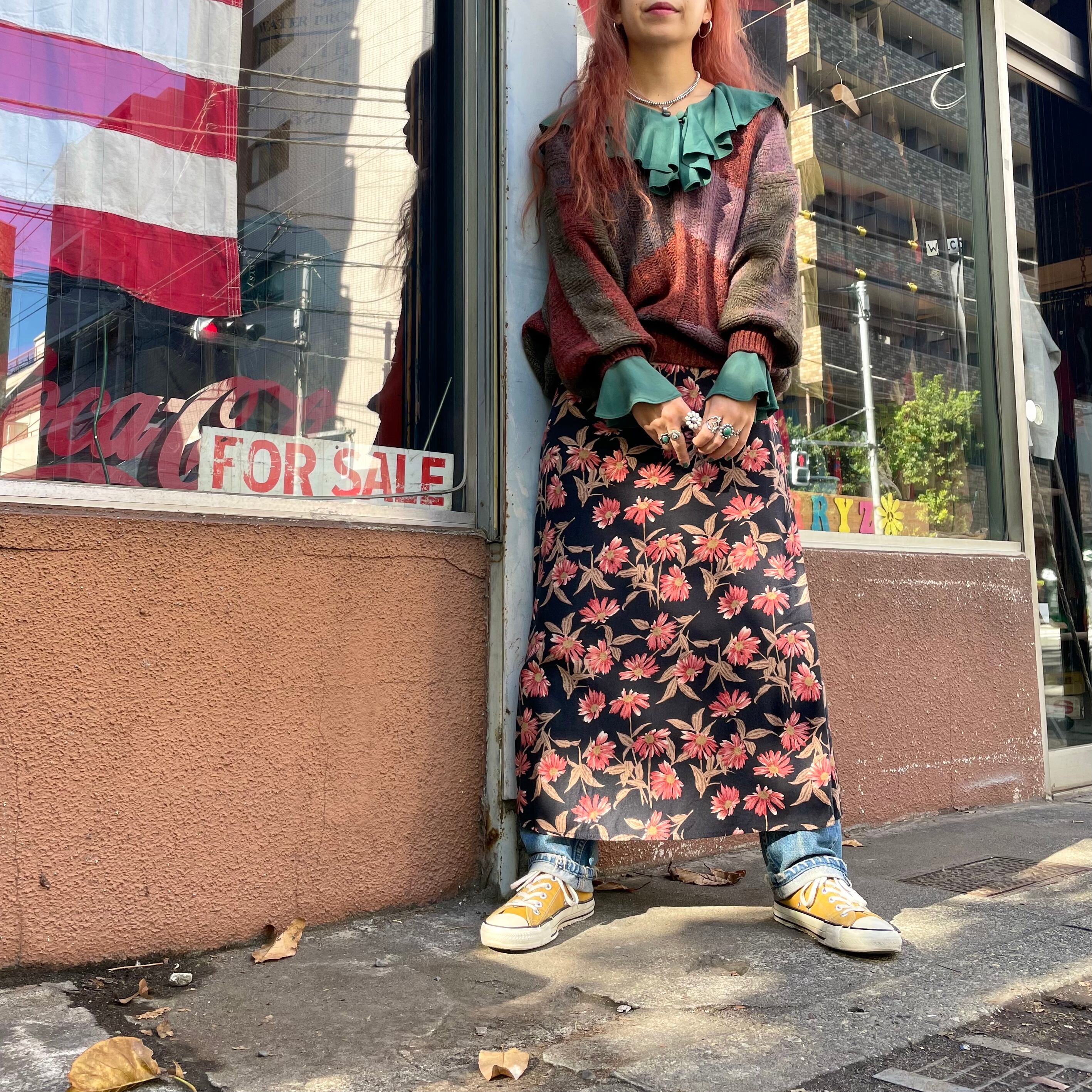 黒地にコスモスのような花柄がかわいいワンピースです。