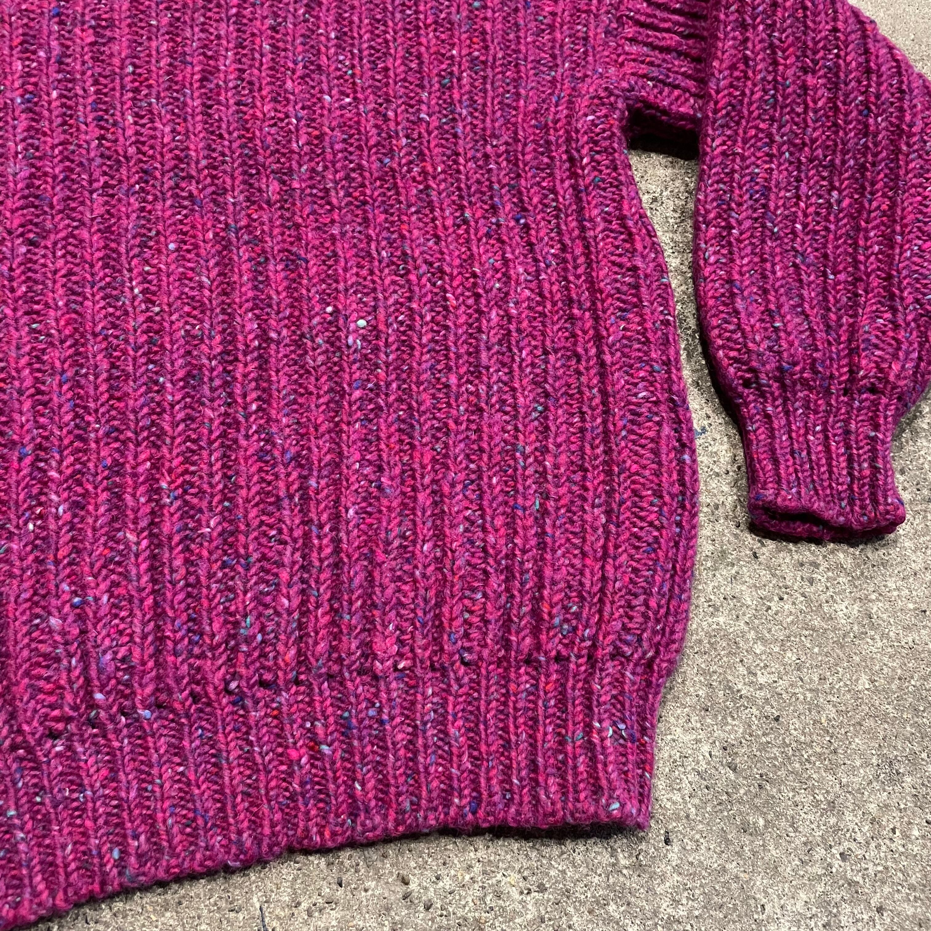 ピンクみの強いラズベリーっぽいパープルがとてもかわいいセーターです。