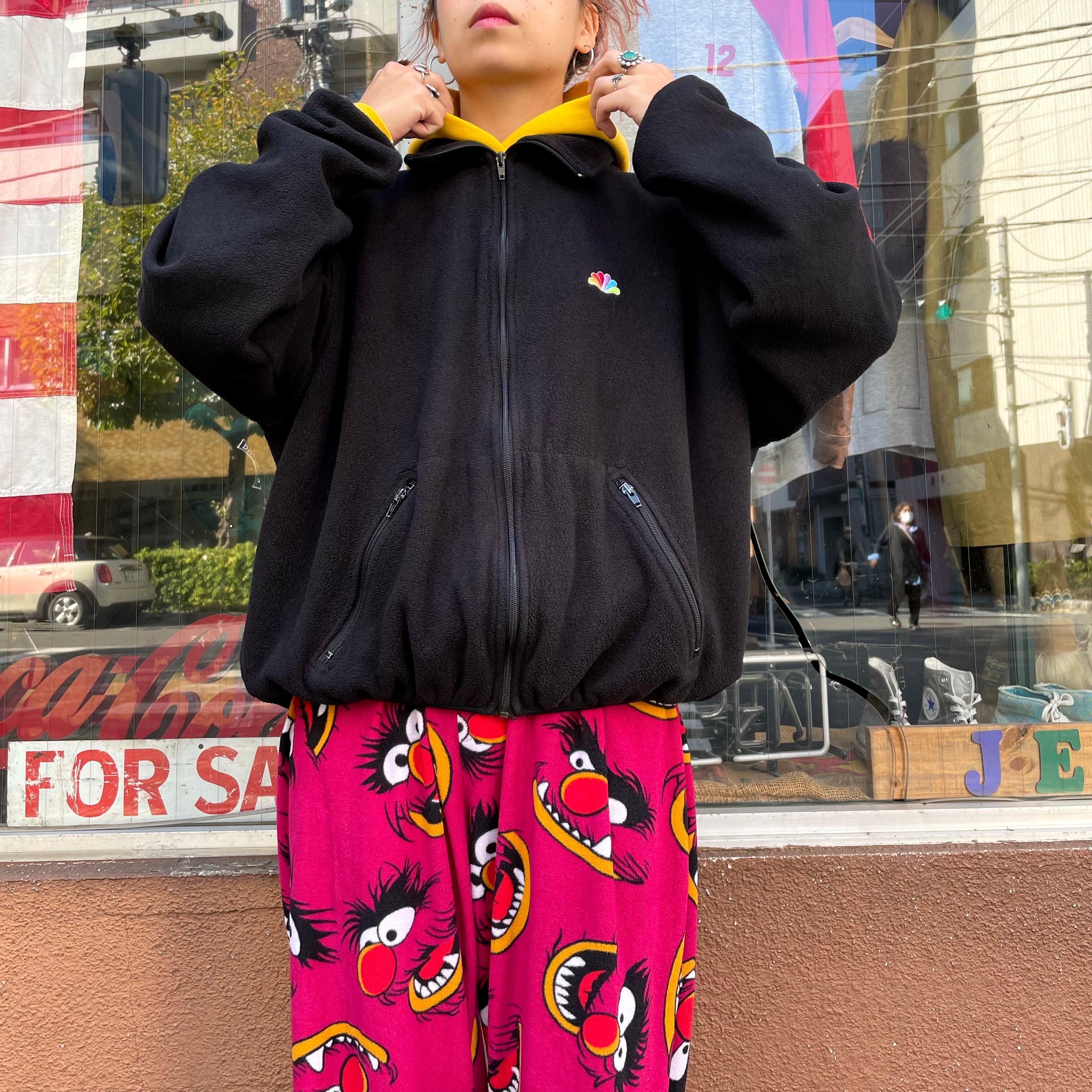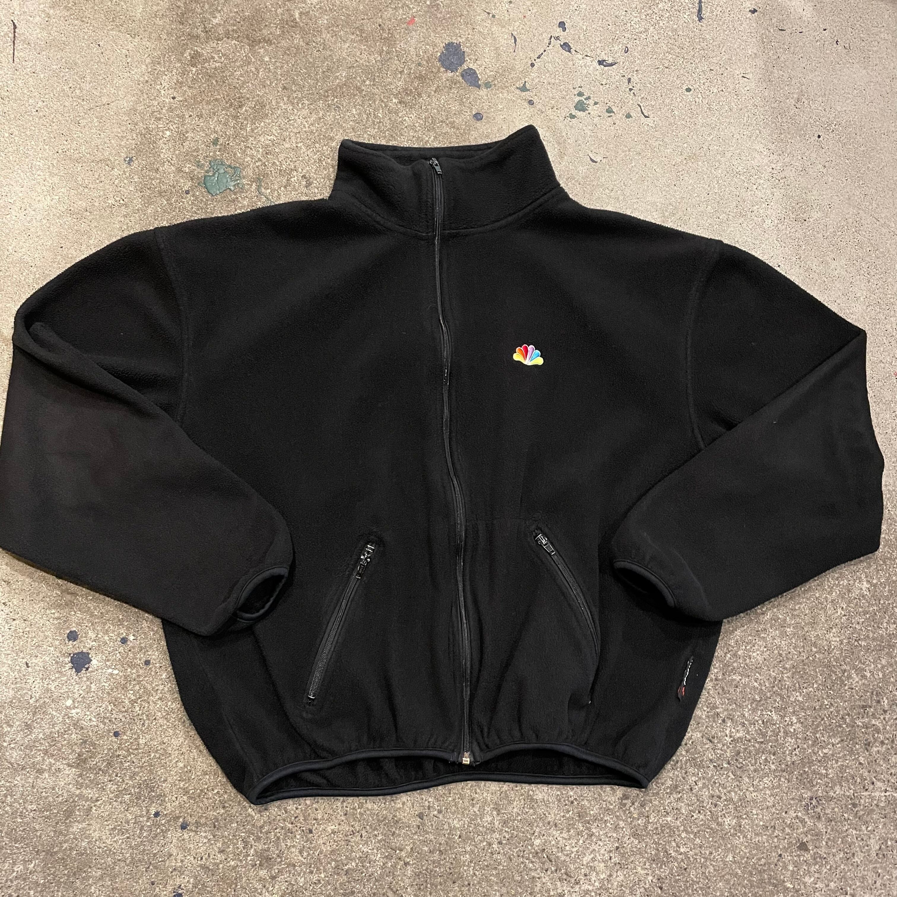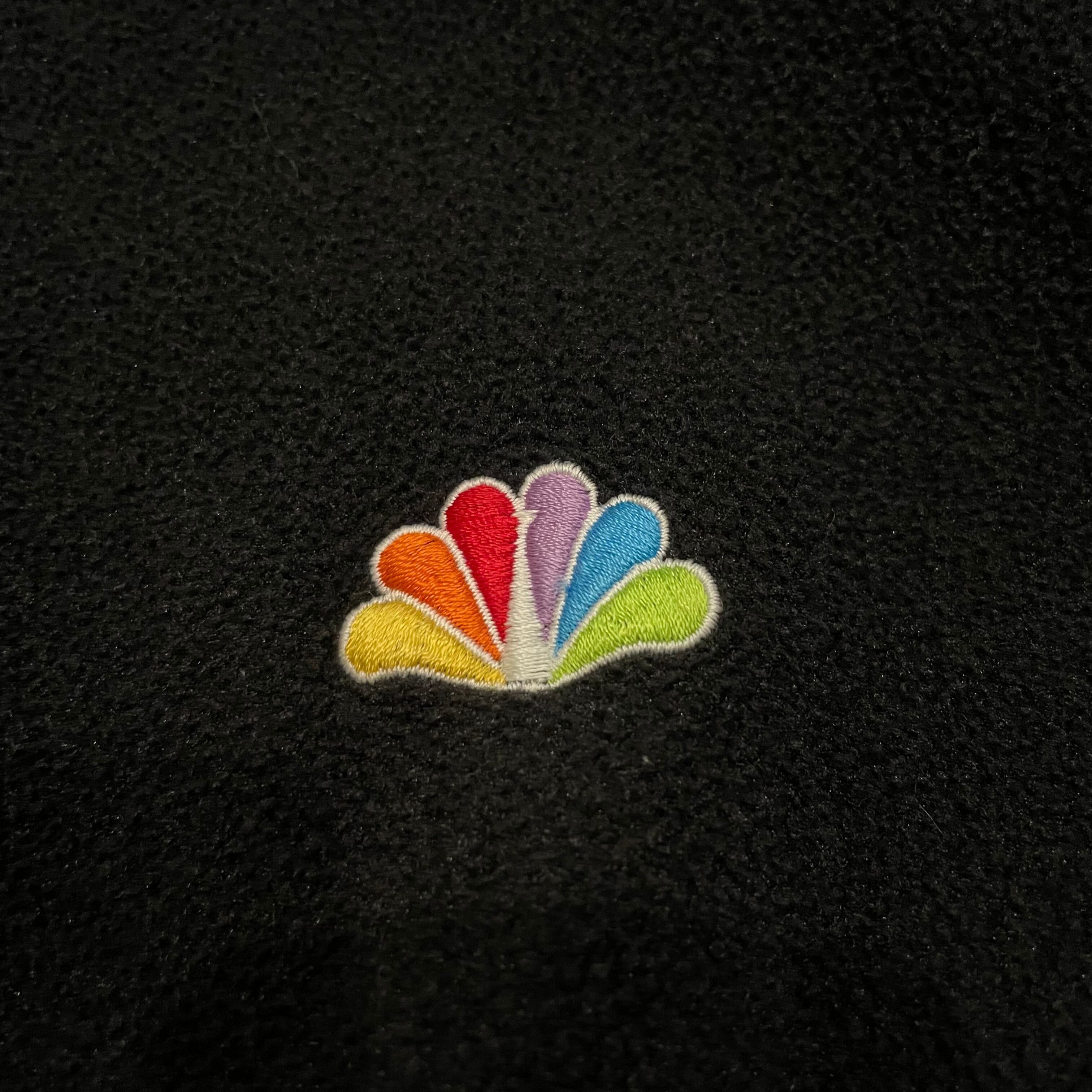 真っ黒のシンプルなフリースにアメリカのテレビ局NBCのロゴワンポイントの刺繍がかわいいジャケットです。