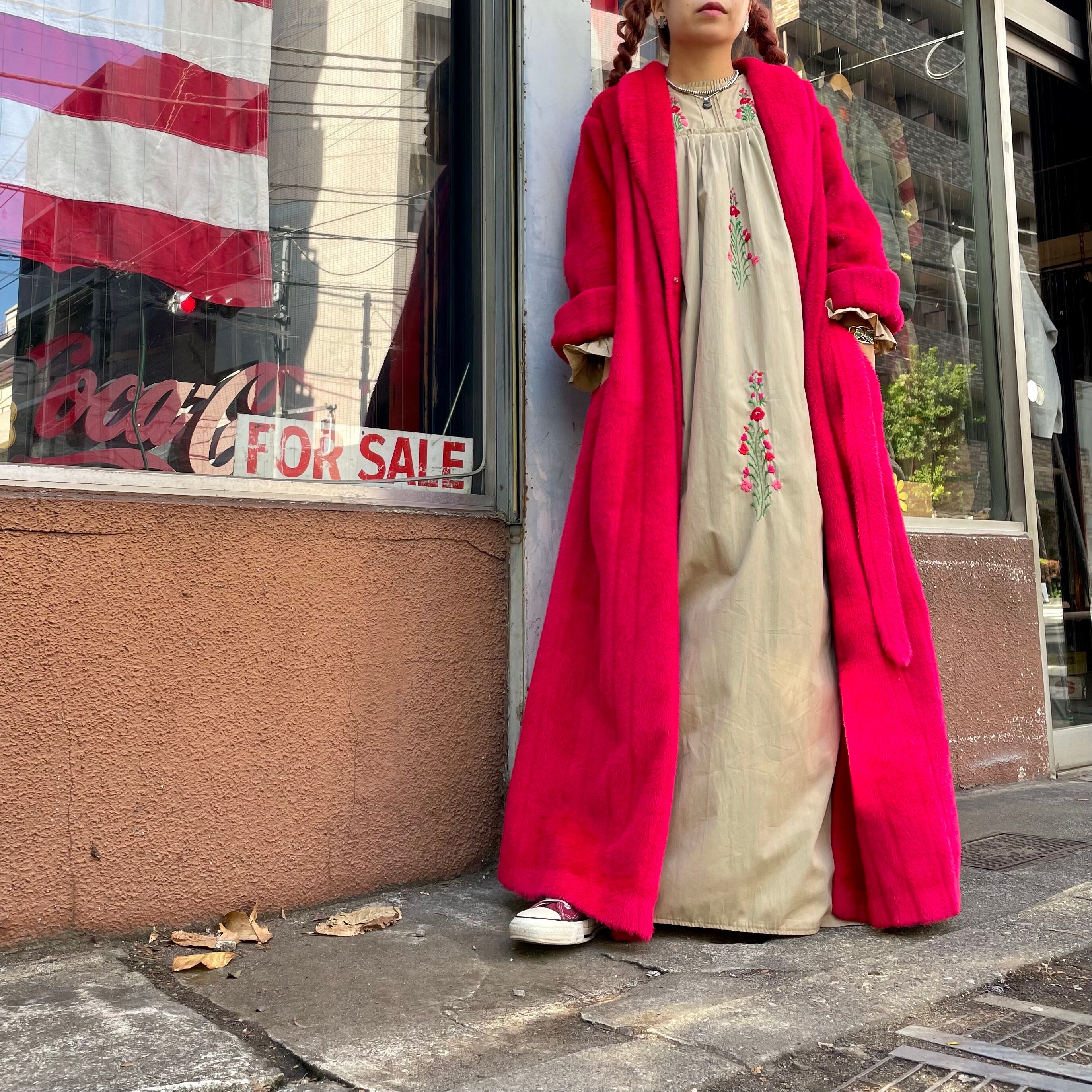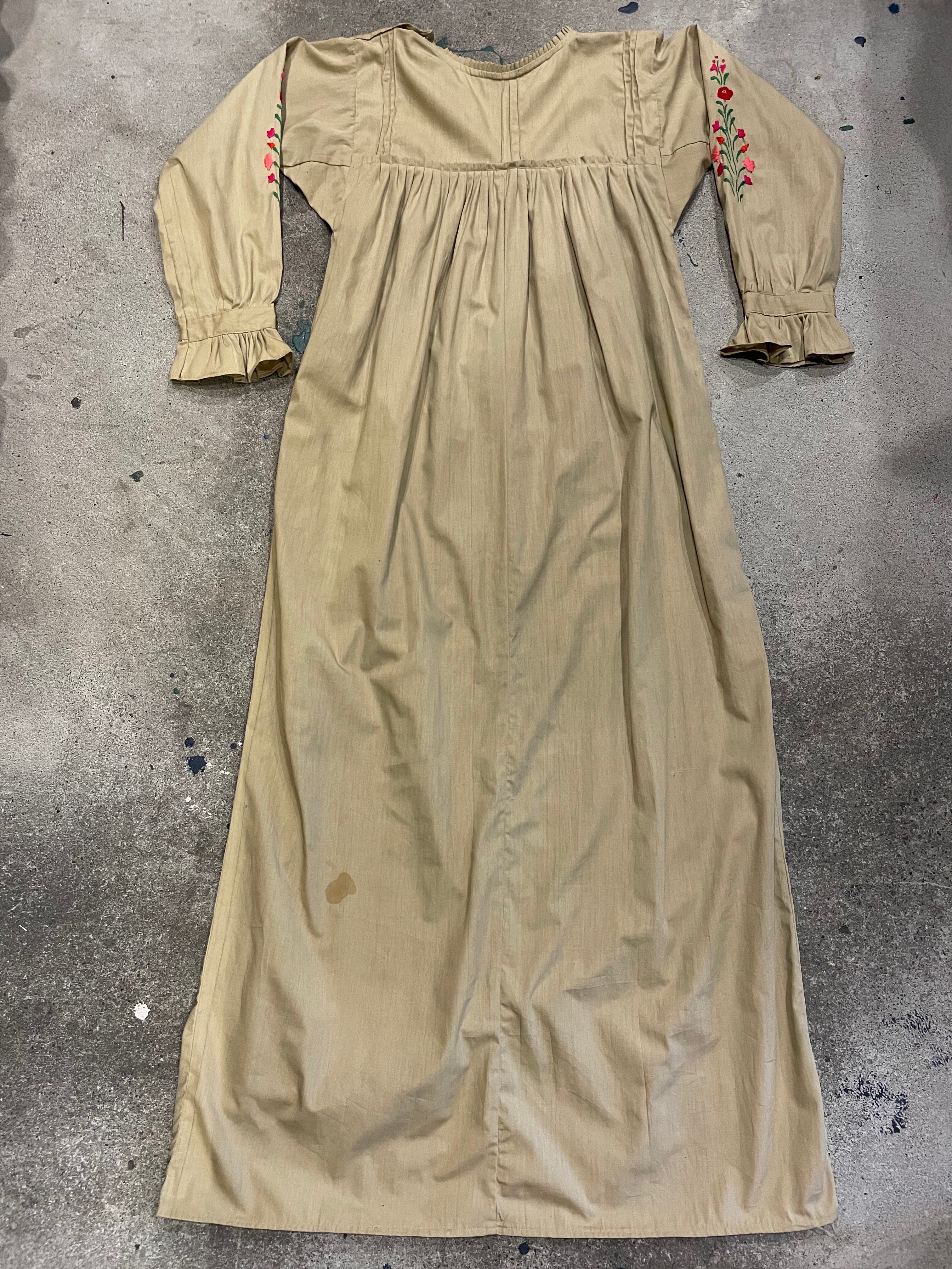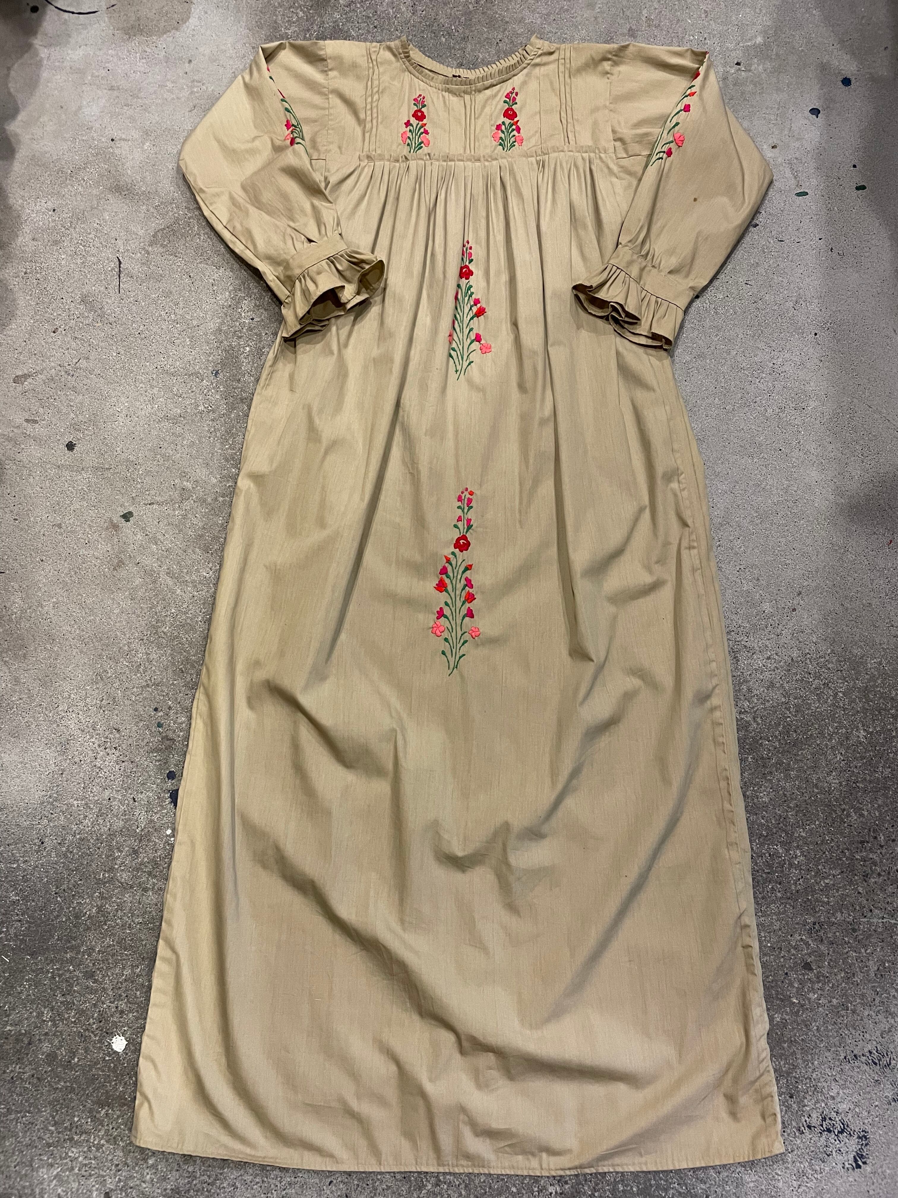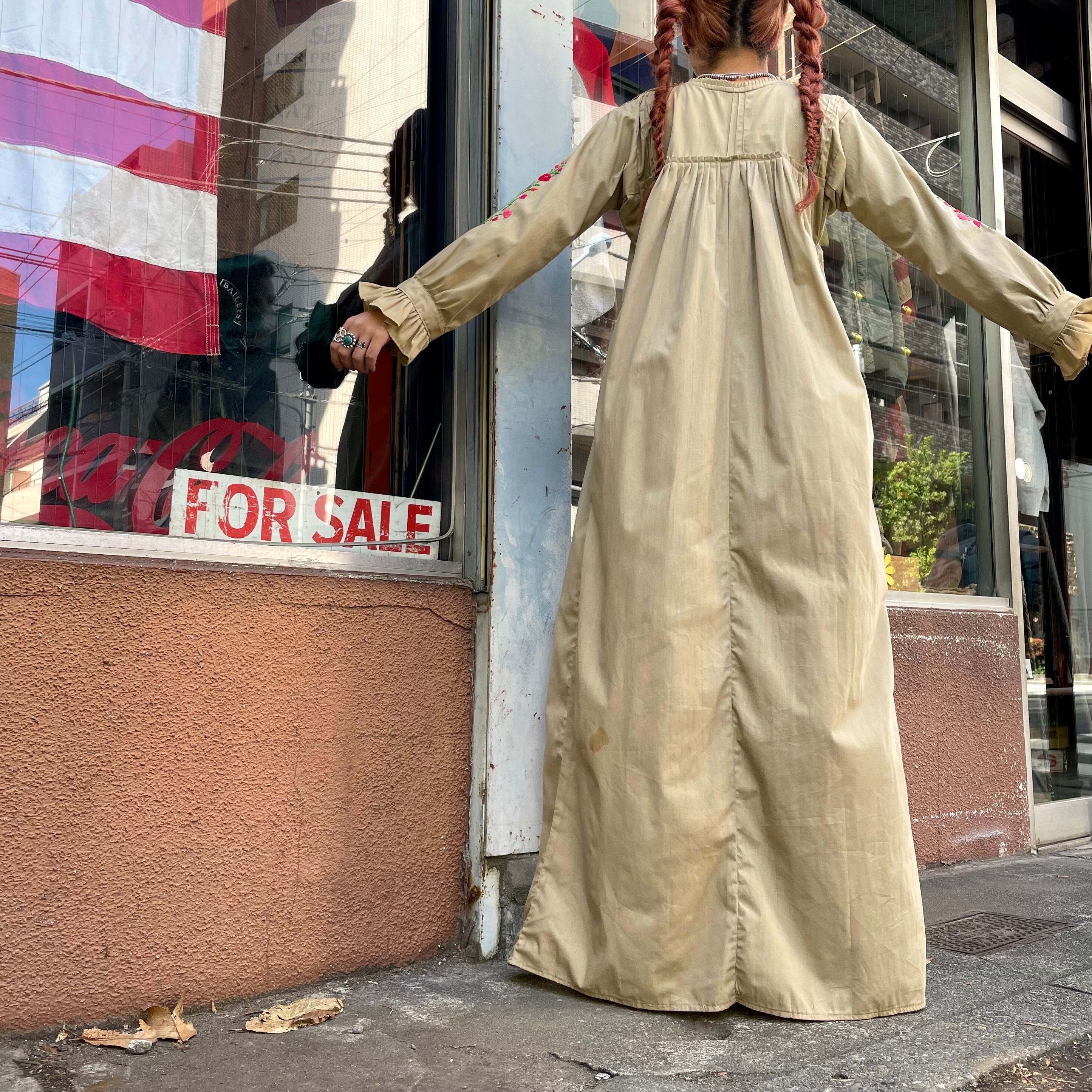 ベージュに赤とピンクのお花の手刺繍がかわいいワンピースです。