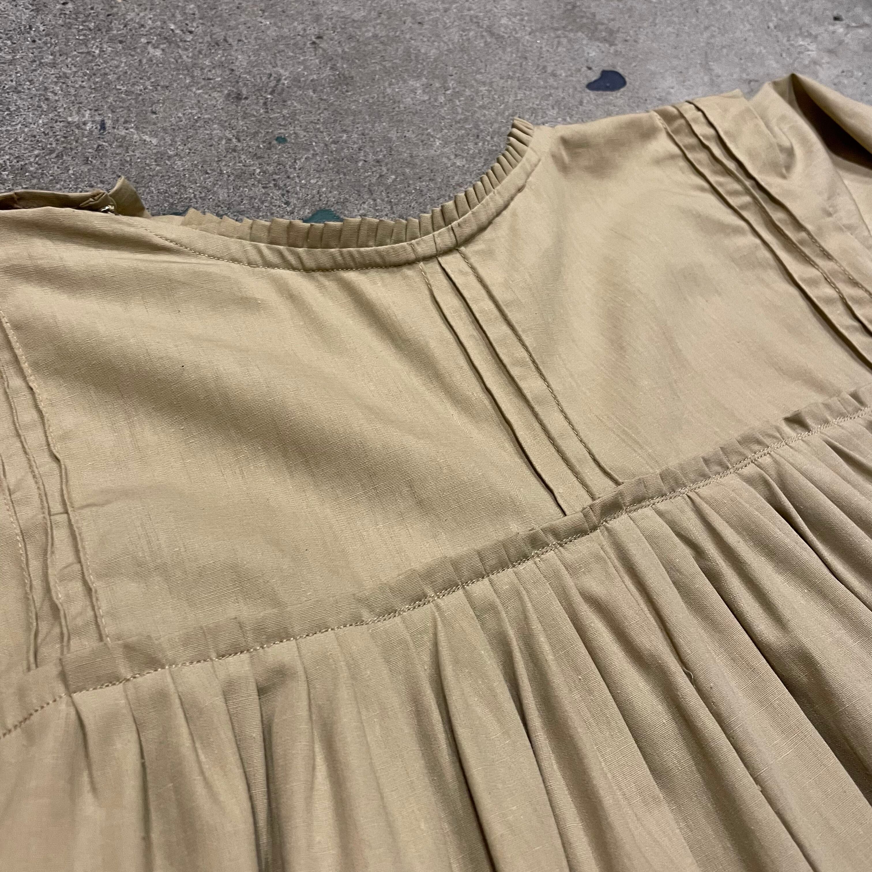 ハンドメイドのもので、ピンタックや襟ぐりや袖口のフリルなど細かいデザインがとても素敵です。広がらないふわっとしたシルエットが不思議な雰囲気で大人っぽくて良い感じです。