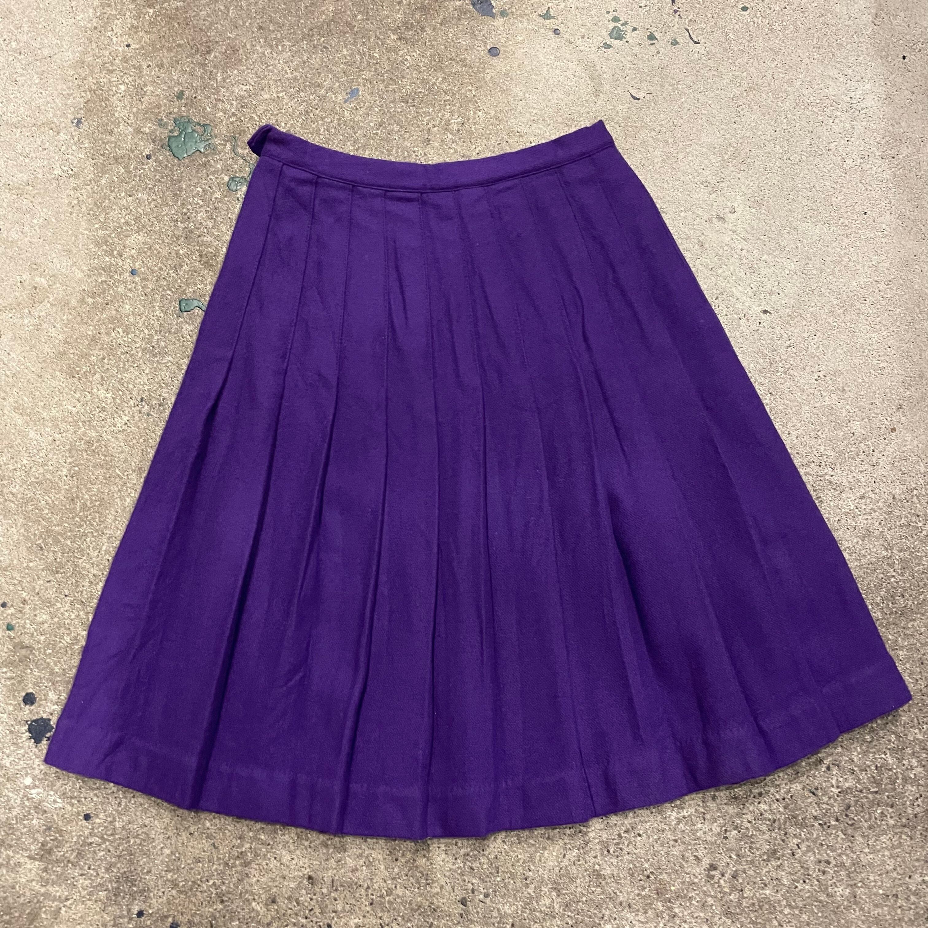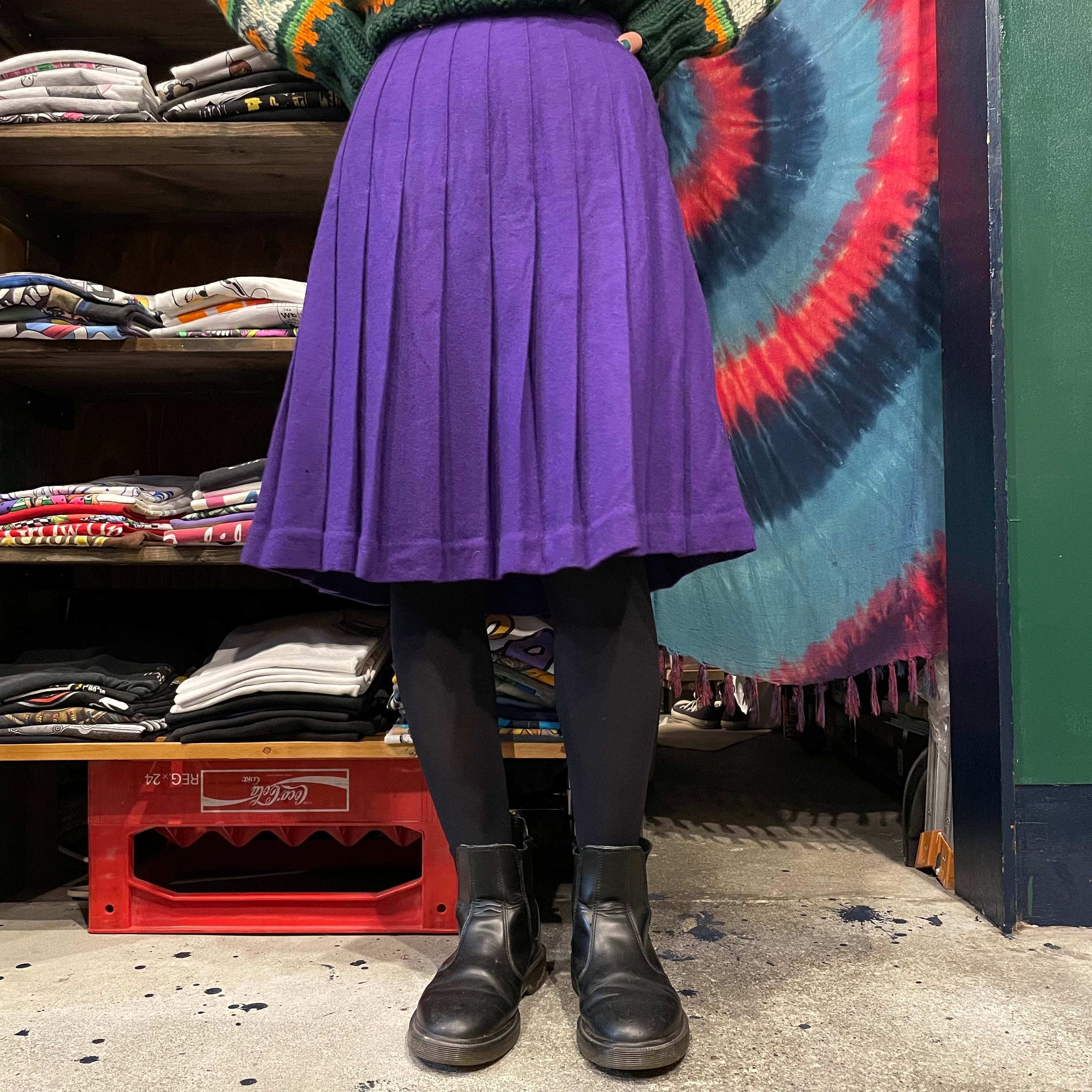 濃いパープルがかわいいウール素材のプリーツスカートです。