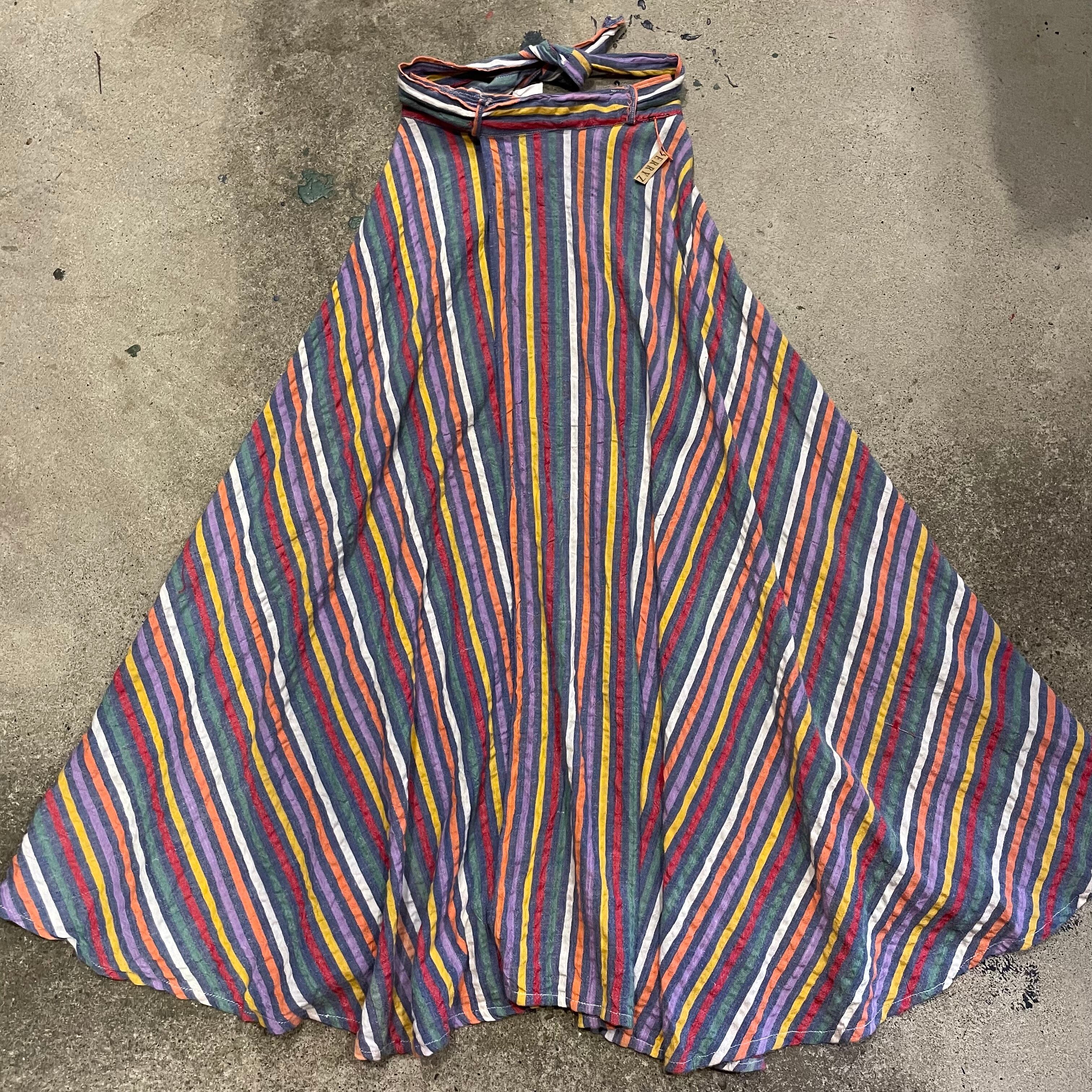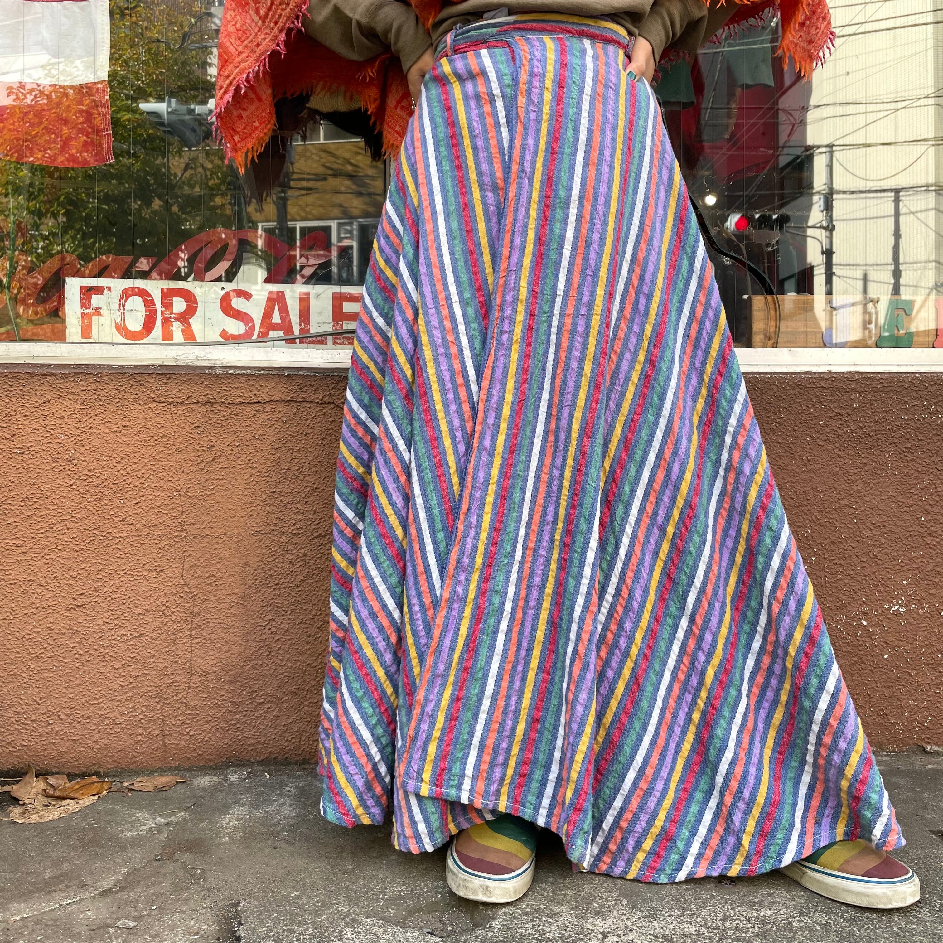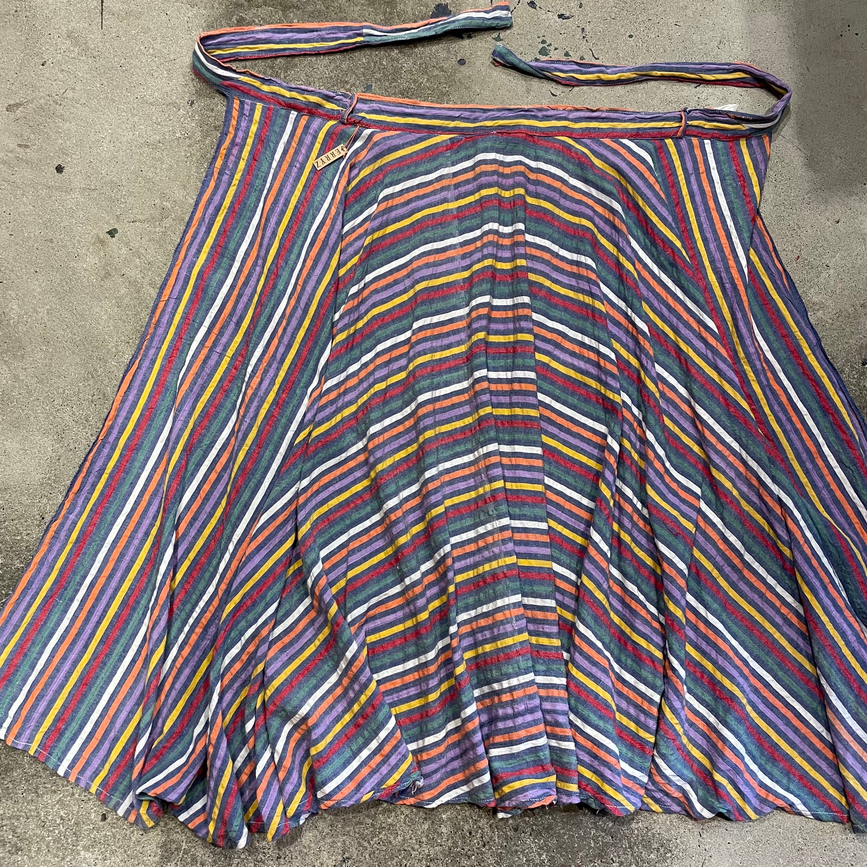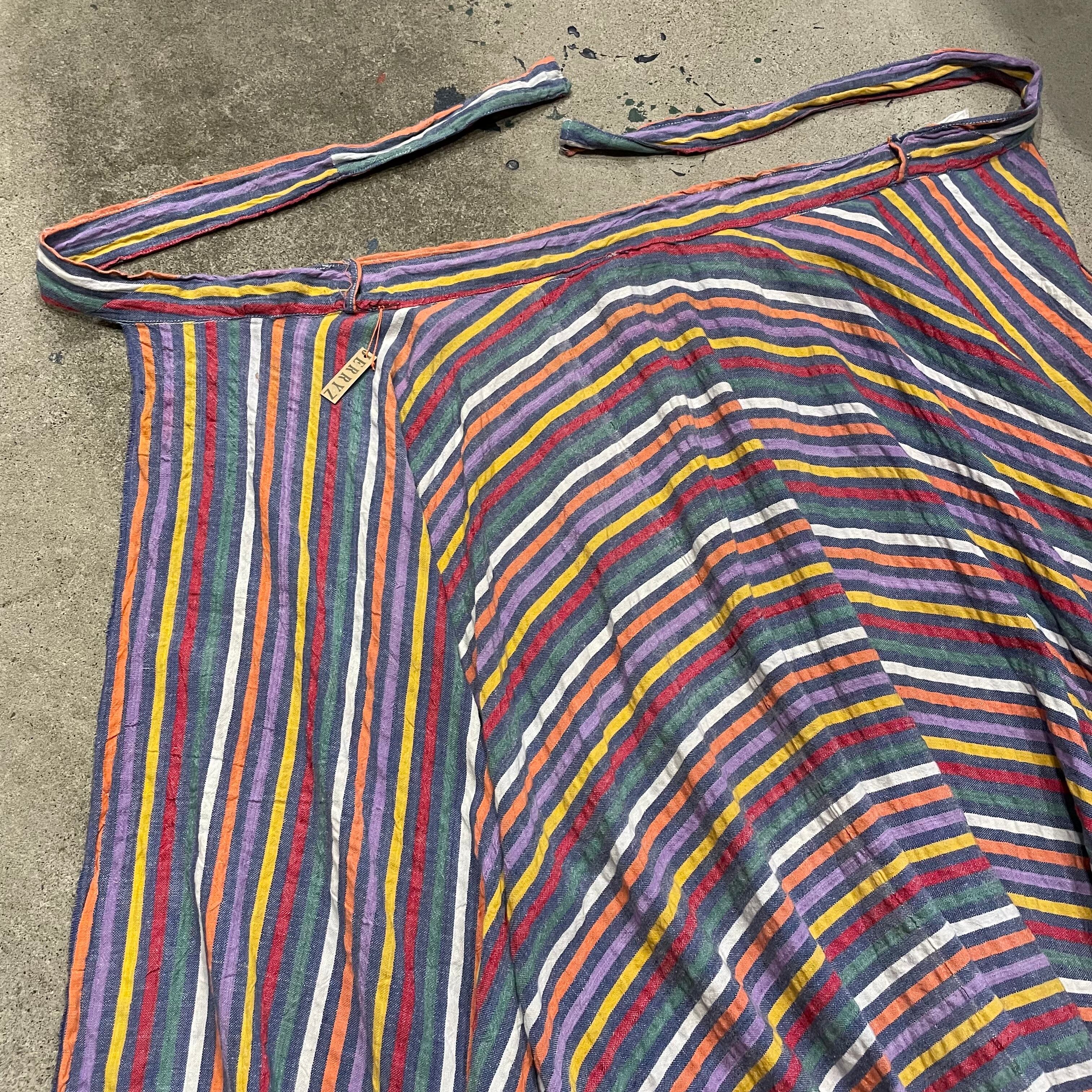 パキスタン製のカラフルなストライプがかわいい巻きスカートです。