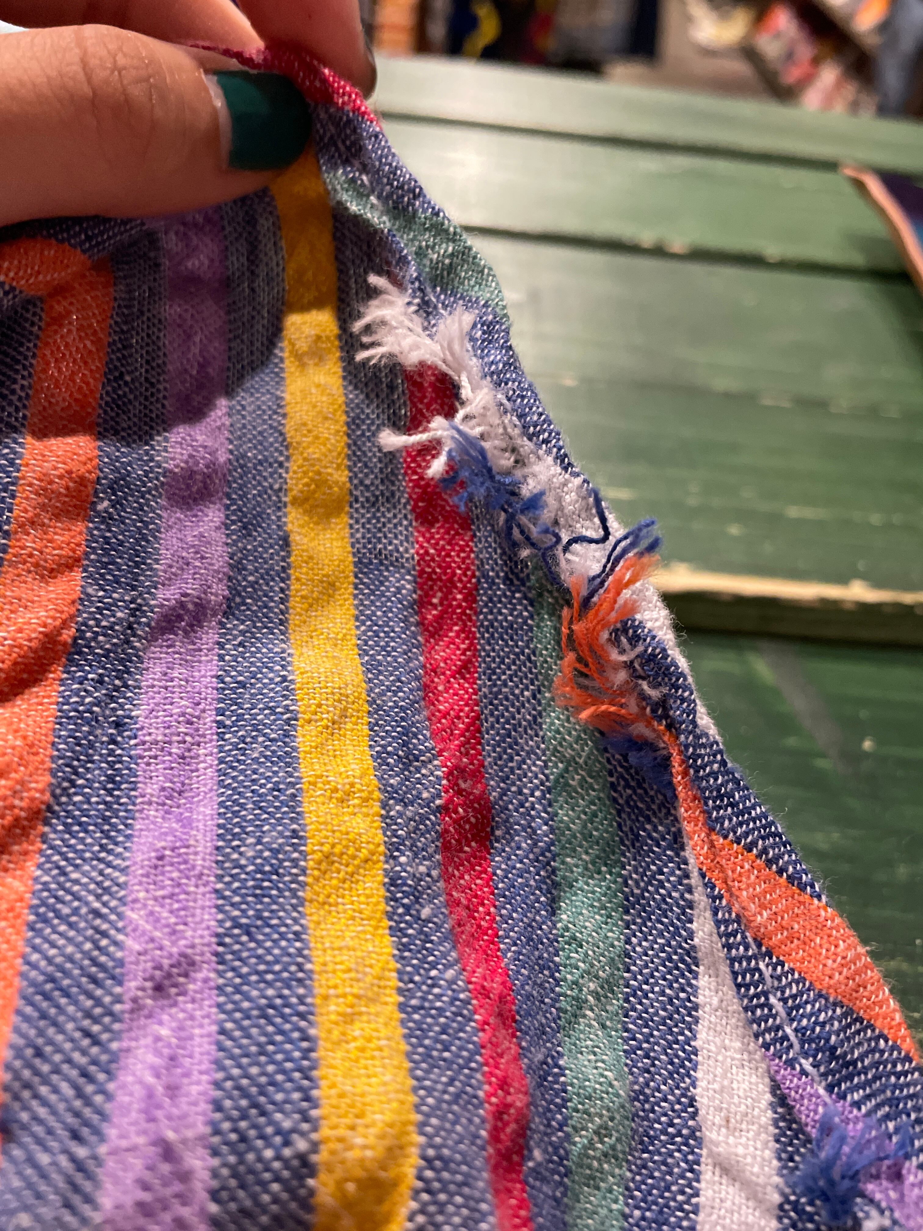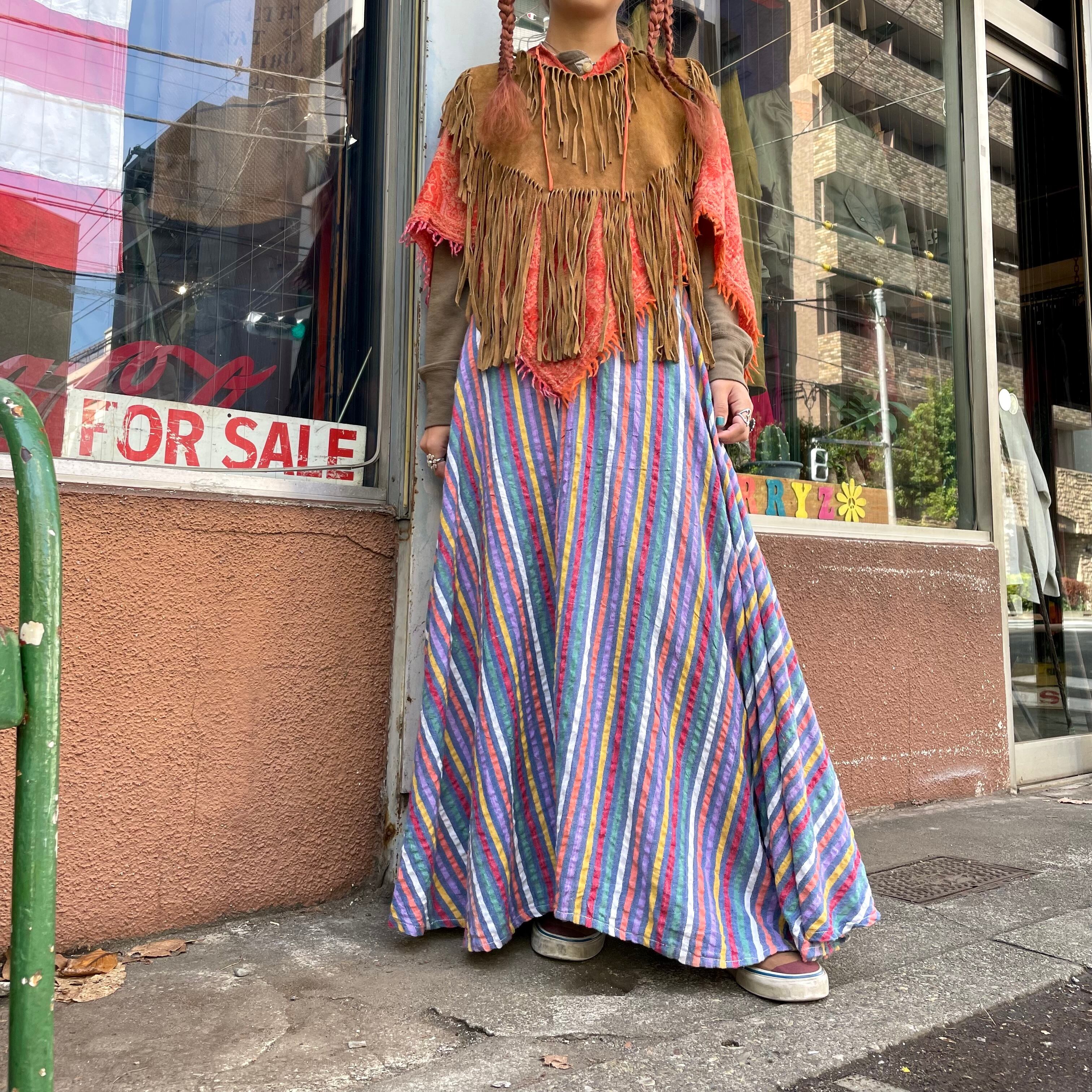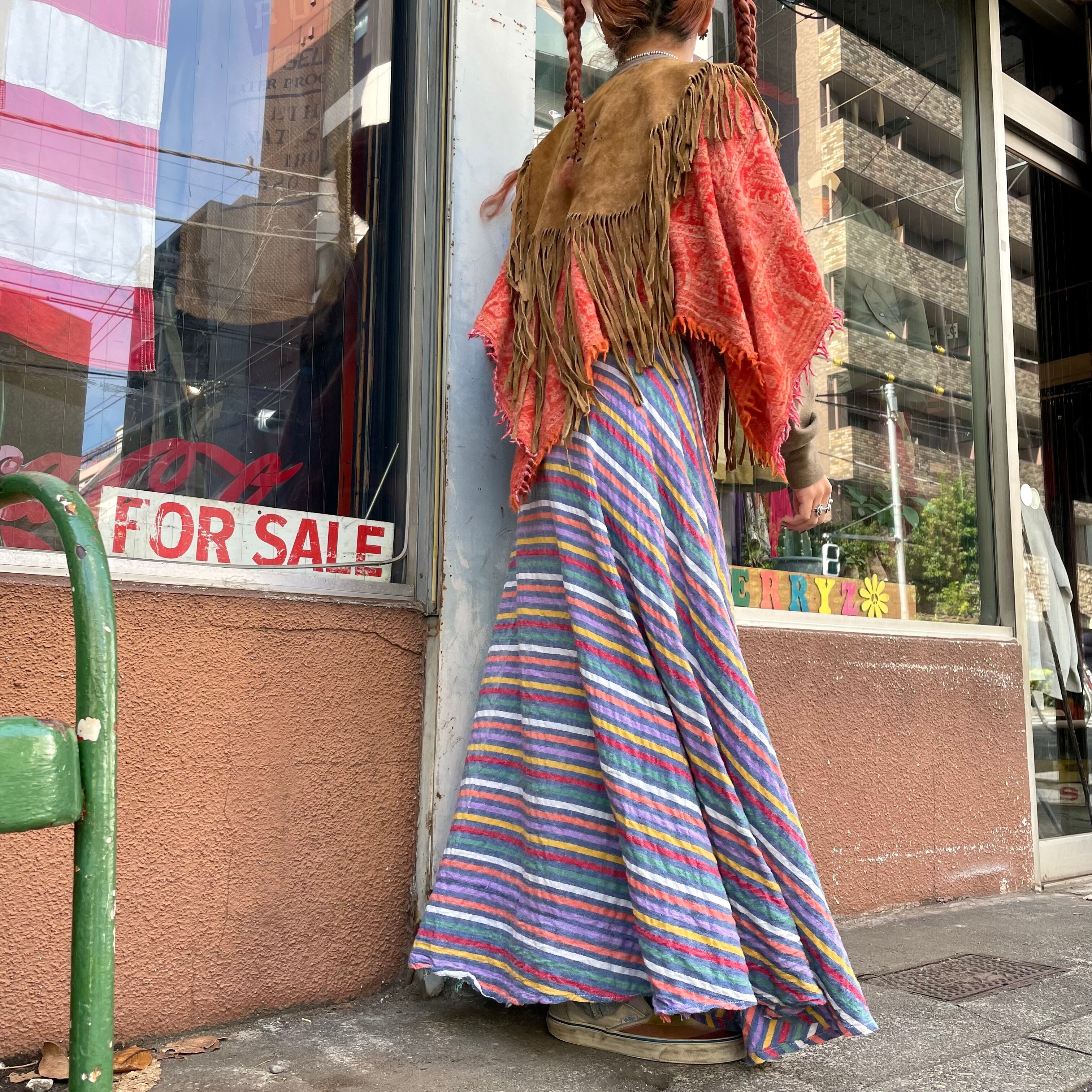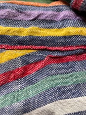 パキスタン製のカラフルなストライプがかわいい巻きスカートです。