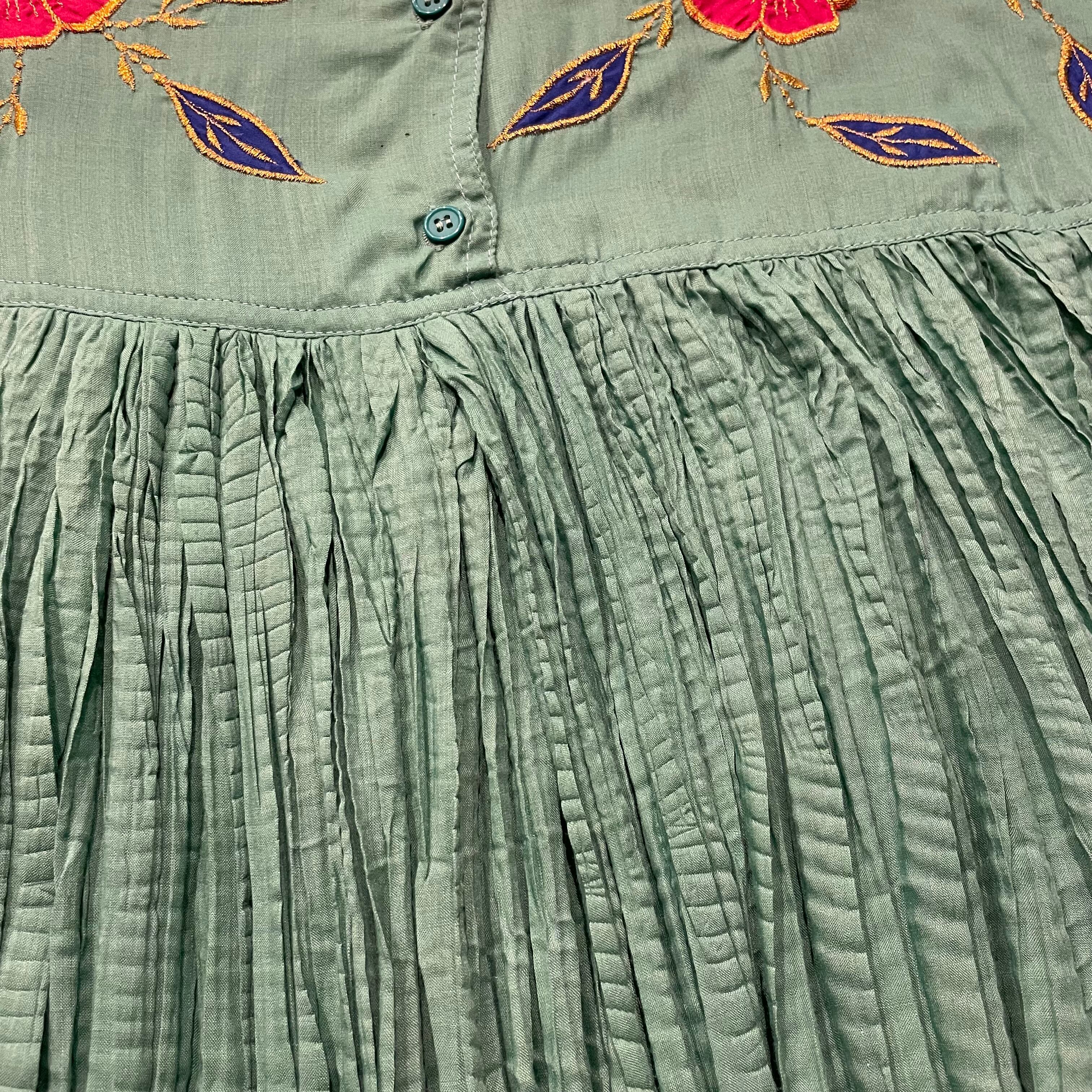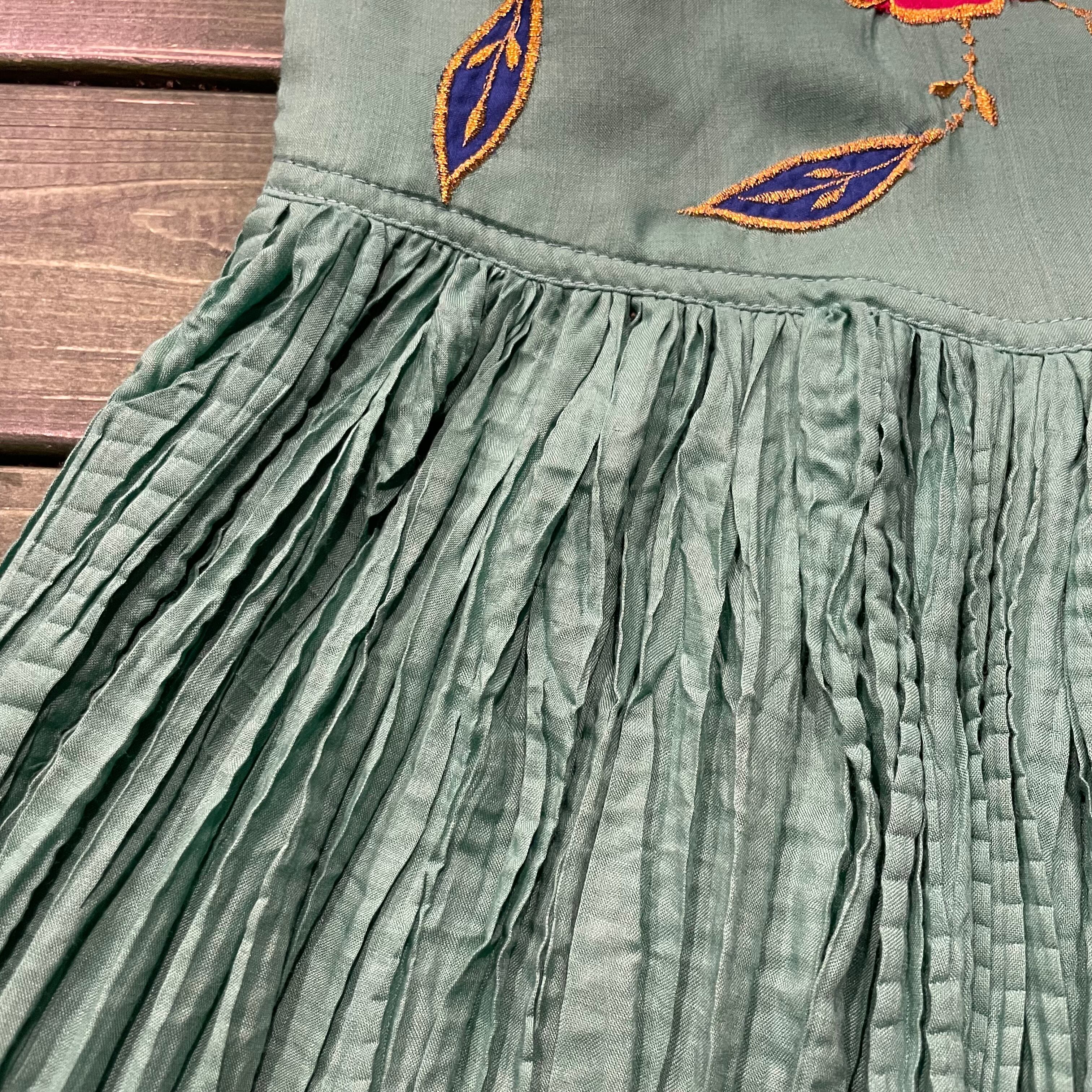 胸元にはお花のパッチワークのお花と葉っぱがかわいいですし、スカート部分の不思議な素材感とボリューム感が良い感じです。