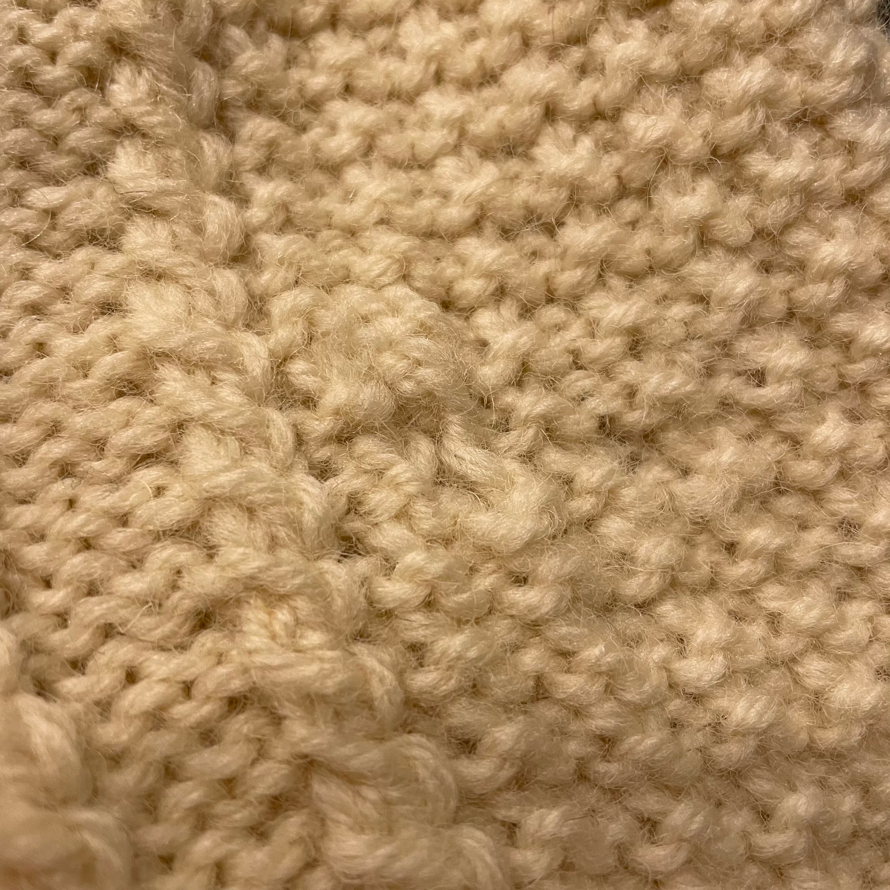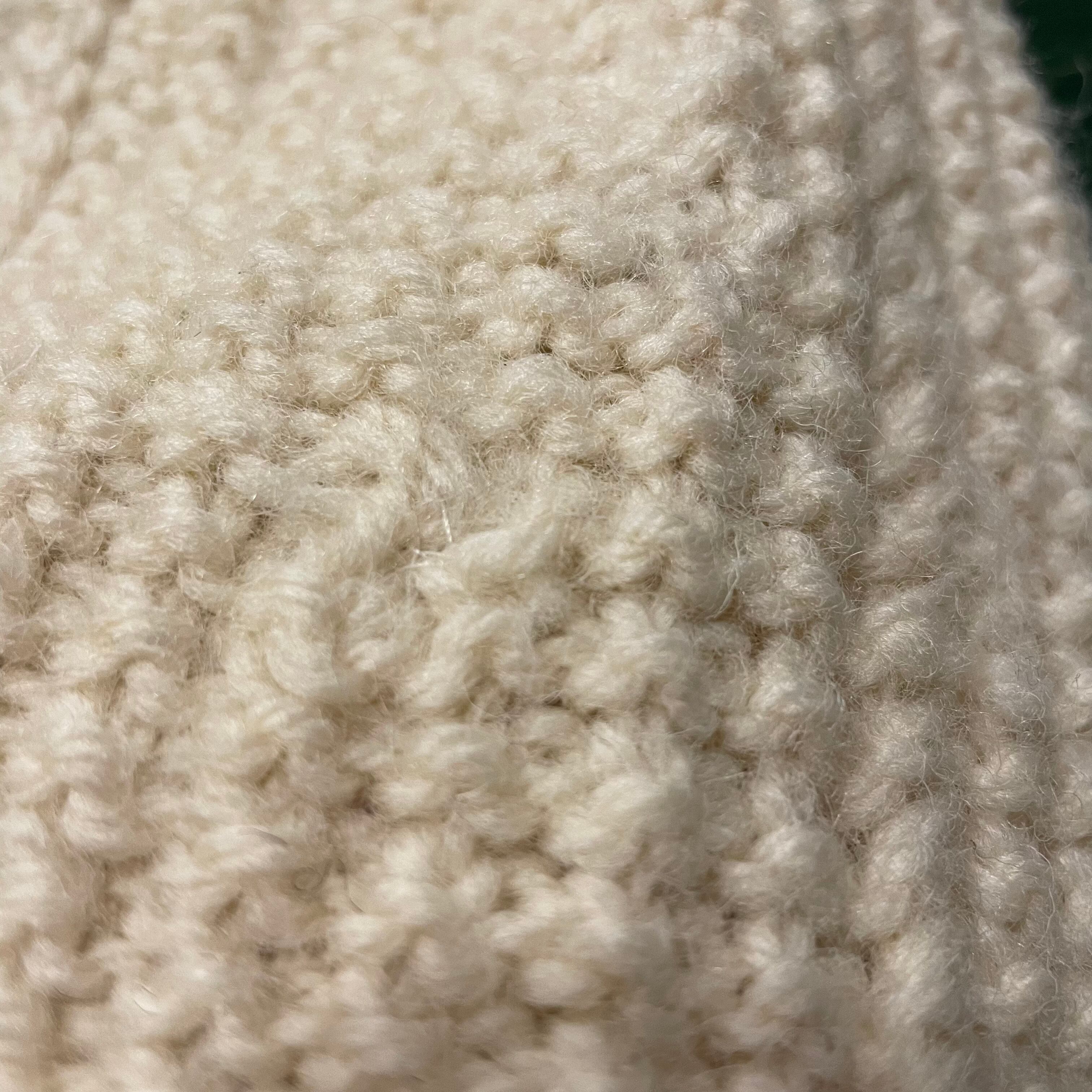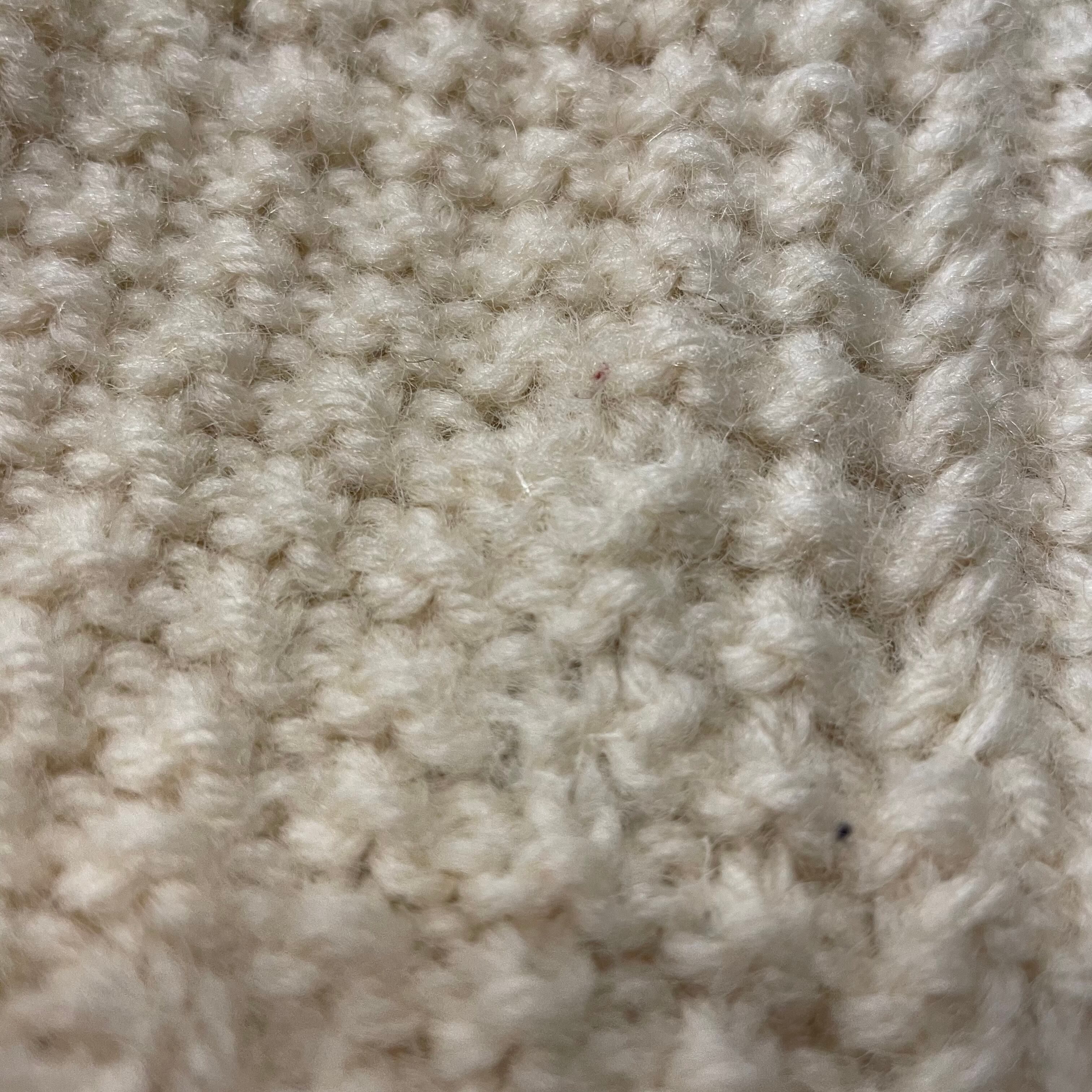 編み地が立体的でとても可愛く、Vネックで大人っぽい雰囲気です。