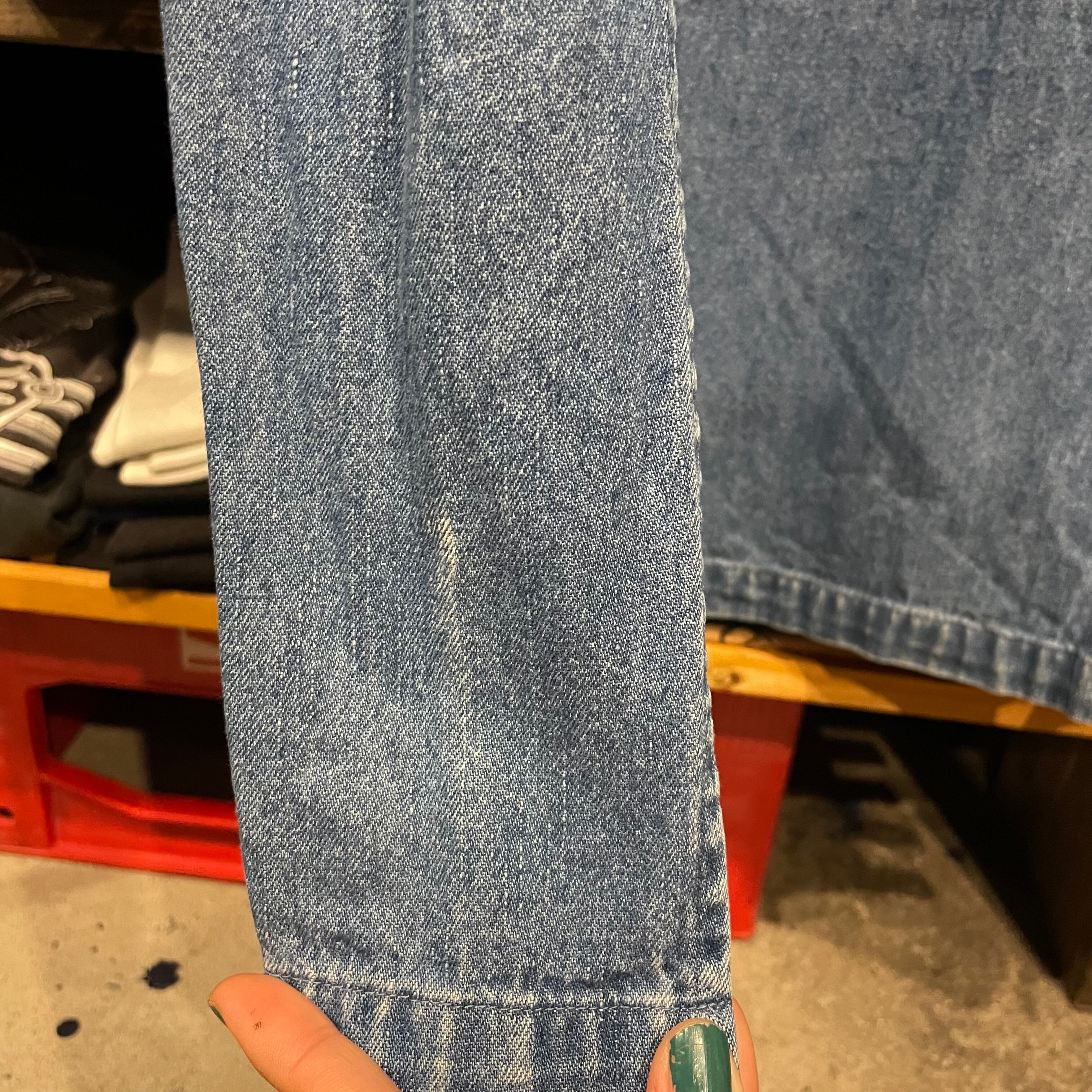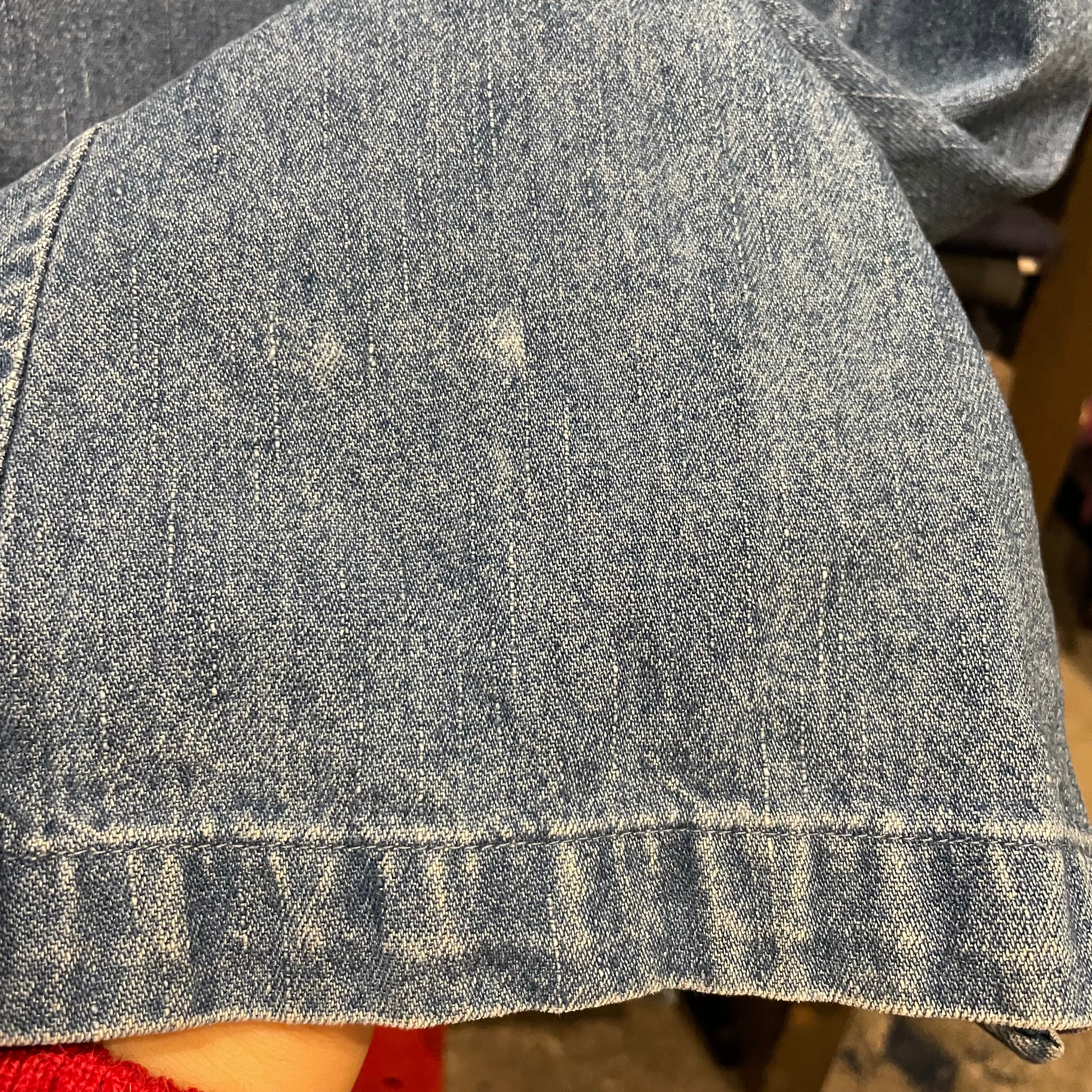 肩の日焼けや裾付近のスレ等、デニム特有の色落ちが多数ございます。古着にご理解のある方のご購入をお願い致します。