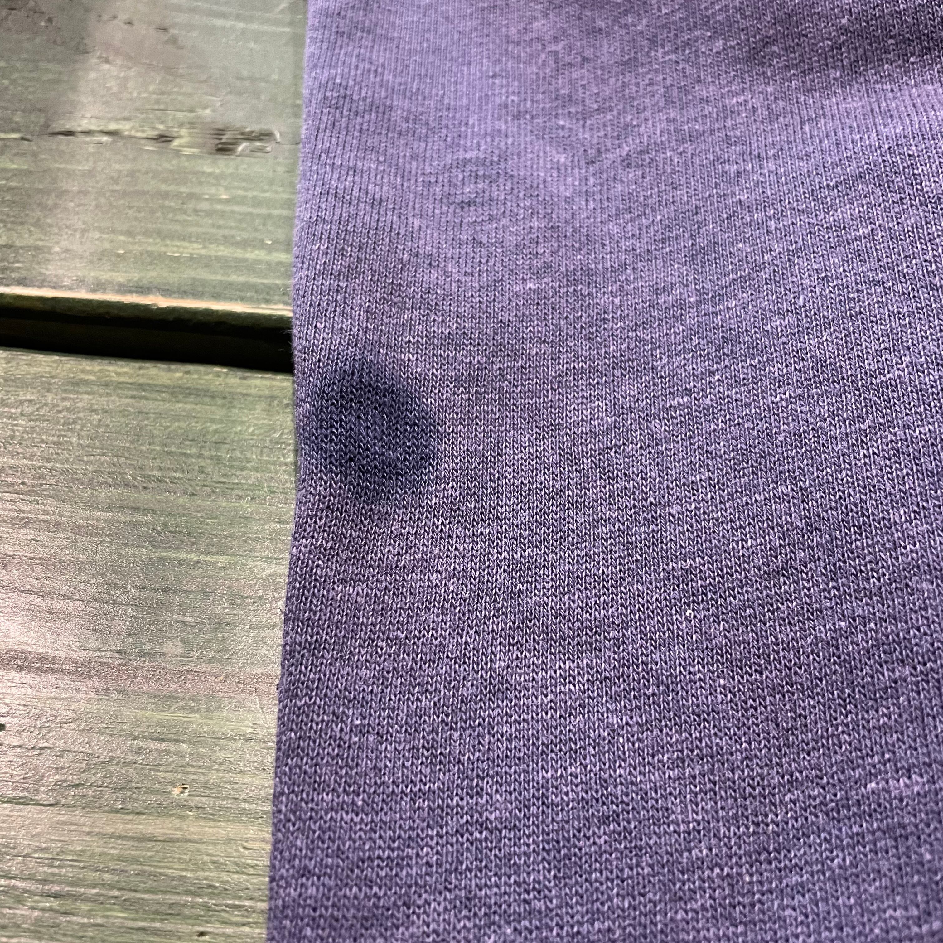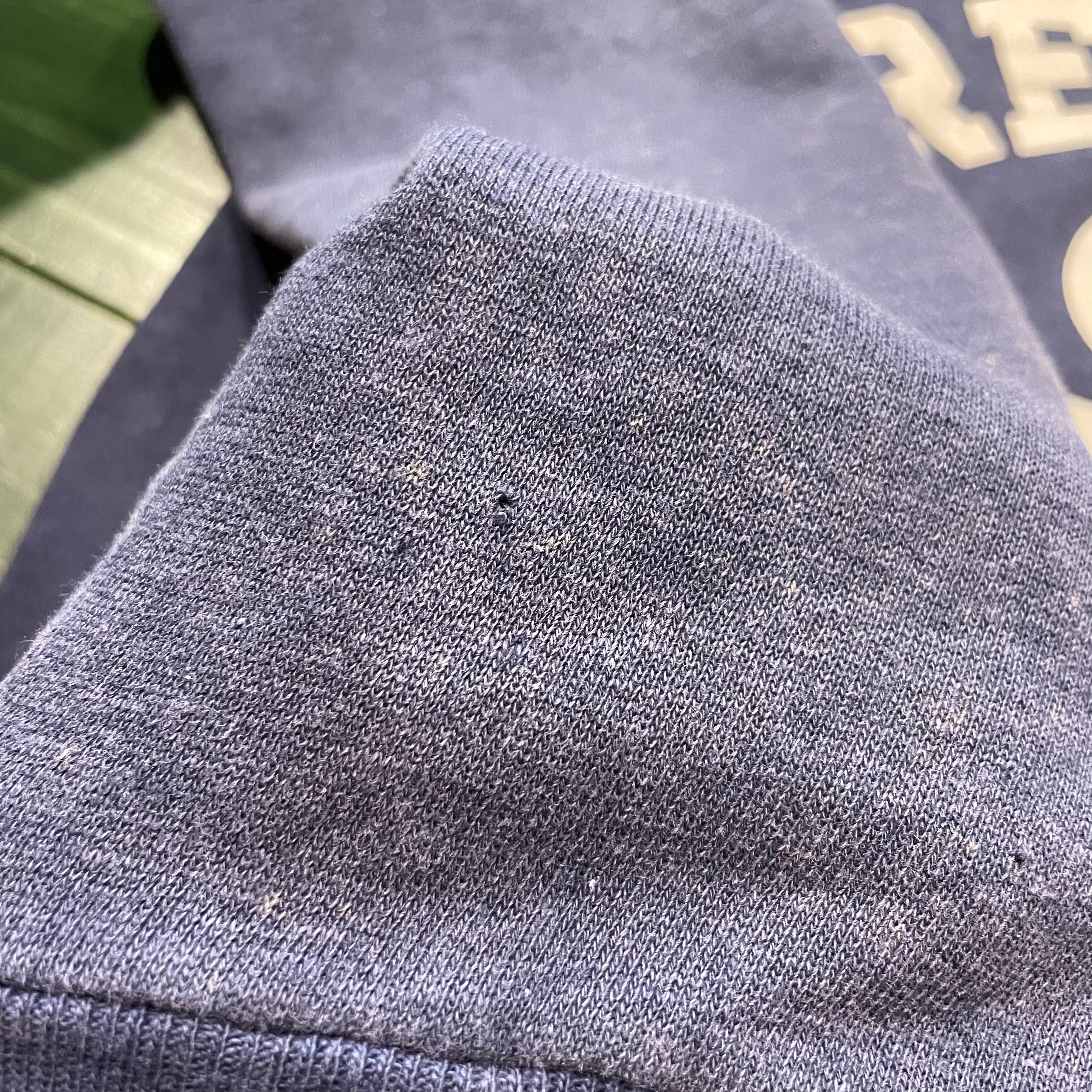 右袖にシミや色落ち、小さいキズがあります。糸のほつれや全体的な色褪せ等、かなり使用感のある商品ですので古着にご理解のある方のご購入をお願い致します。