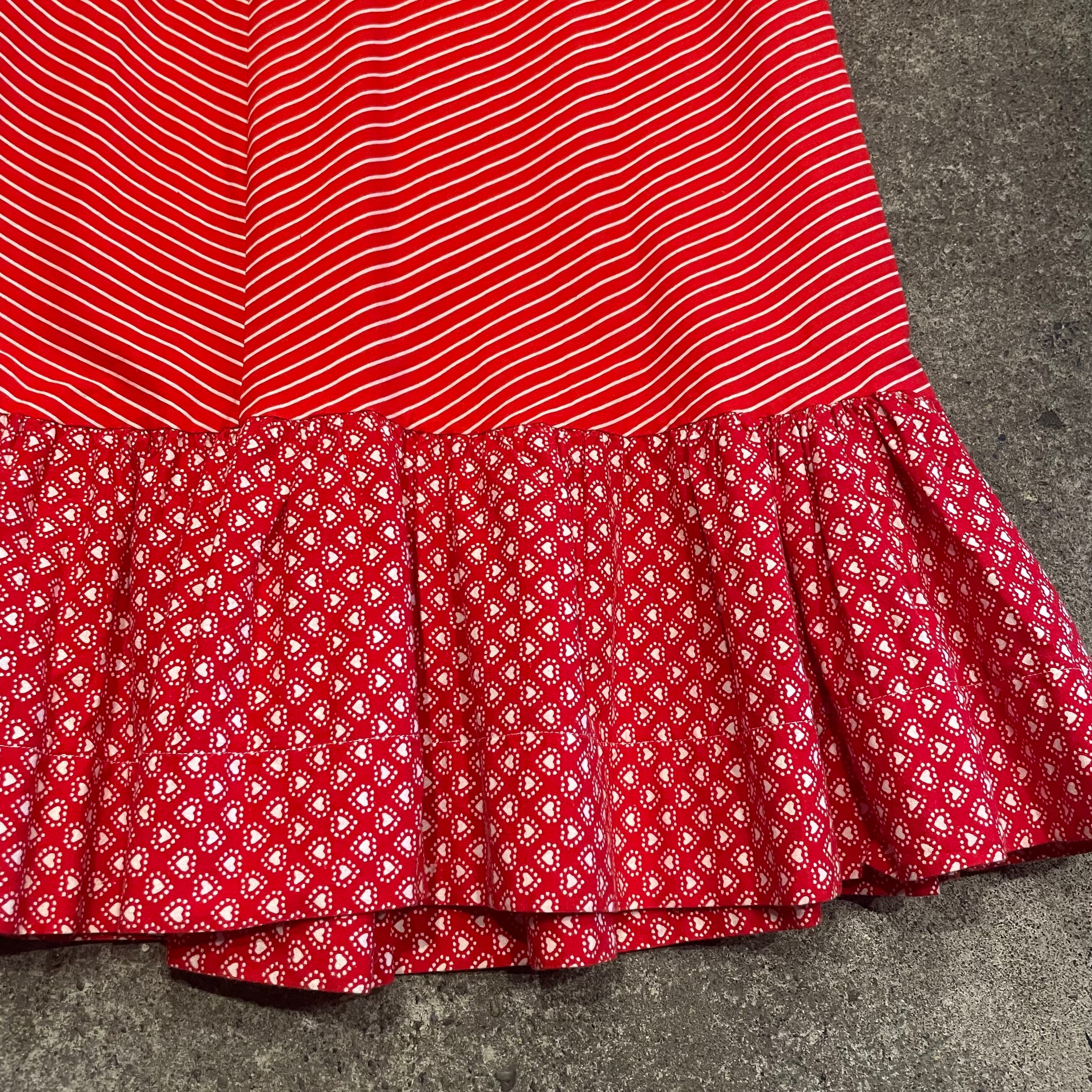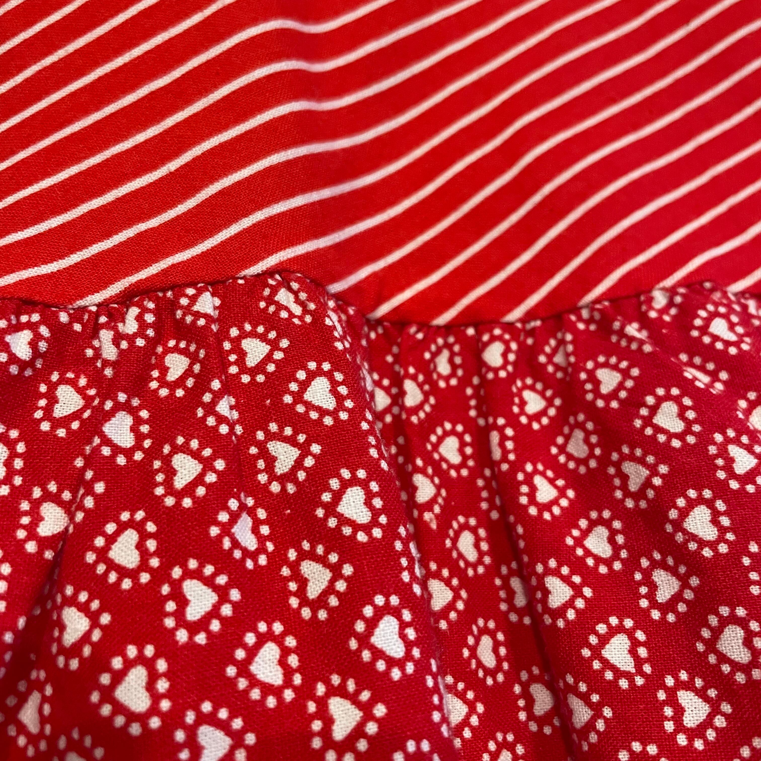 フィッシュボーンのようなストライプに裾はハートの柄でとてもかわいいです。