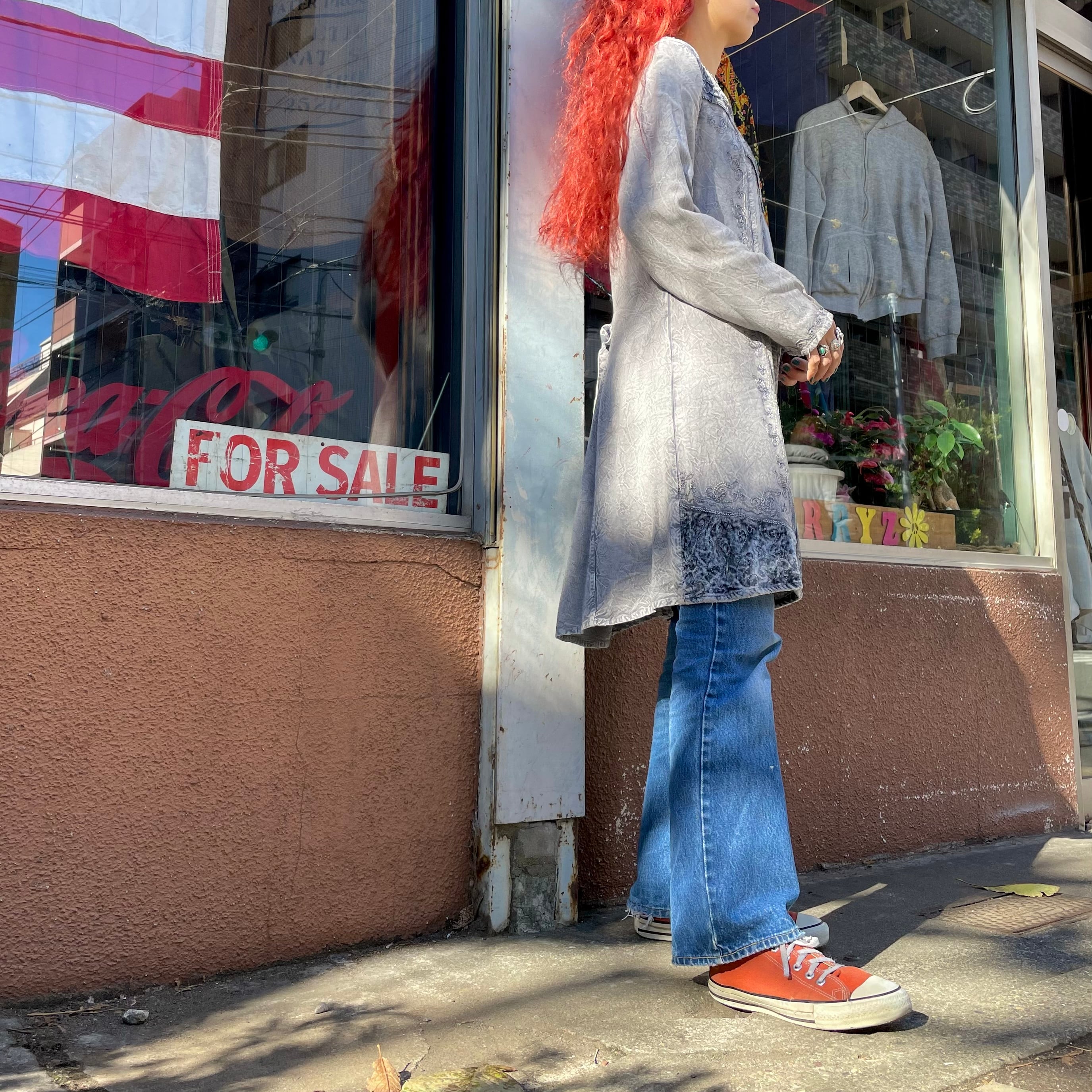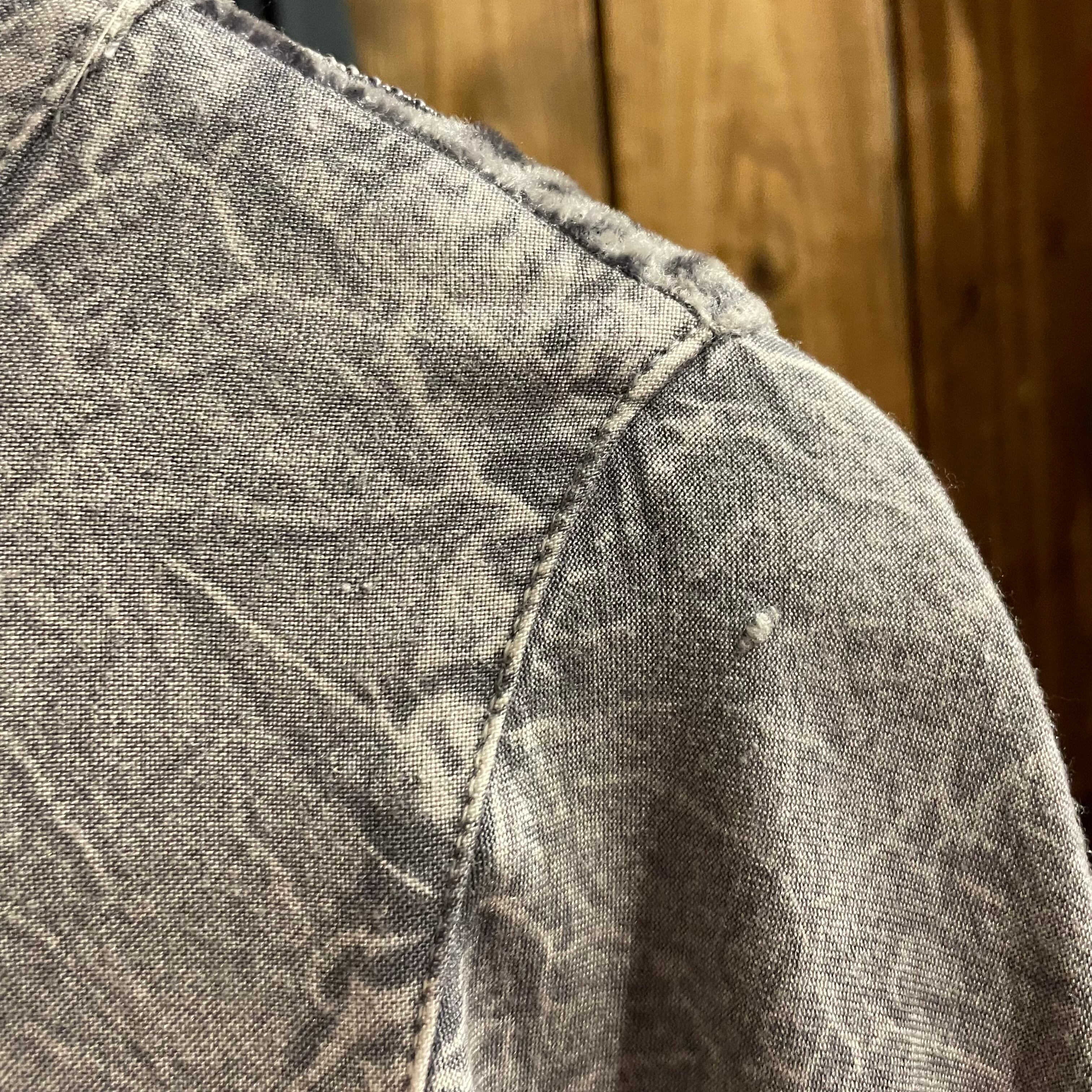 左袖口にシミ数カ所、襟ぐり付近にほつれ、小さい傷等、使用感のある商品ですので古着にご理解のある方のご購入をお願い致します。