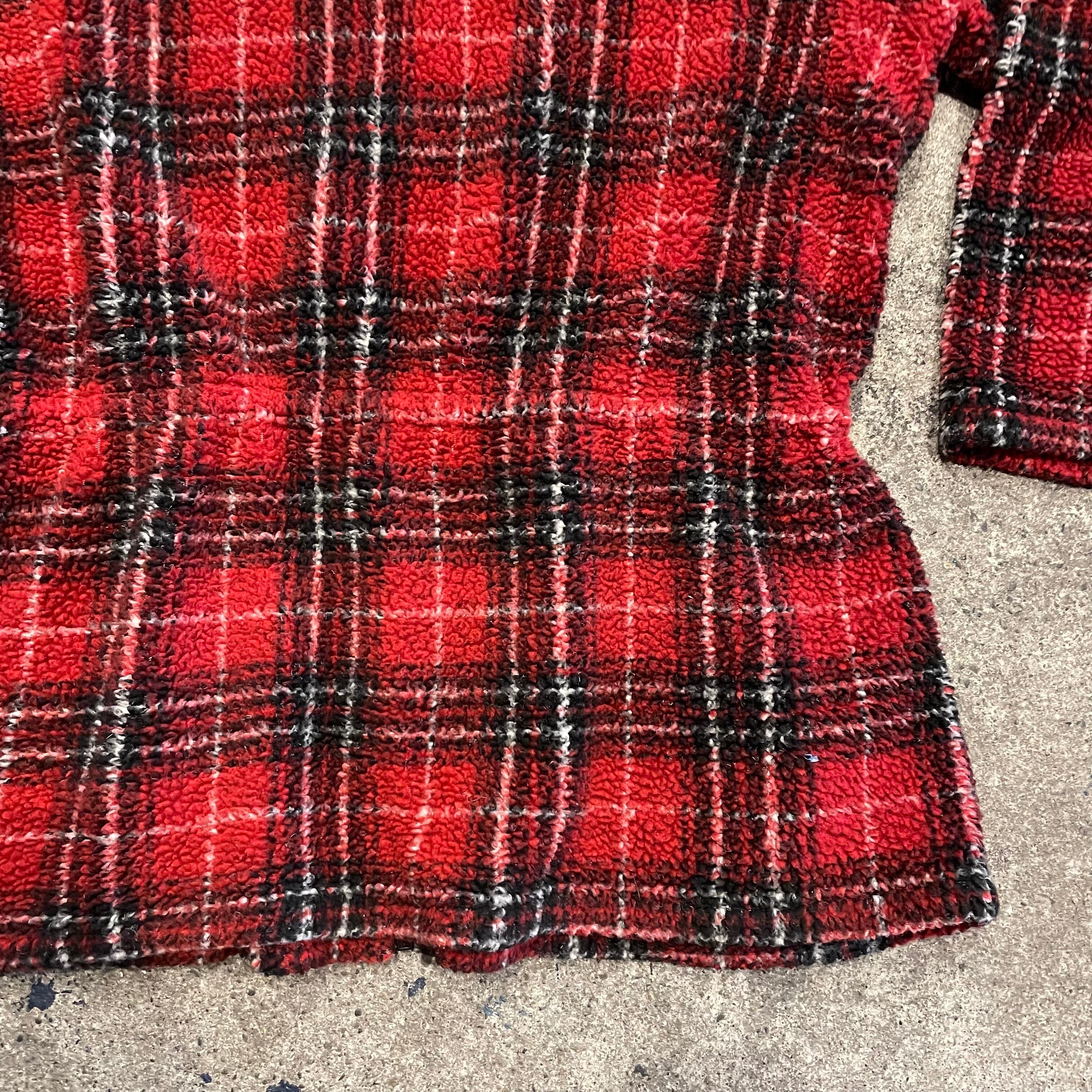 赤のチェック柄がかわいいボアフリースのジャケットです。