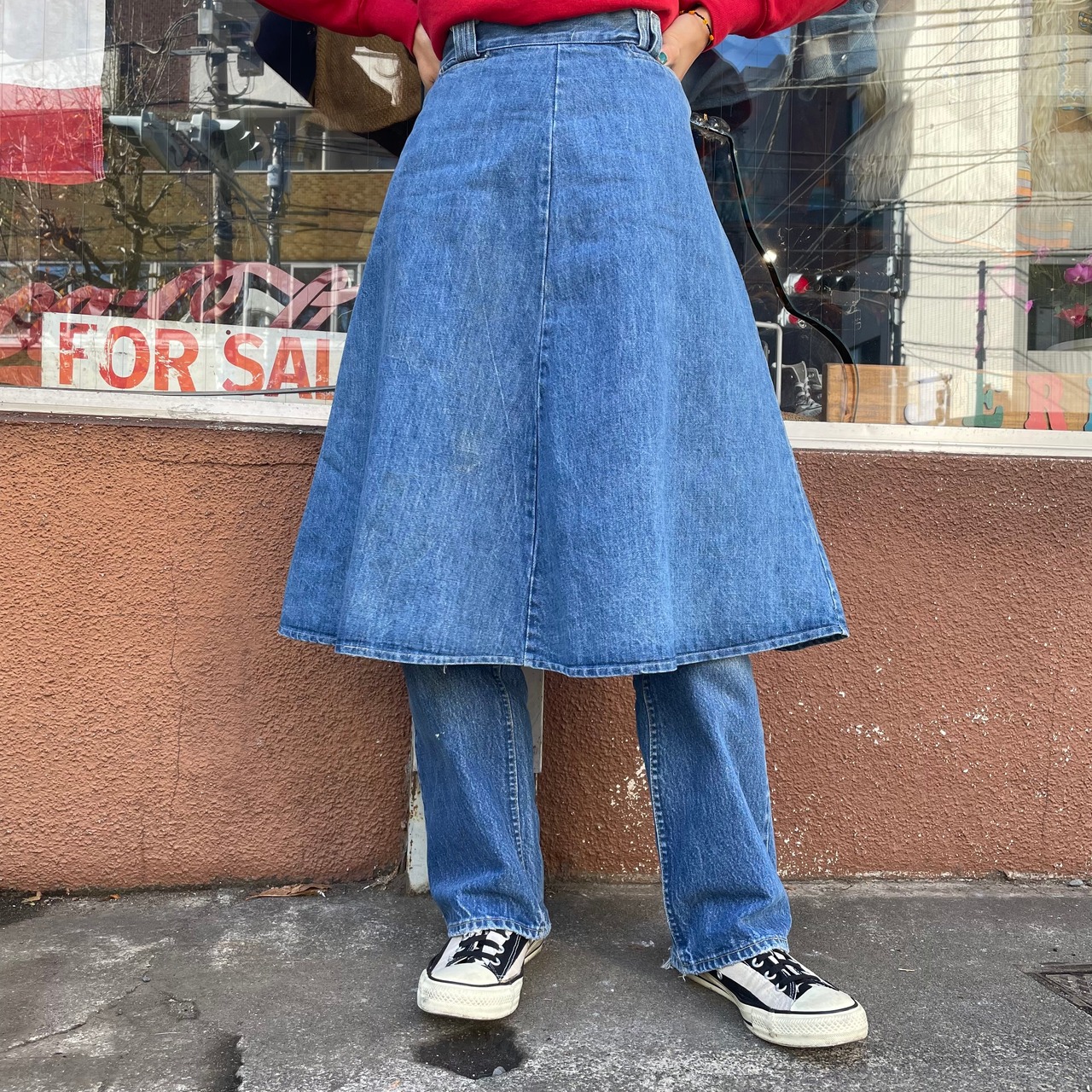 コンパクトなデニムジャケットとと合わせてもかわいいですし、ロングブーツと合わせても良いですね!