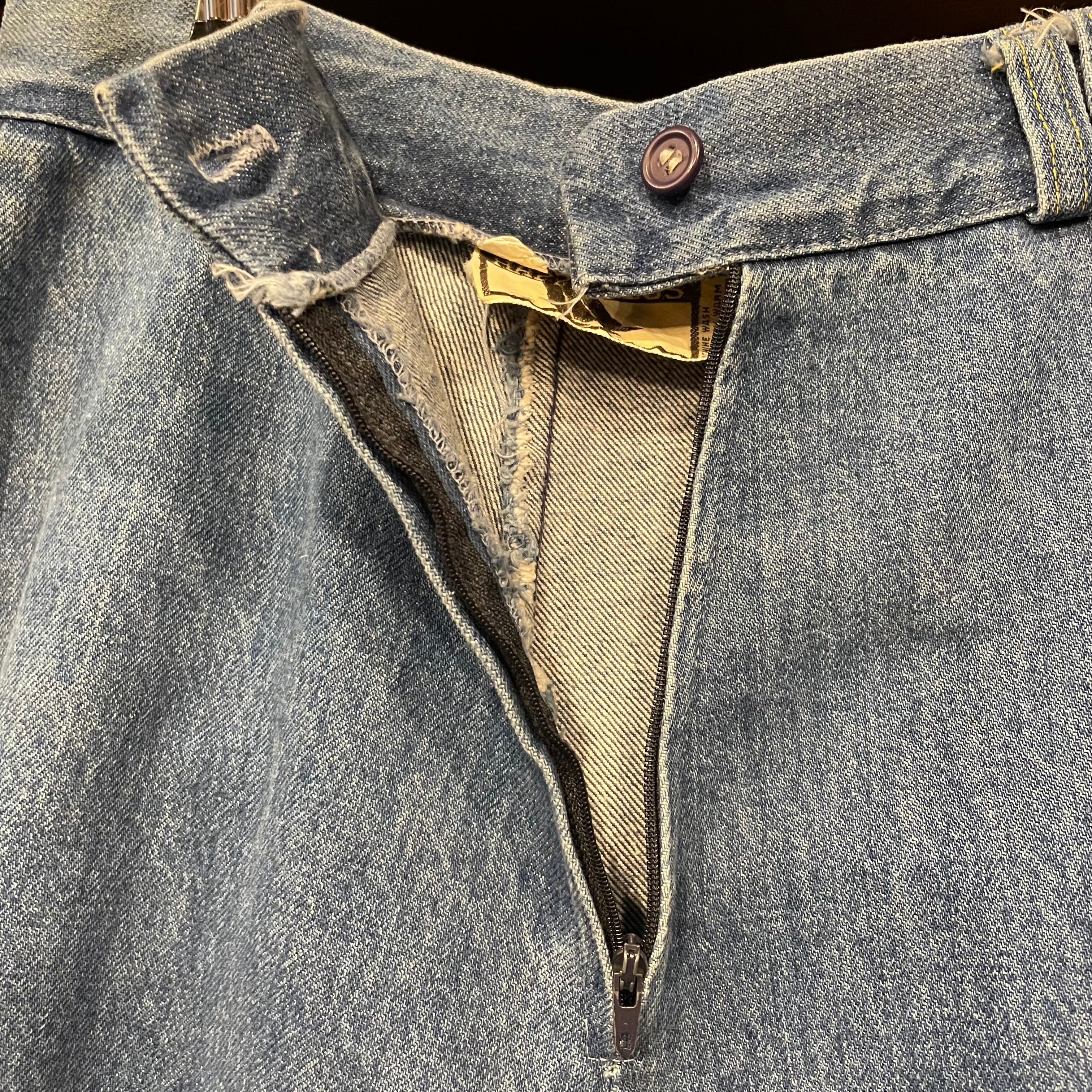 ウエストや前膝あたりに黄ばみが見受けられます。古着にご理解のある方のご購入をお願い致します。