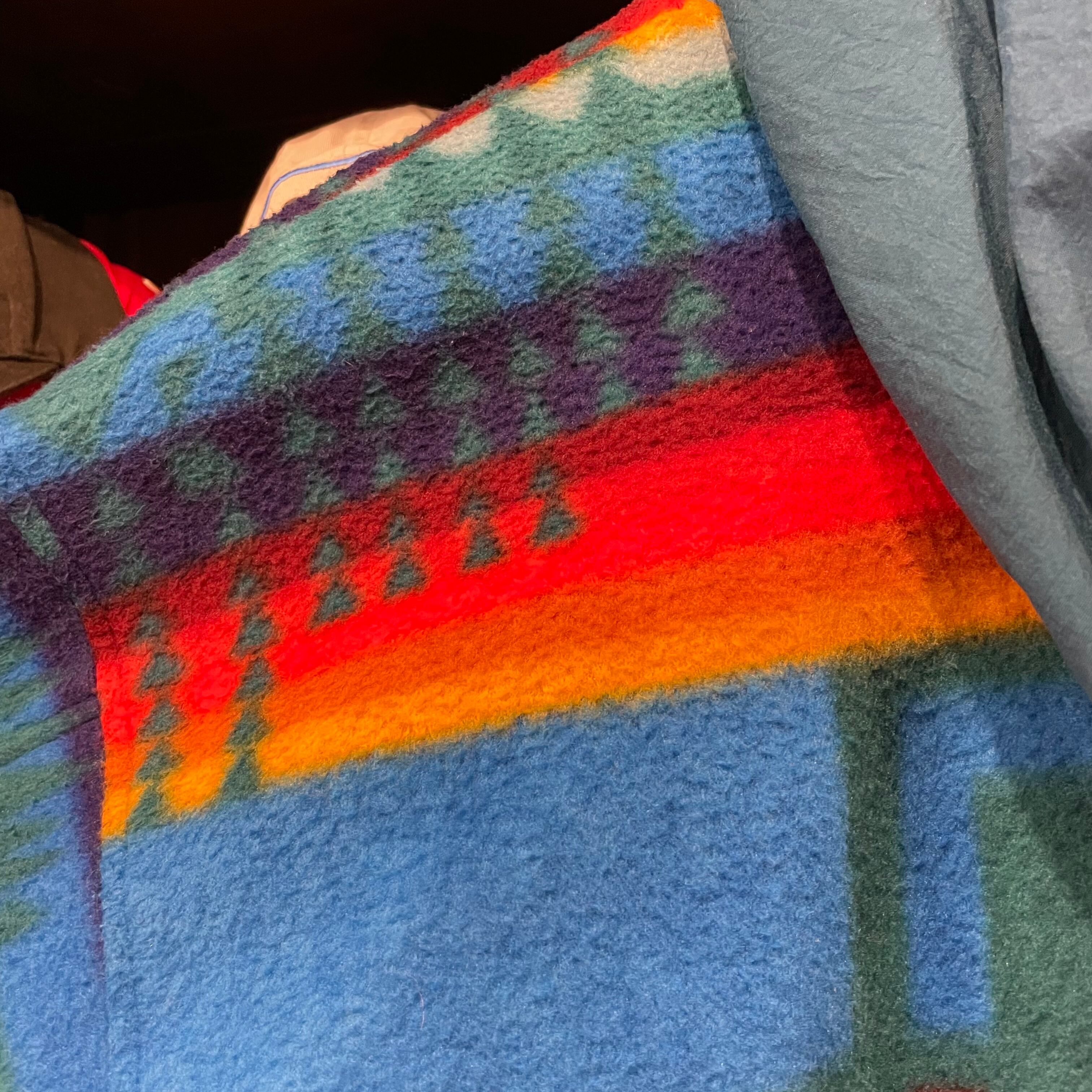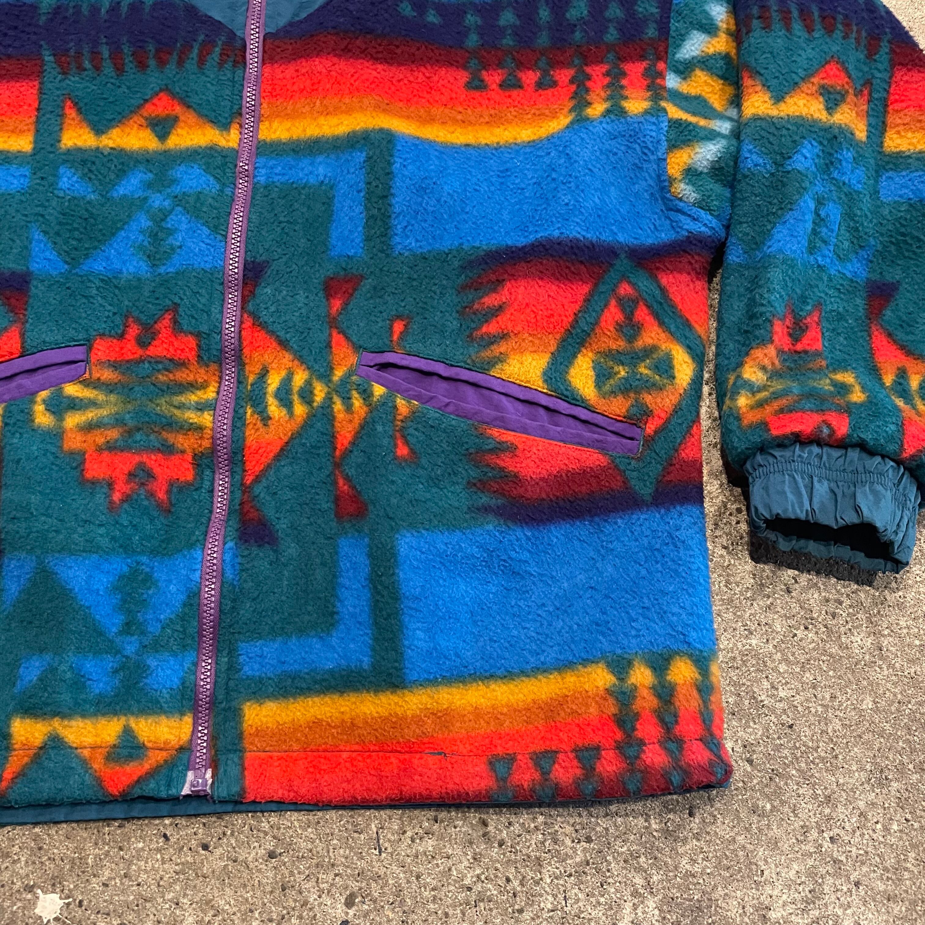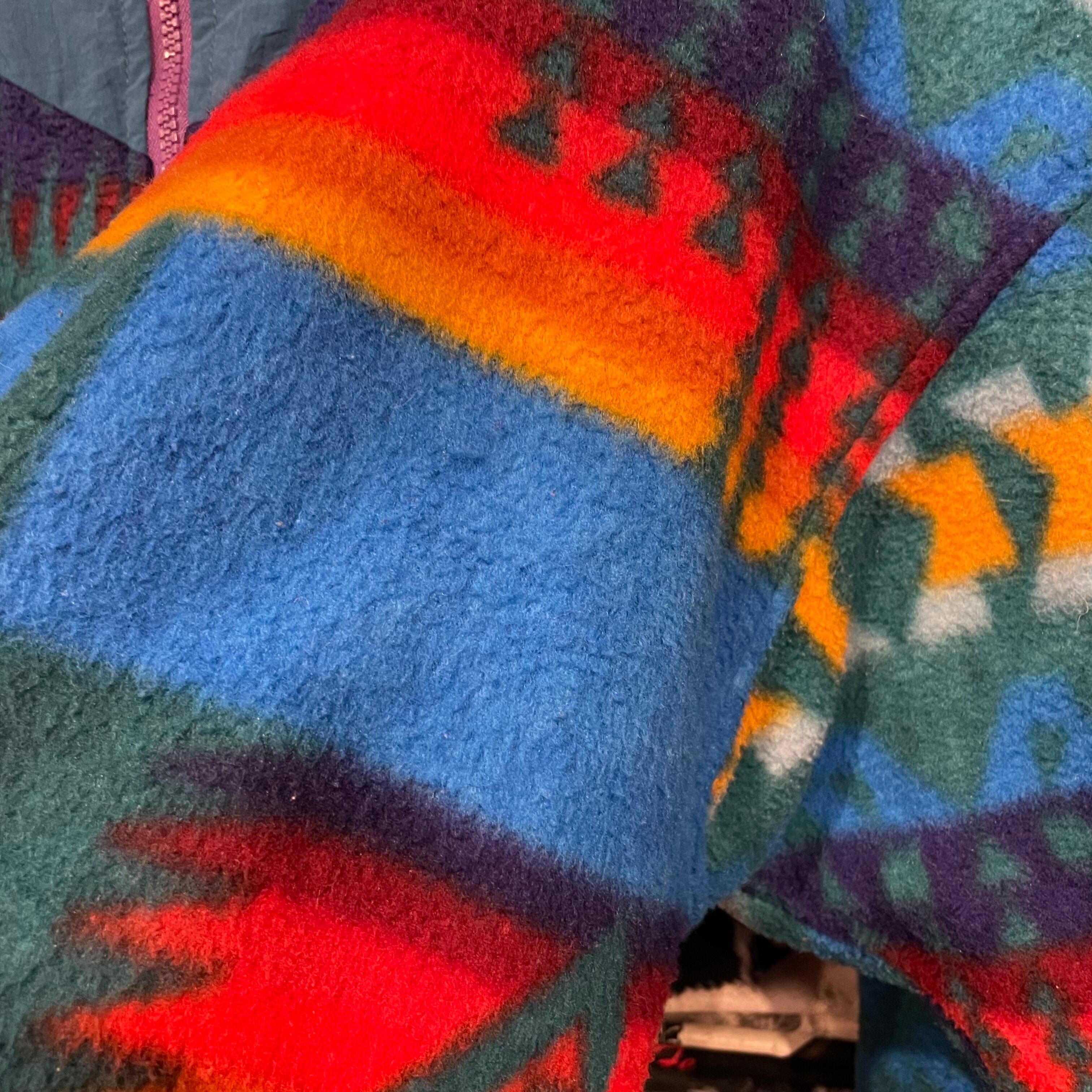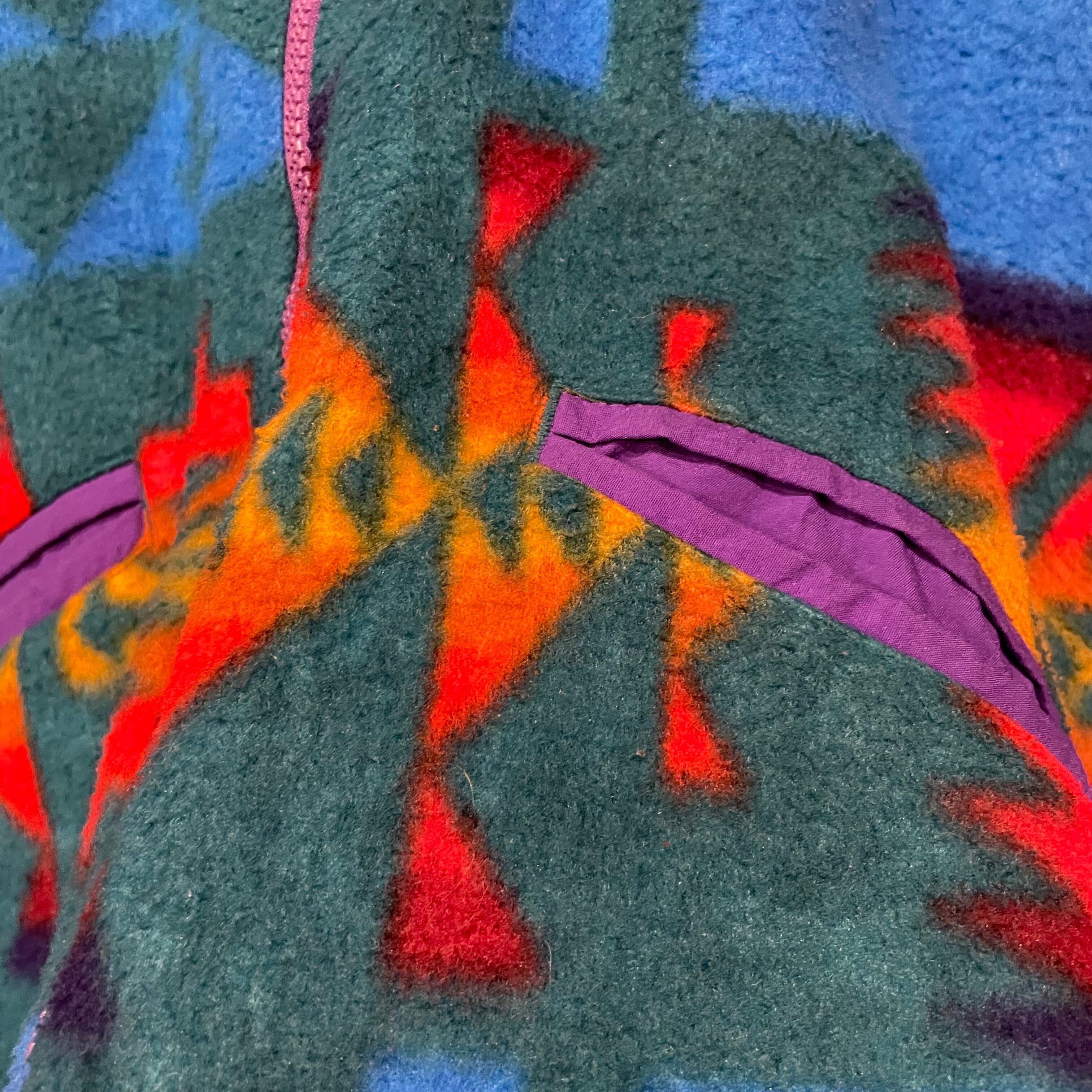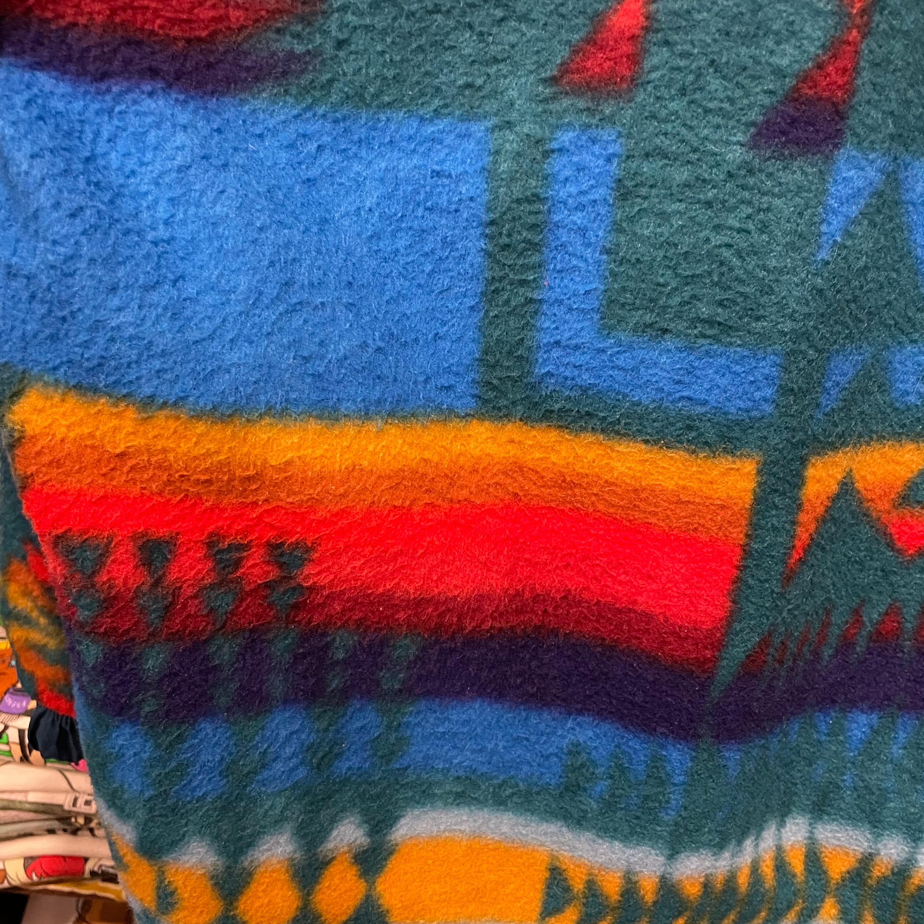 派手めな色味のネイティブ柄がかわいいフリースジャケットです。