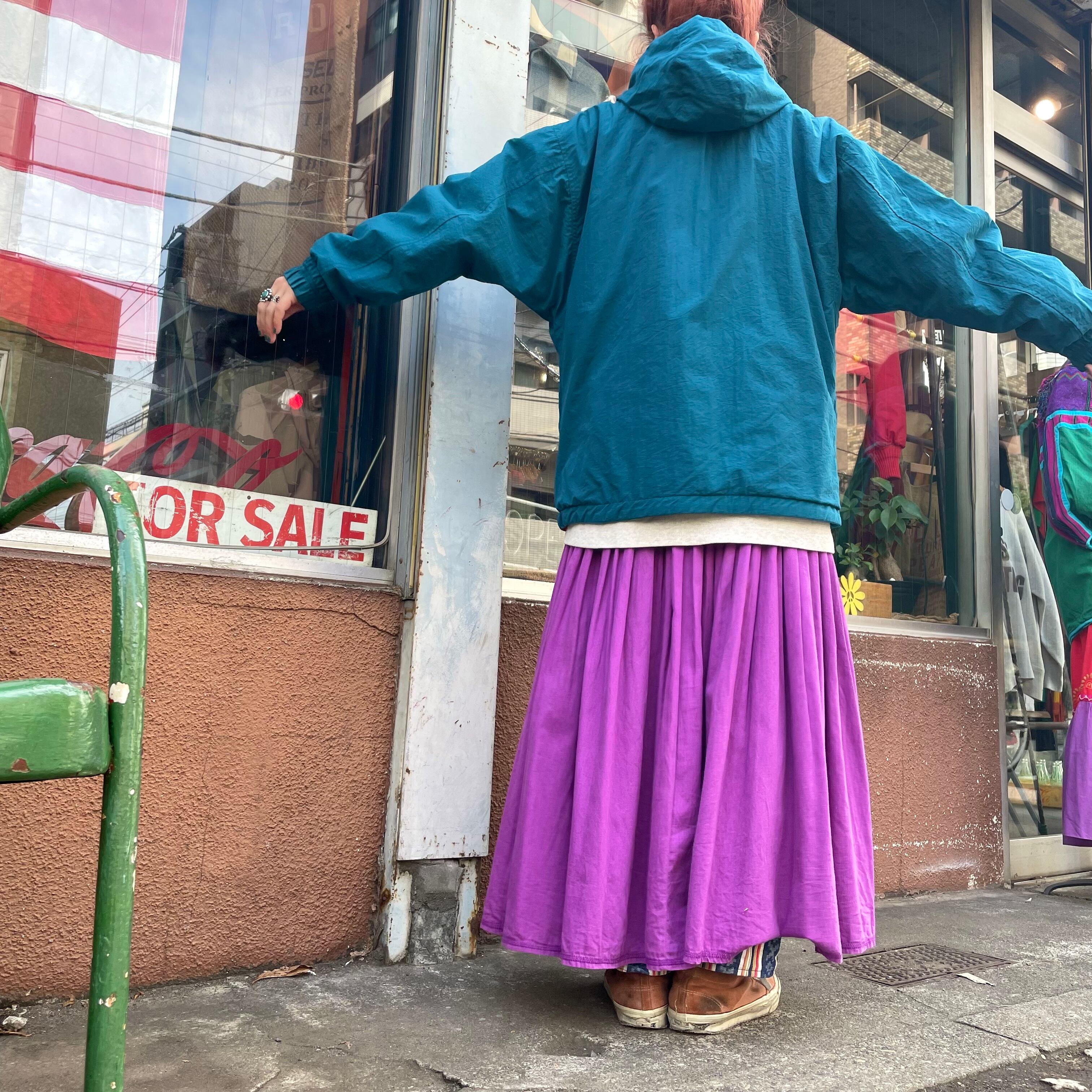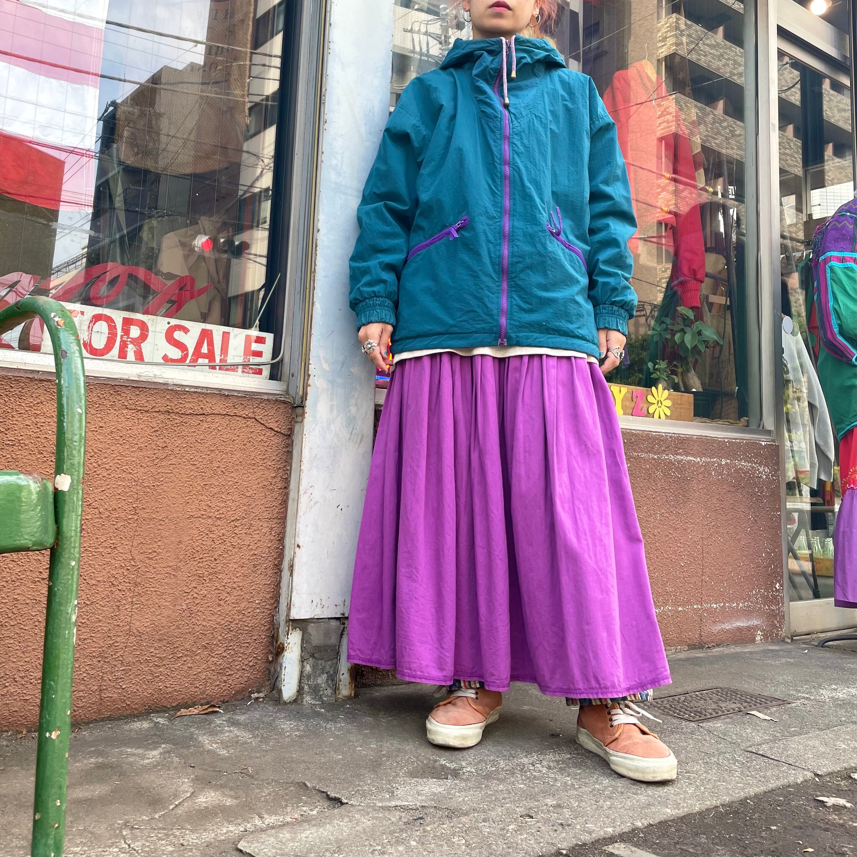 リバーシブルになっており、裏はシンプルな青緑で合わせやすいですし、ジップの紫がポイントになってかわいいです。